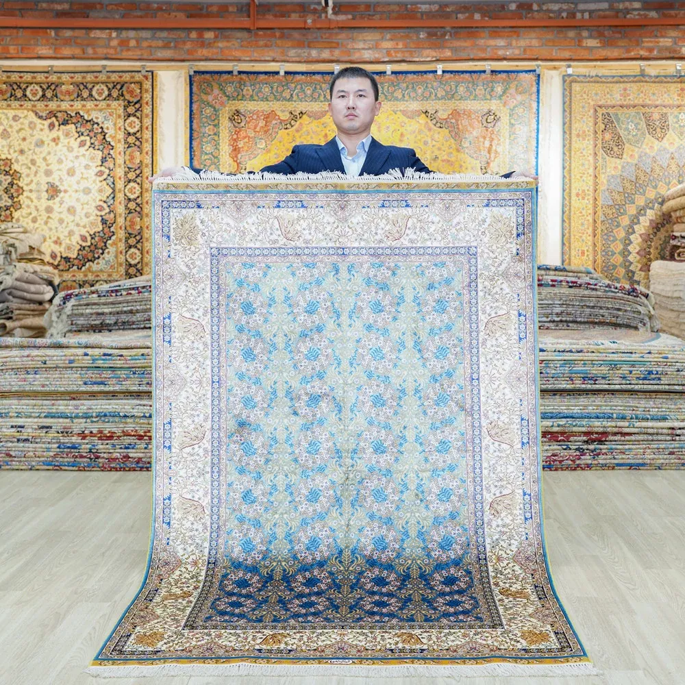 Handcrafted Turkish Silk Carpet - Luxurious Villa Area Rug for Bedroom, Perfect Size 120x180cm, Elevate Your Home Décor with Elegance and Style!