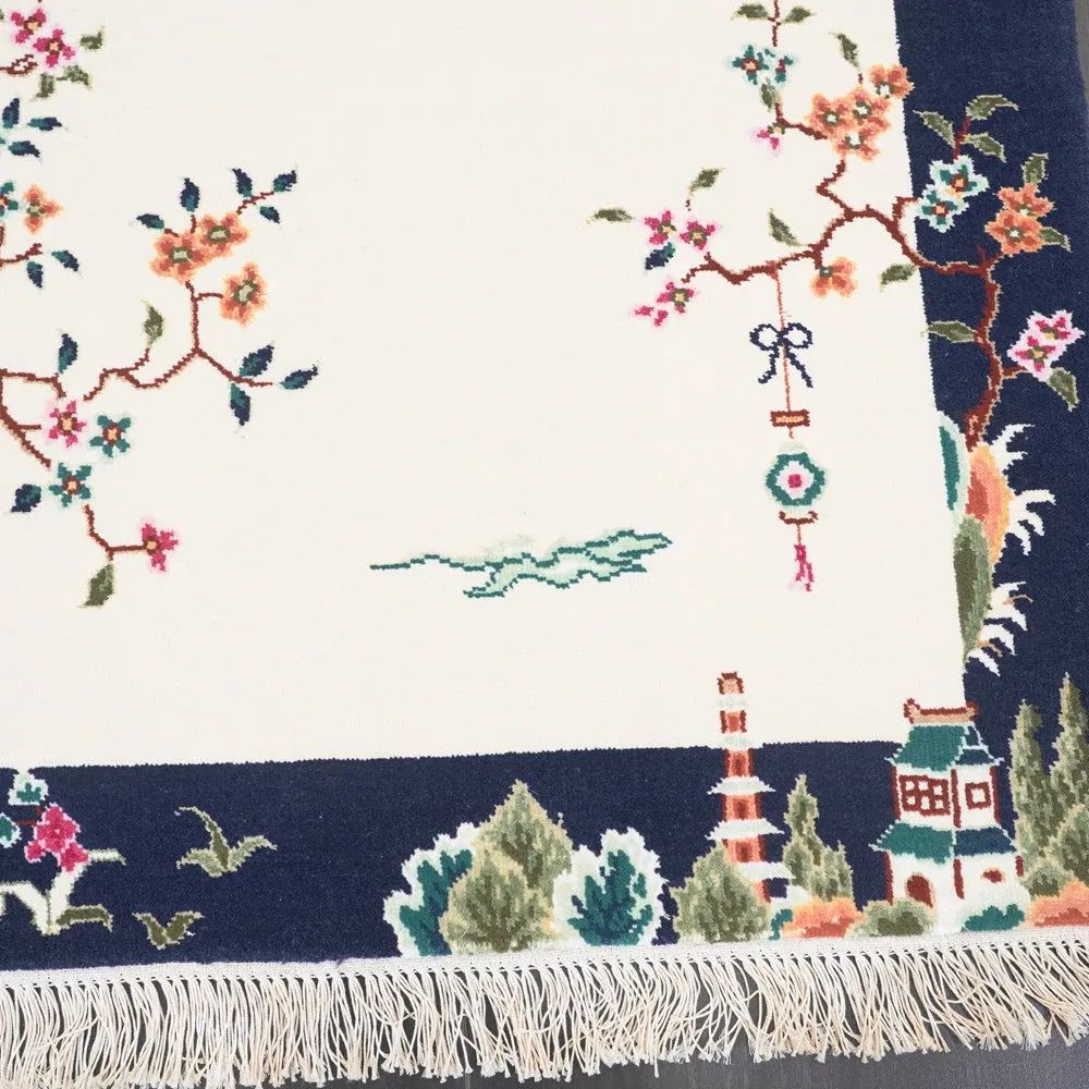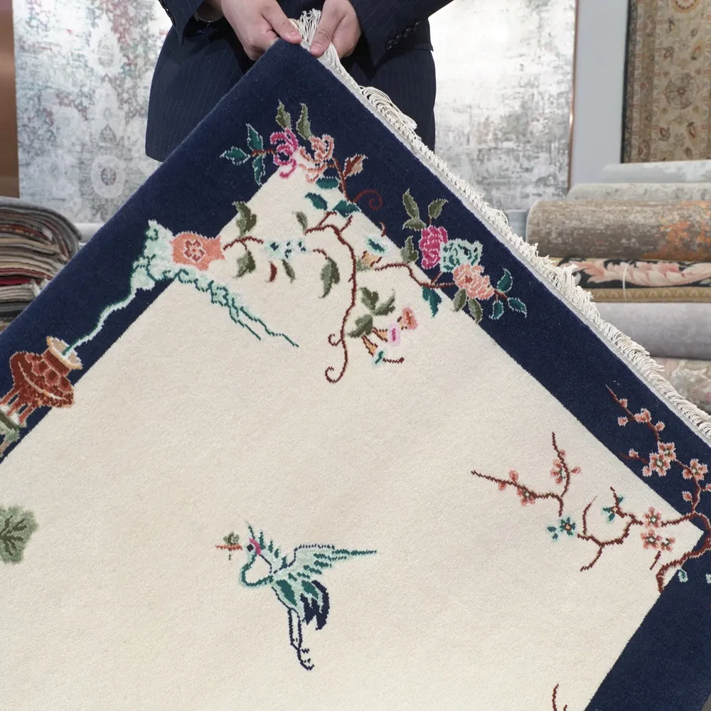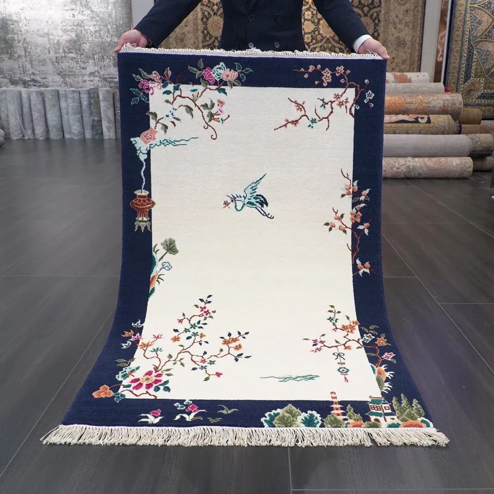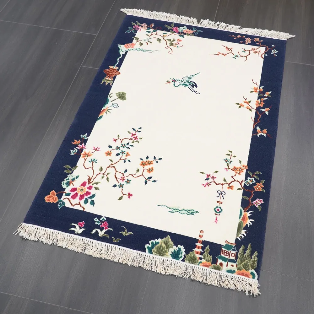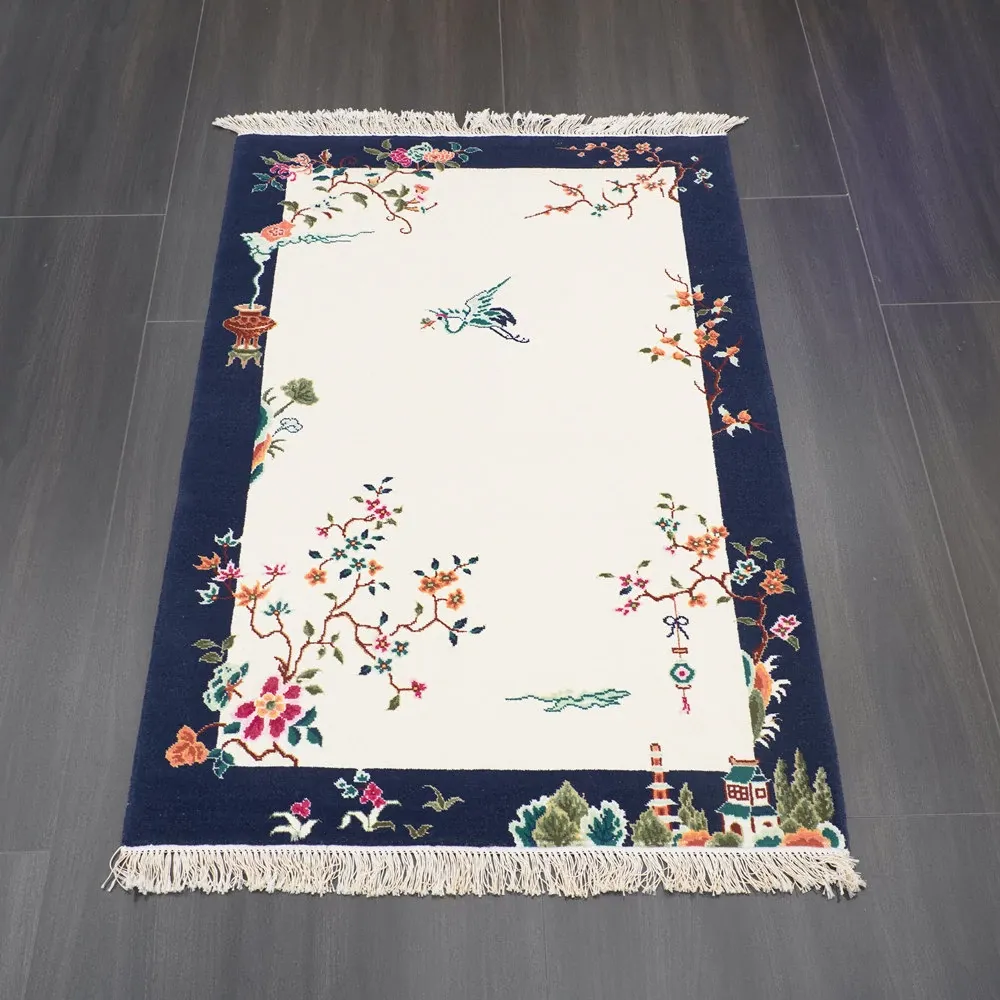 Handcrafted Wool Area Rug - Luxurious Short-Pile Carpet for Bedroom, New Chinese Style, Perfect Bedside Mat, 90x140cm