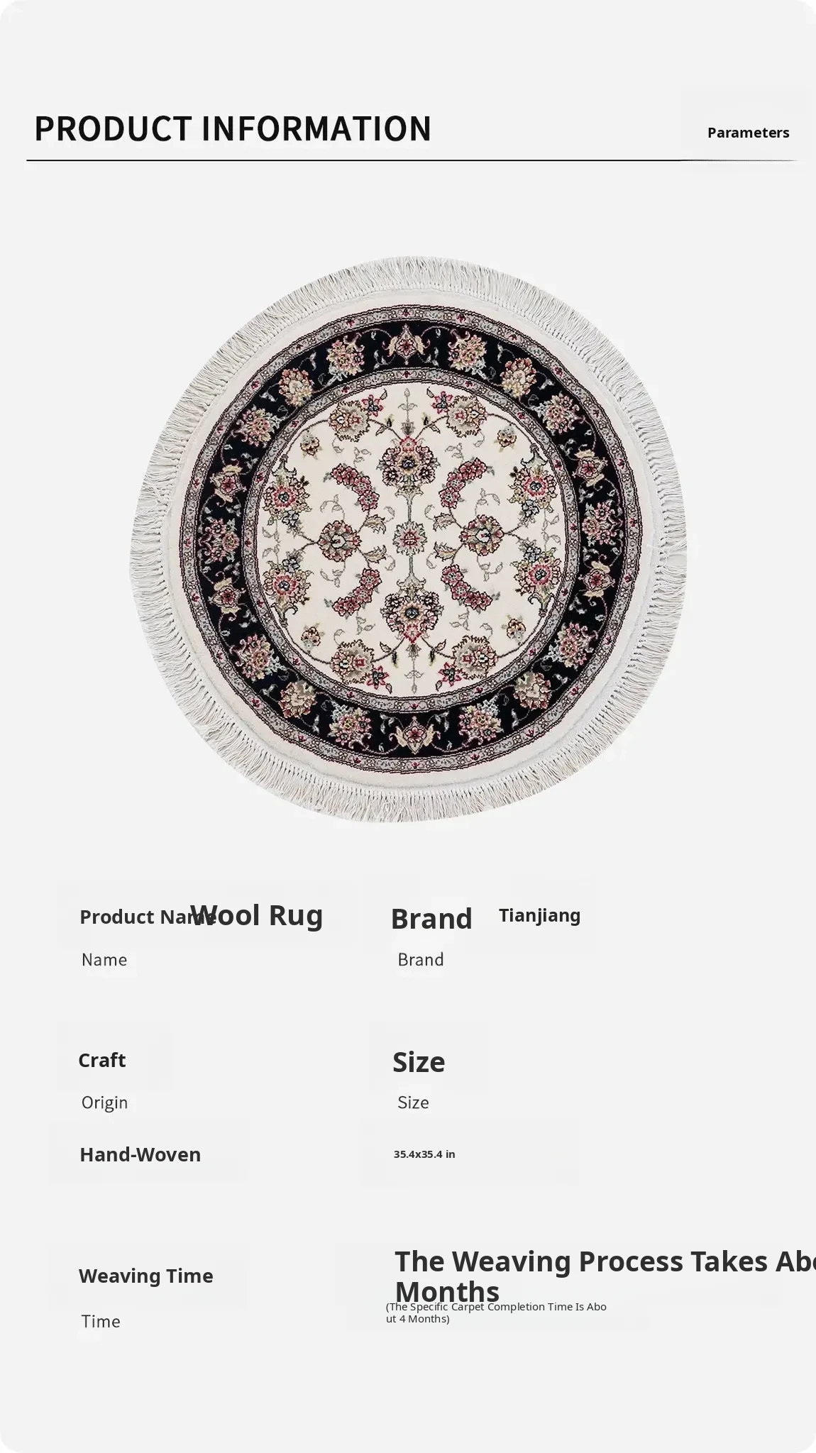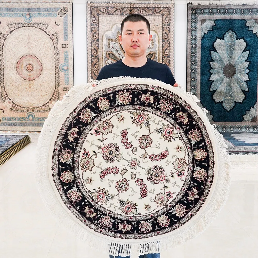 Handcrafted Wool Carpet by Artisan - Imported Villa Rug for Living Room, Coffee Table & Bedroom - Convenient Home Trial Service Available - Size: 90x90cm