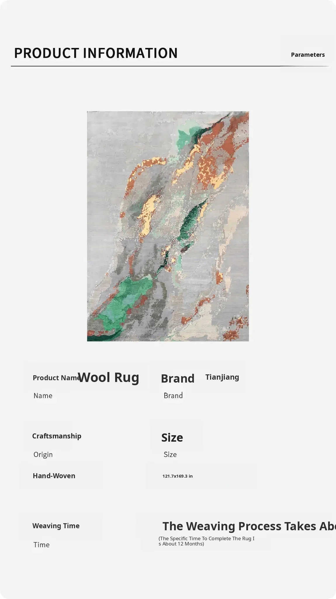 Handcrafted Wool Carpet by Artisan - Luxurious Area Rug for Sofa and Coffee Table, Perfect for Living Room and Study, Dimensions: 307x430cm