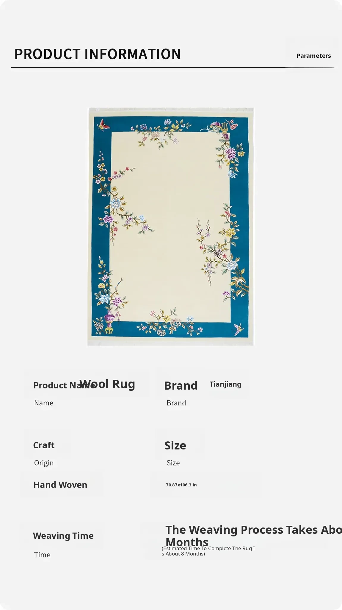 Handcrafted Wool Carpet by TIANJIANG - Elegant New Chinese Style Rug for Bedroom, Study, and Living Room - 180x270cm - Perfect Match for Your Fine Mahogany Furniture