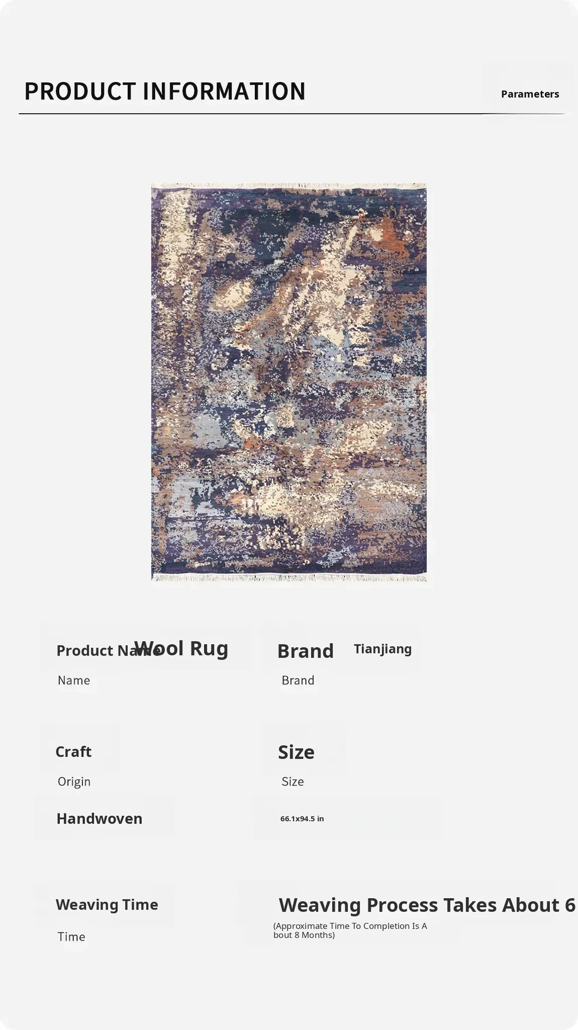 Handcrafted Wool Carpet by Tianjiang - Luxurious and Stain-Resistant Area Rug for Villa, Bedroom, or Study Room - 167x240cm