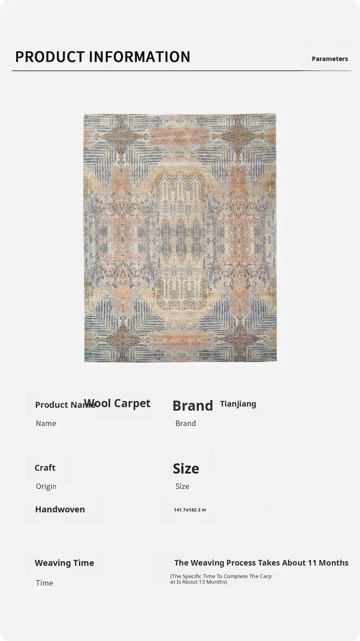 Handcrafted Wool Carpet by Tianjiang - Luxurious Italian-American Style for Living Room and Bedroom, 360x462cm, Perfect Blend of Elegance and Comfort