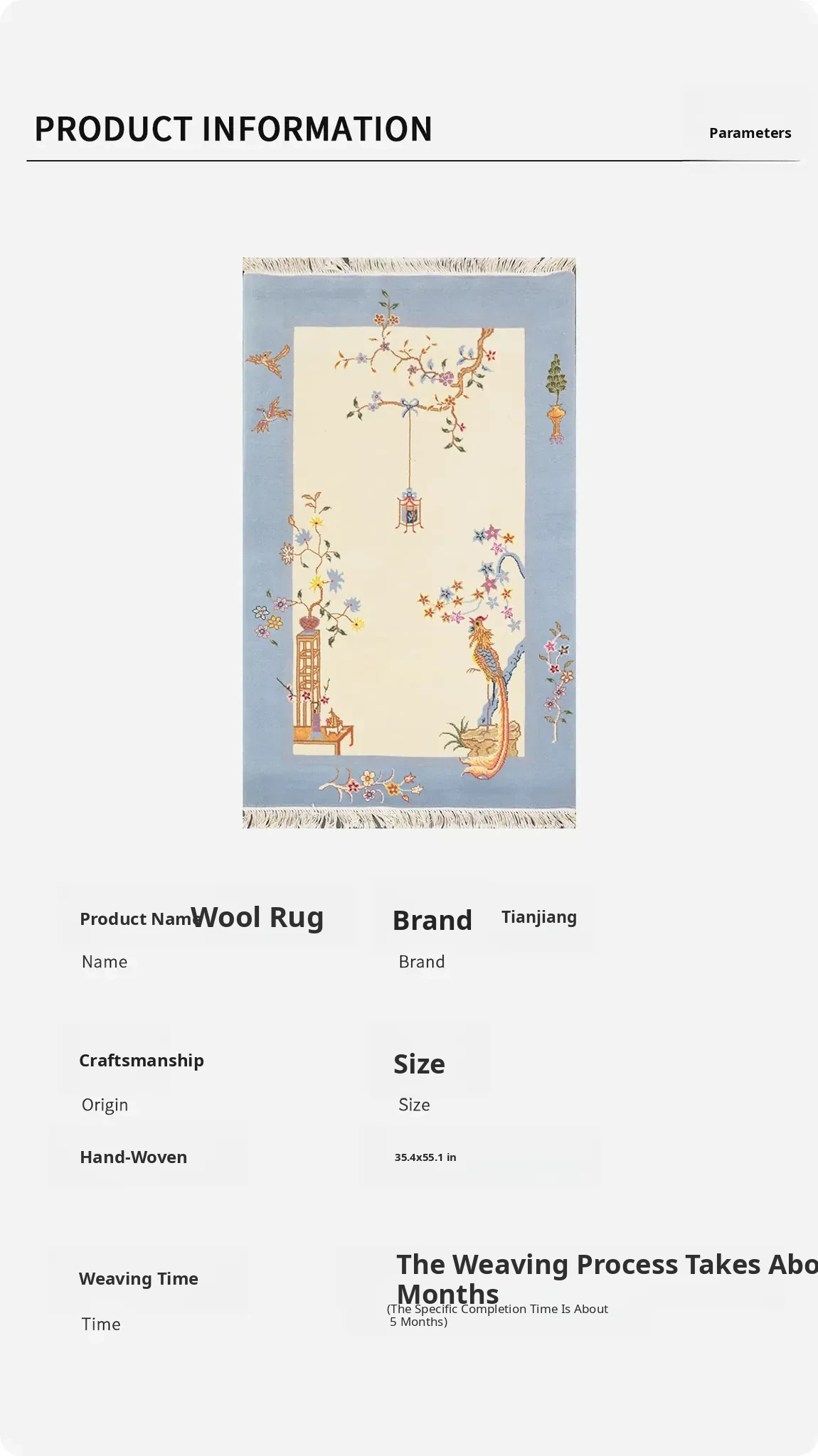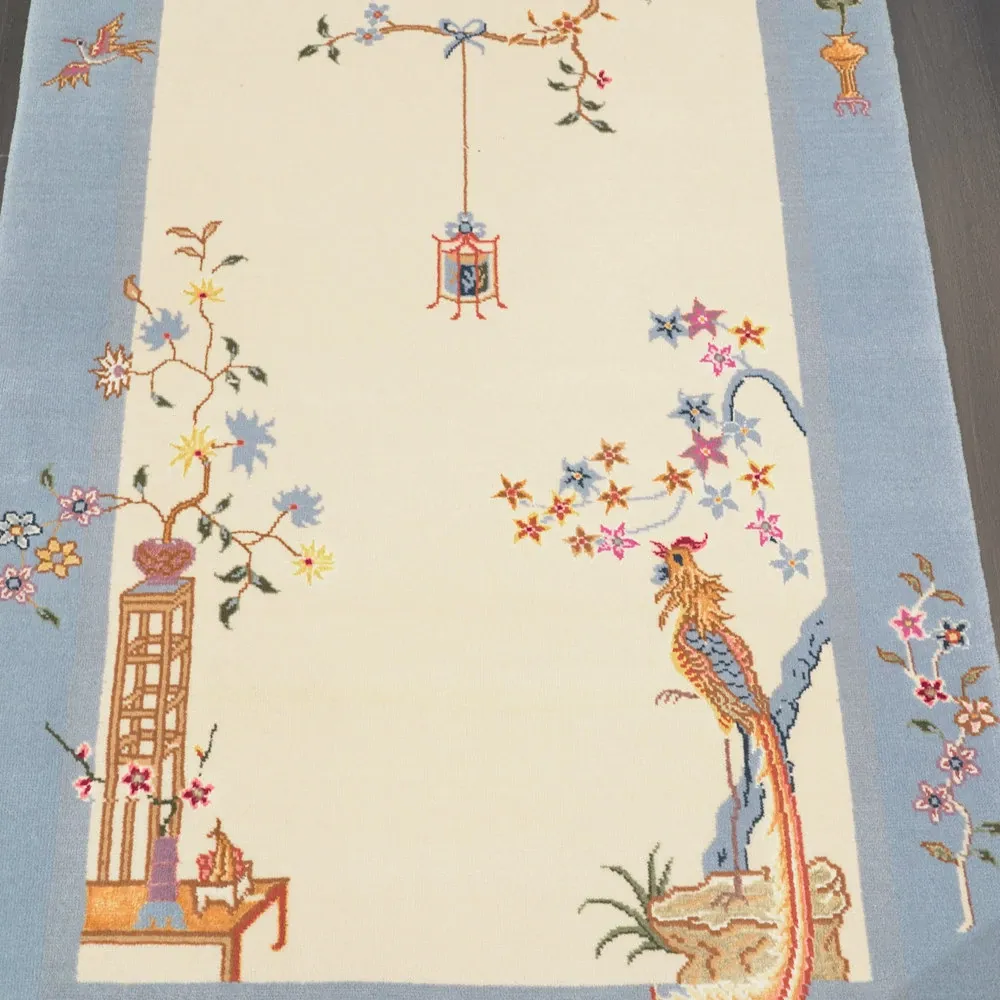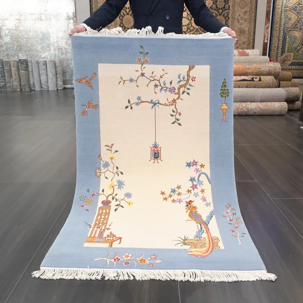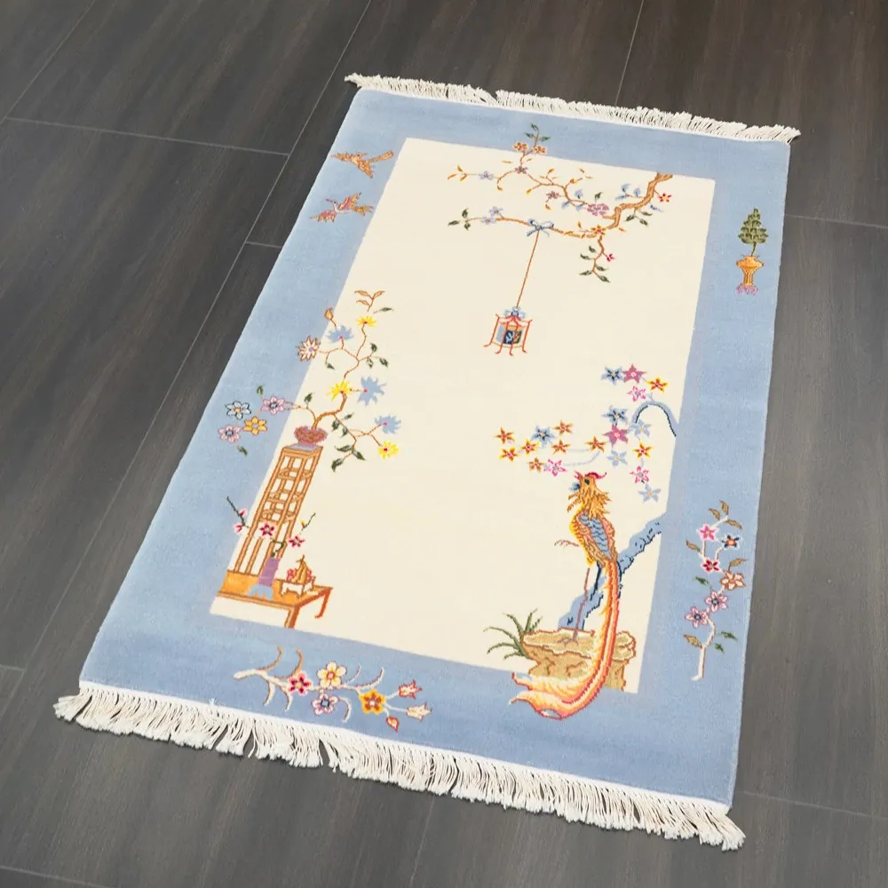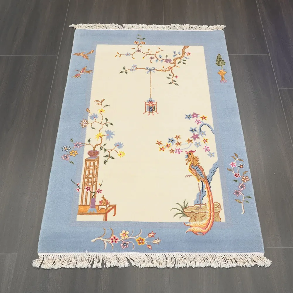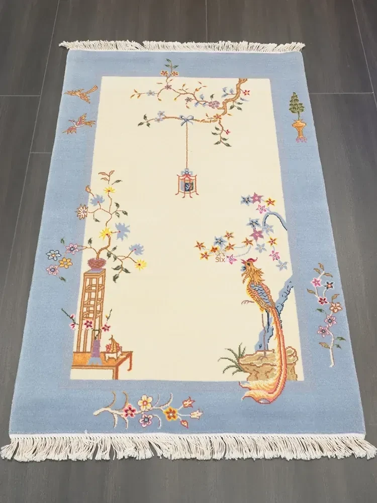 Handcrafted Wool Carpet - Chinese Style Plant-Dyed, Durable & Stain-Resistant Area Rug for Living Room & Bedroom, 90x140cm