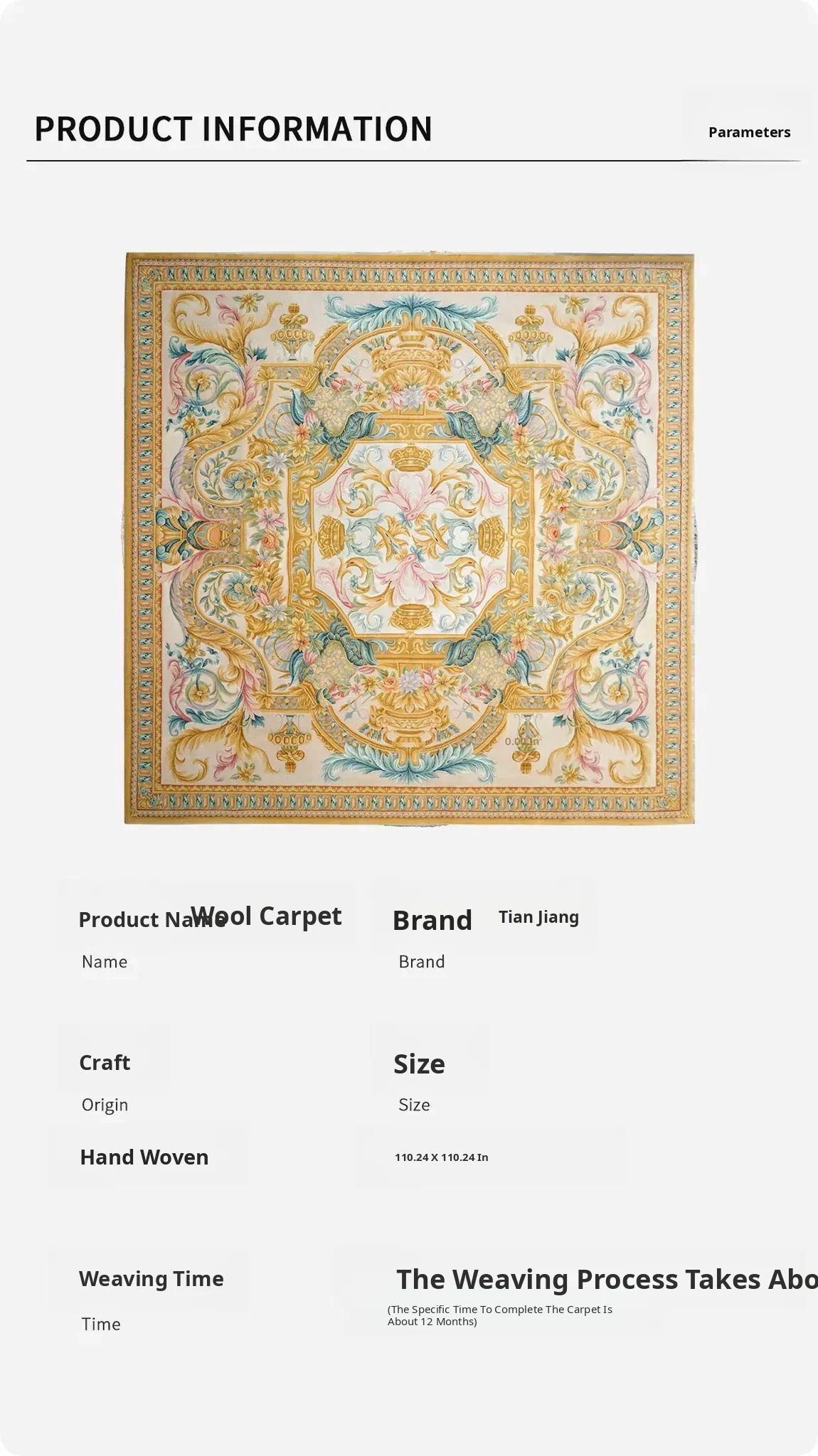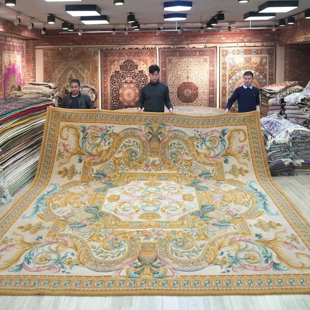 Handcrafted Wool Carpet - French Palace Style Classic Rug for Villas, Perfect for Bedrooms and Studies, Size: 375x375cm