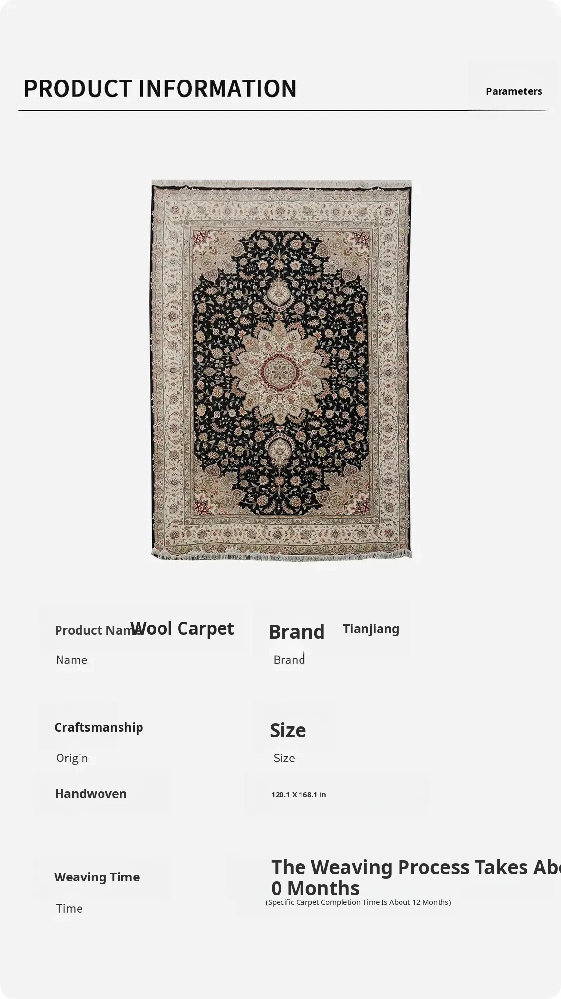 Handcrafted Wool Persian Carpet - Durable and Stain-Resistant for Home Living Room - 305x427cm Ideal for Villas