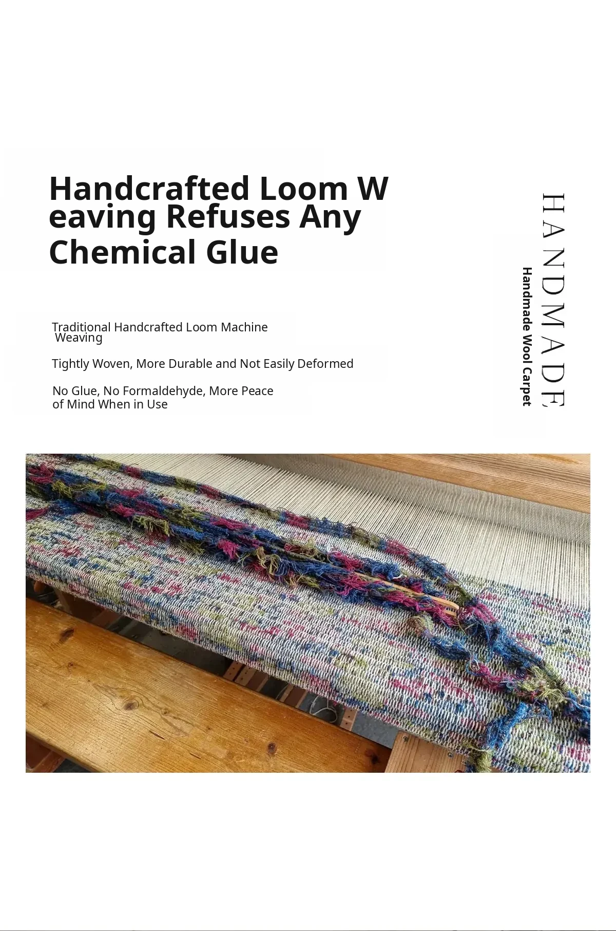 Handcrafted Wool Rug - Imported Small Particle Non-Adhesive Wabi-Sabi Style Area Rug for Home Entrance and Hallway