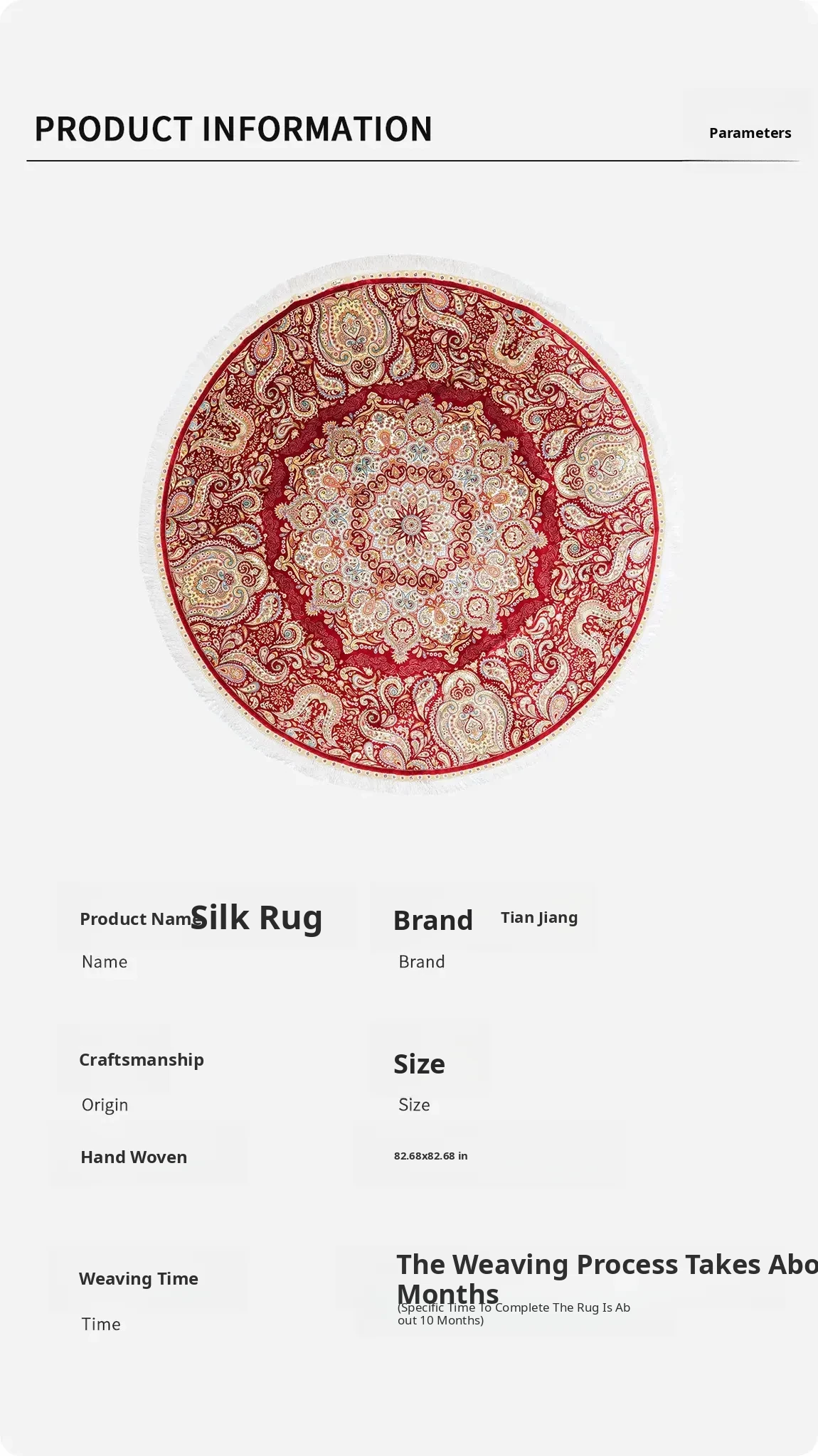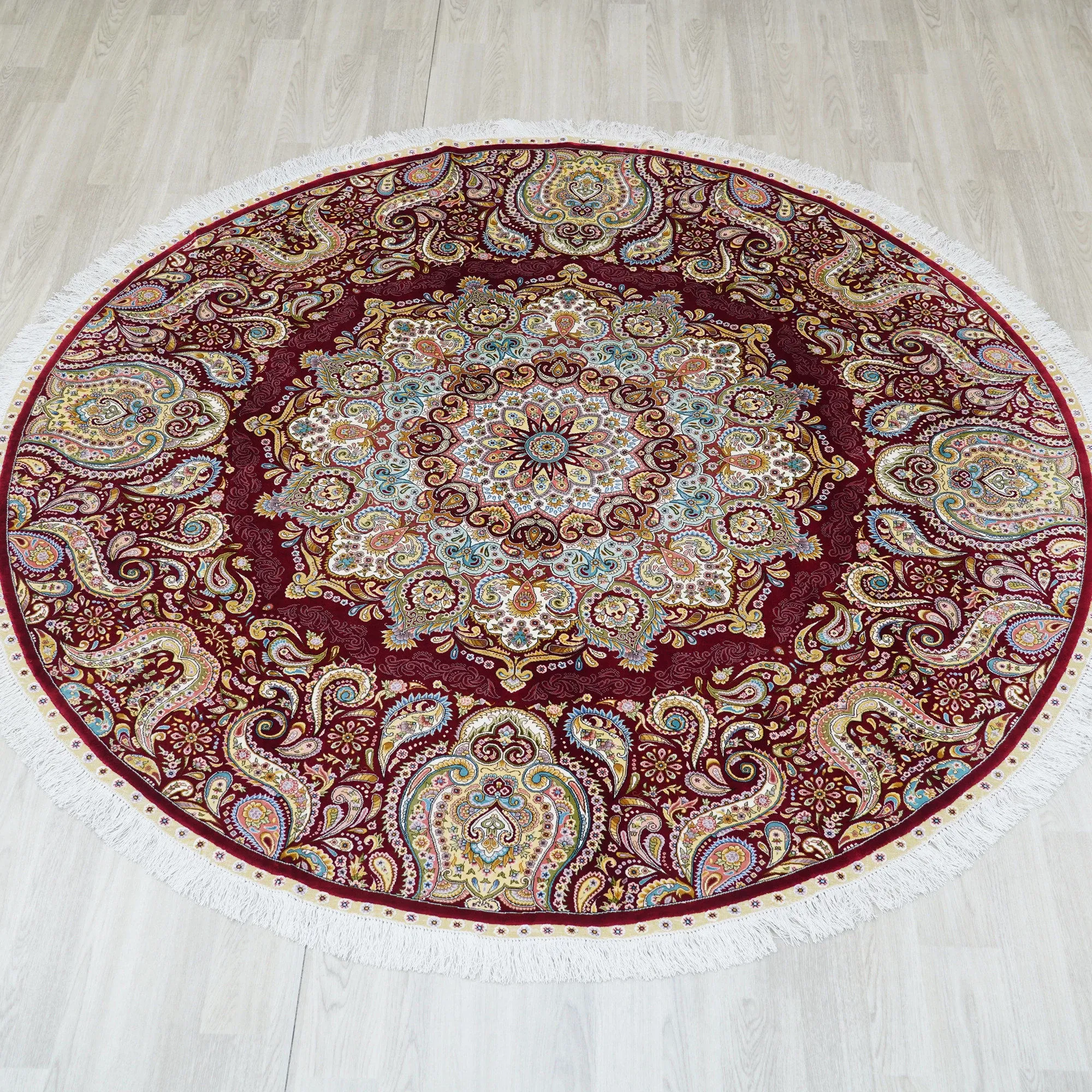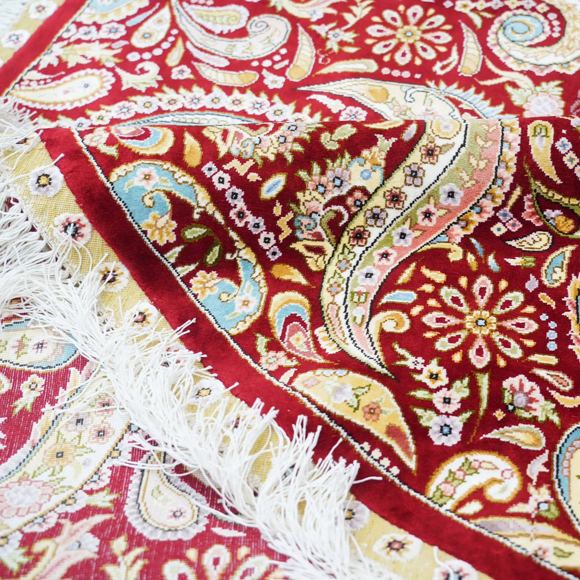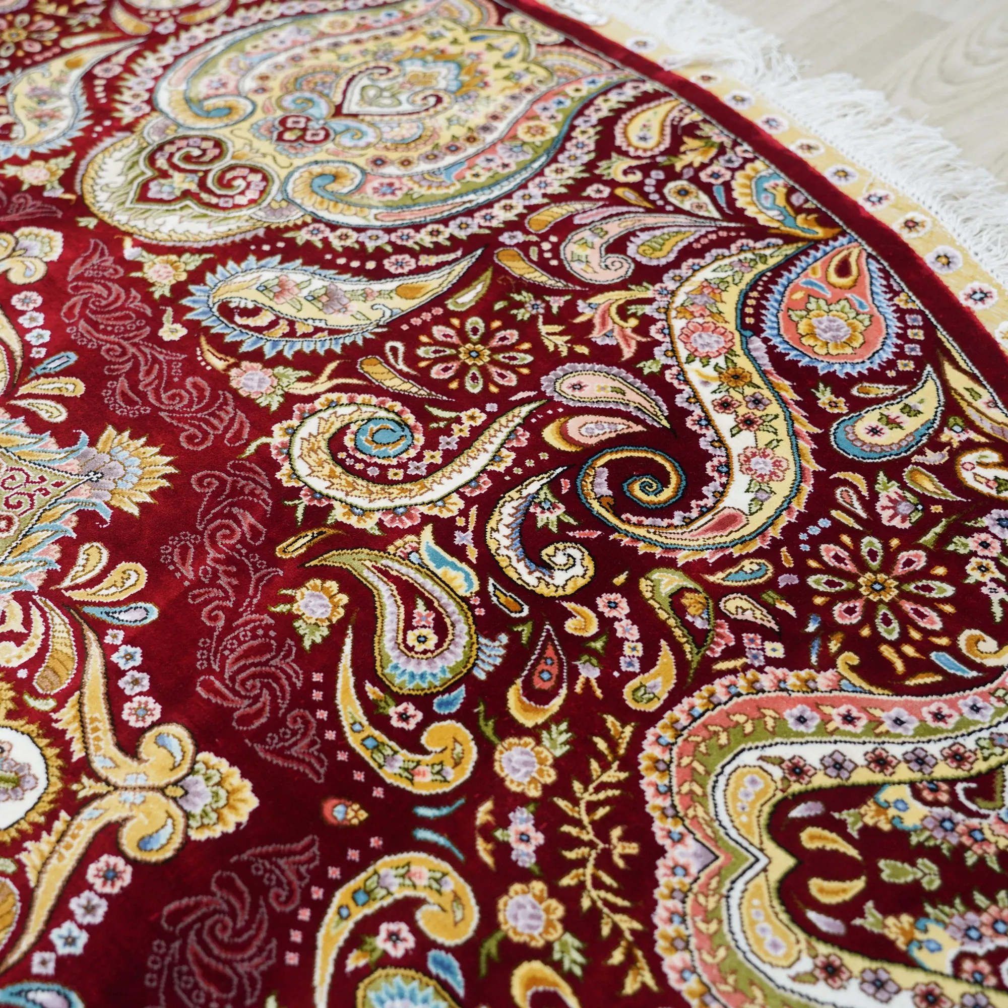 Handmade Silk Carpet - Floral Design for Study and Dining Room, Non-Toxic, High-End, Stain-Resistant, 210x210cm
