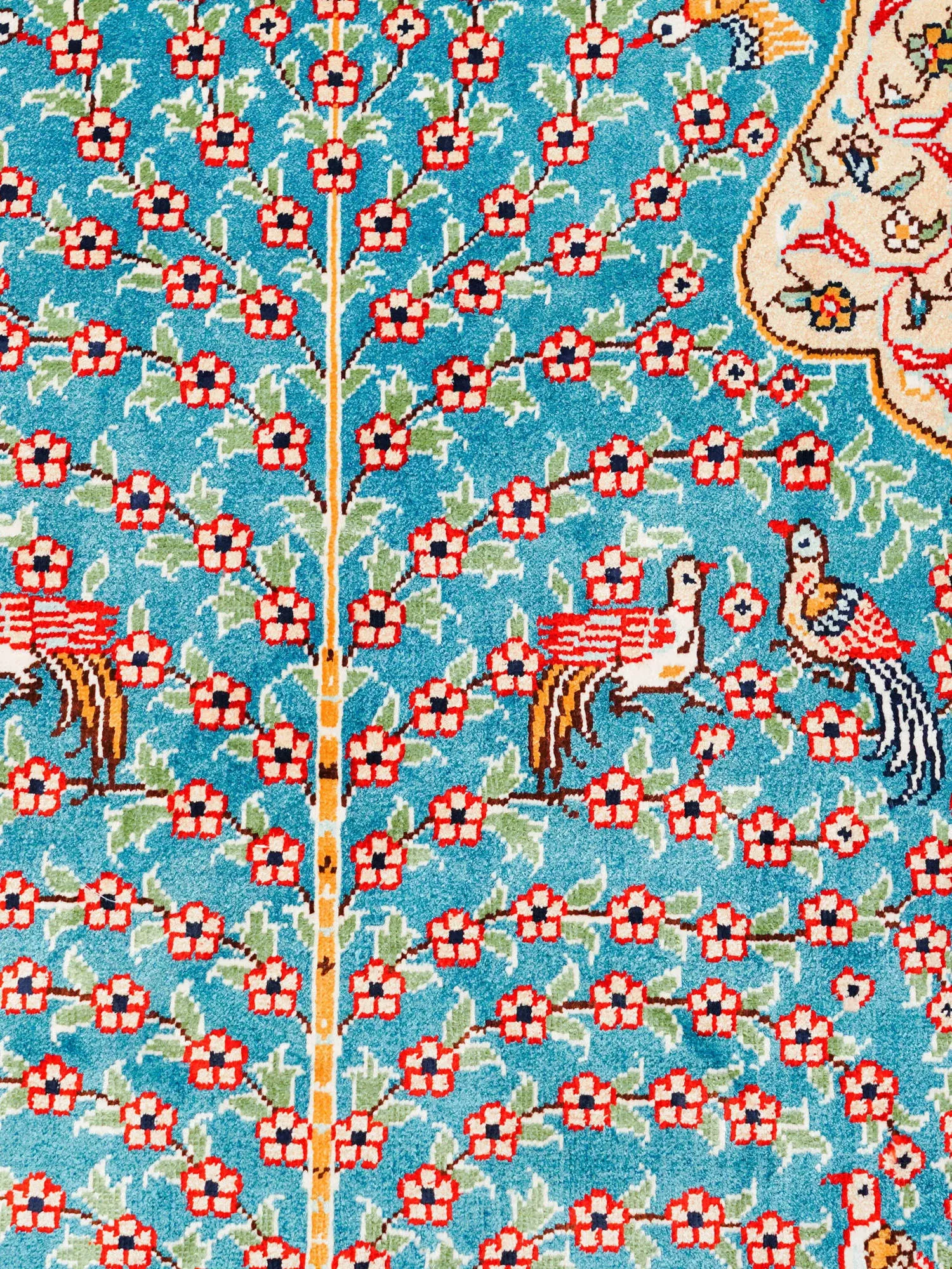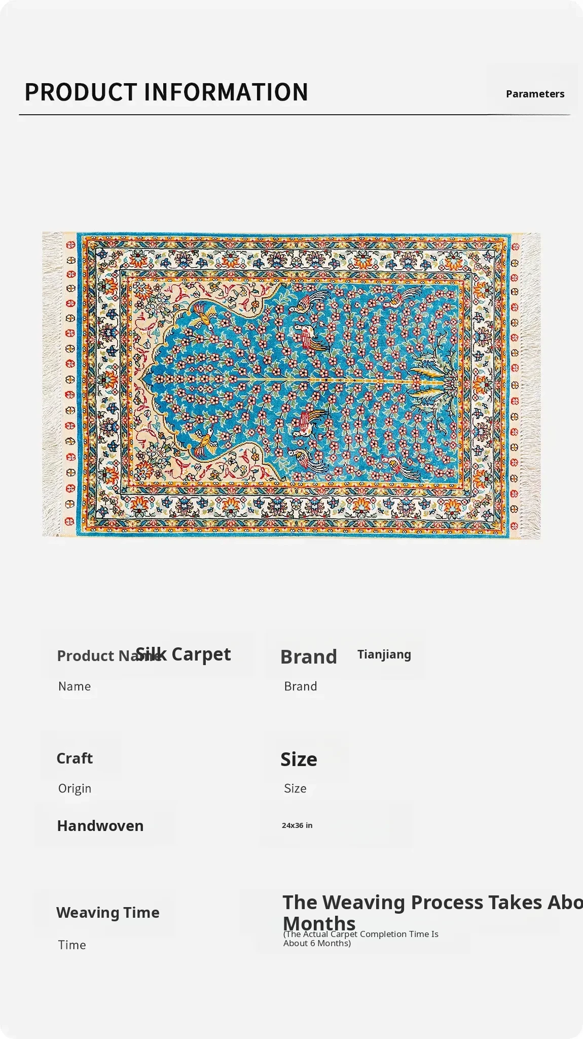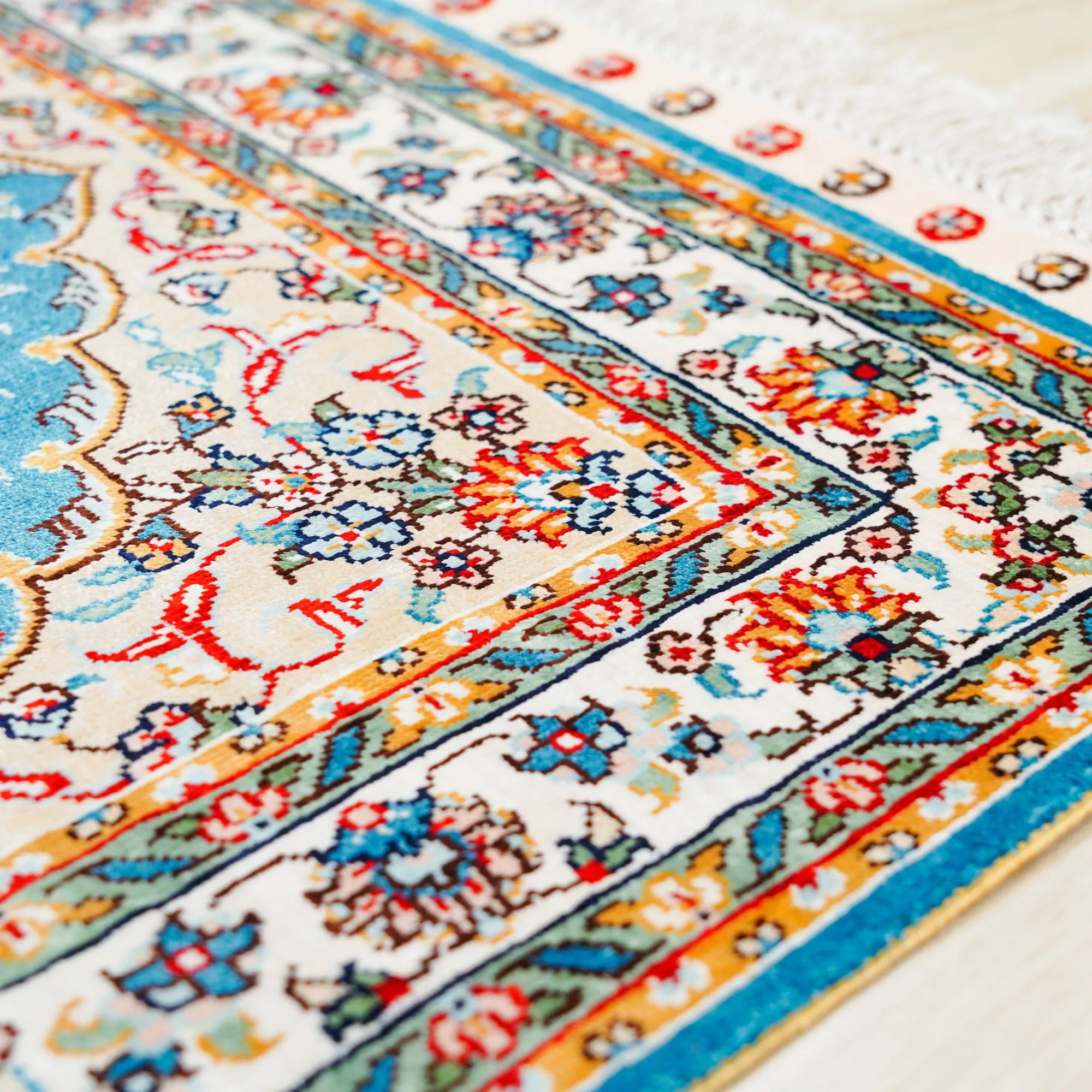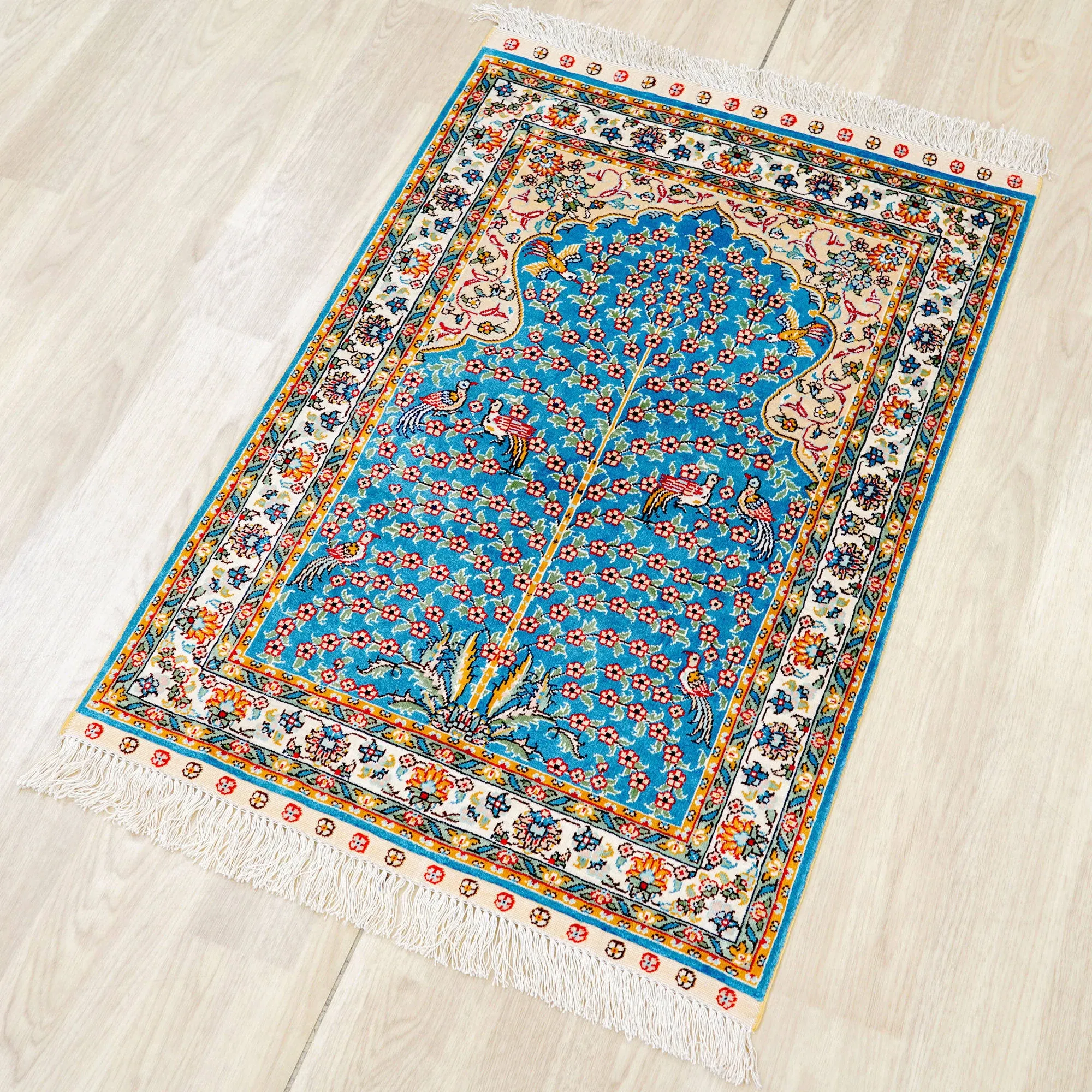 Heaven Artisan Handcrafted Blue Persian Silk Carpet - Knotted Weave European Style Tapestry, 60x90cm - Elevate Your Home Décor with Luxurious Elegance!