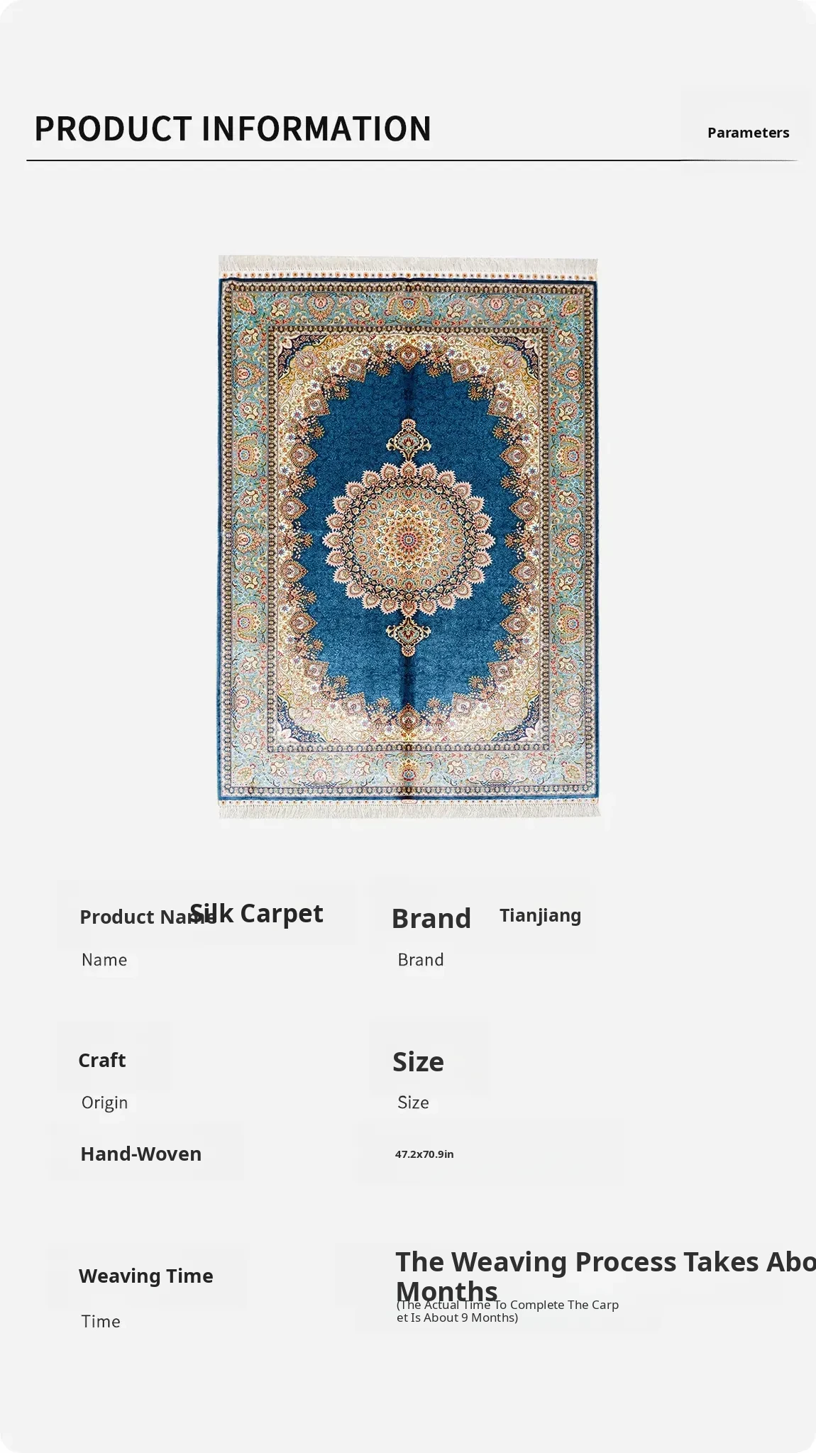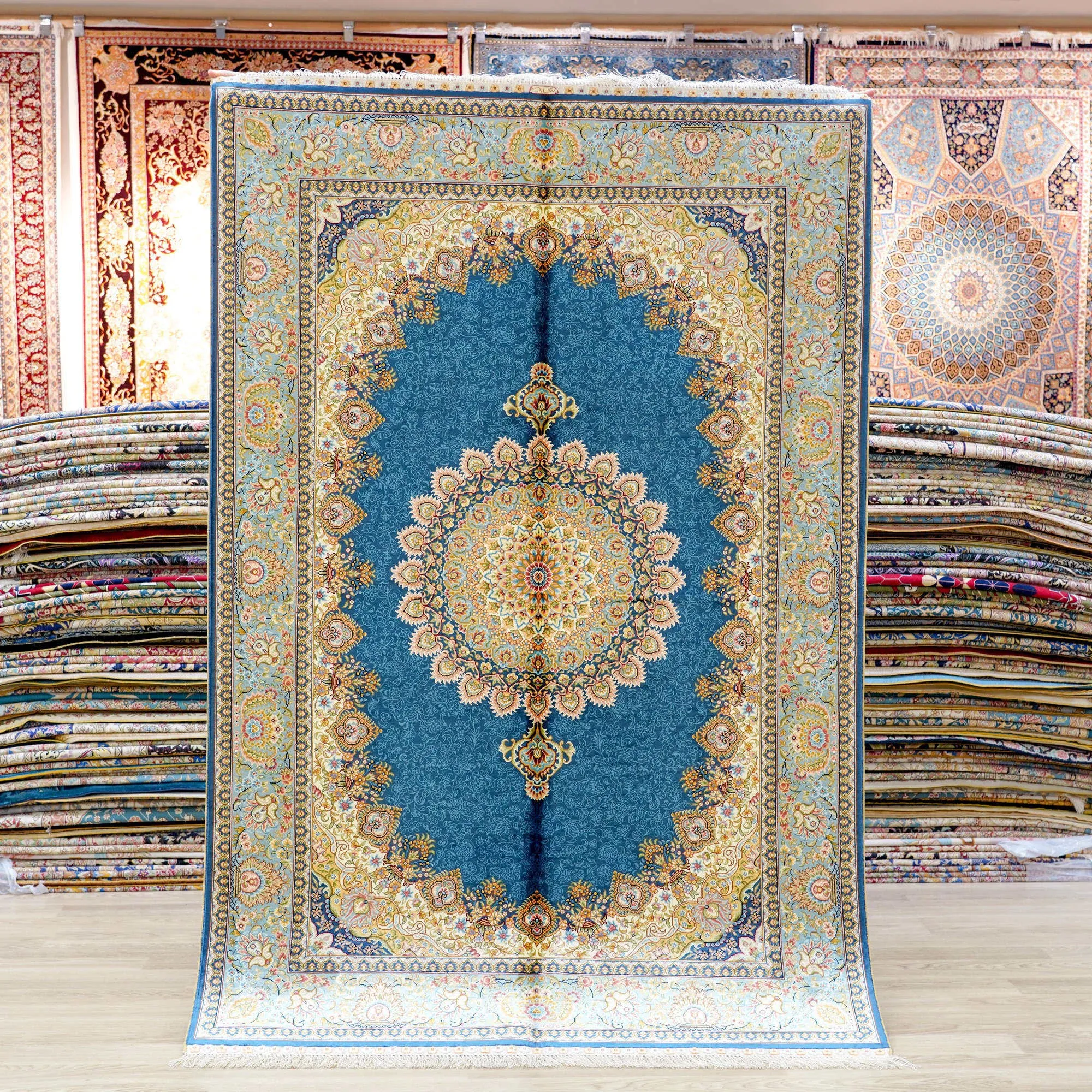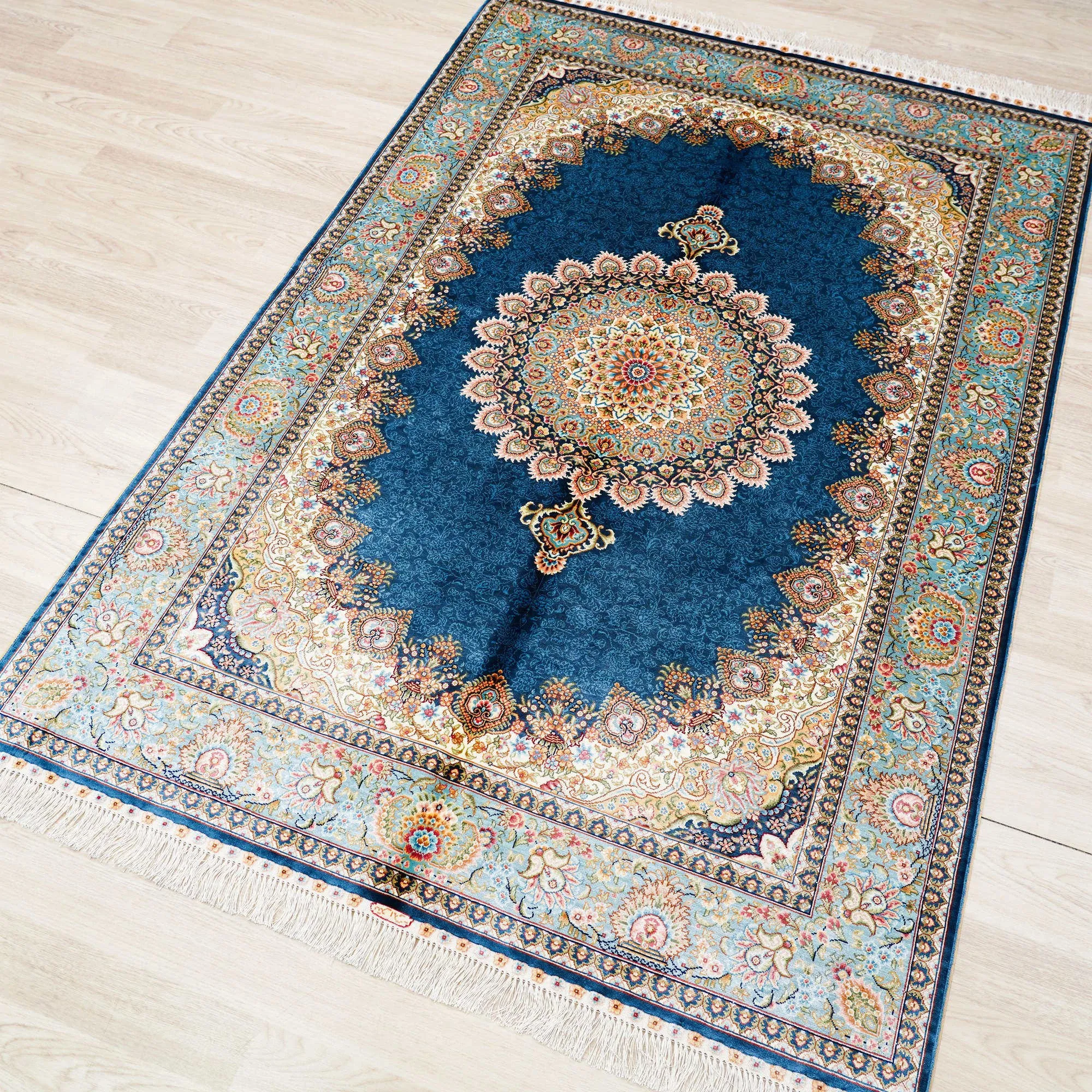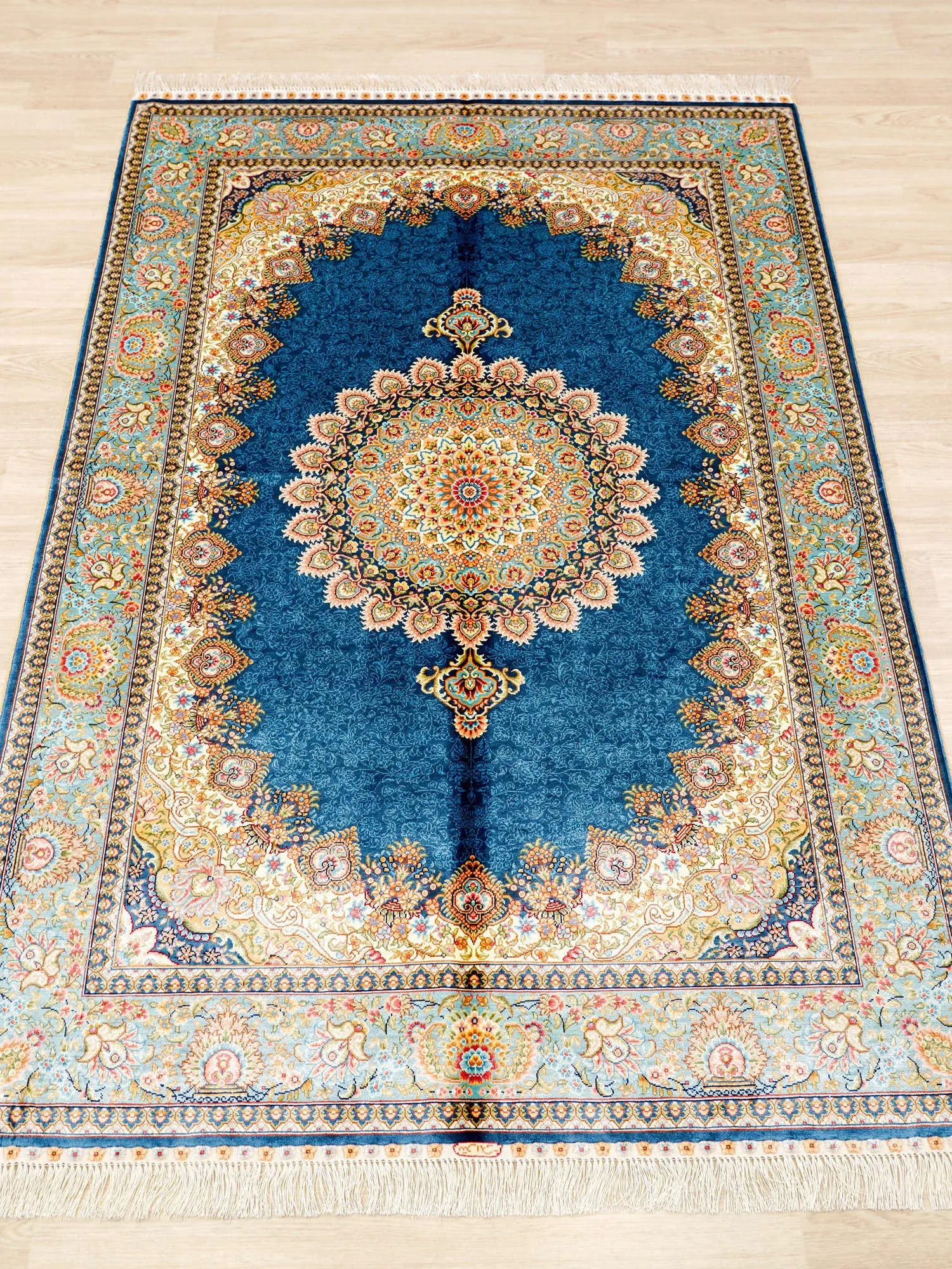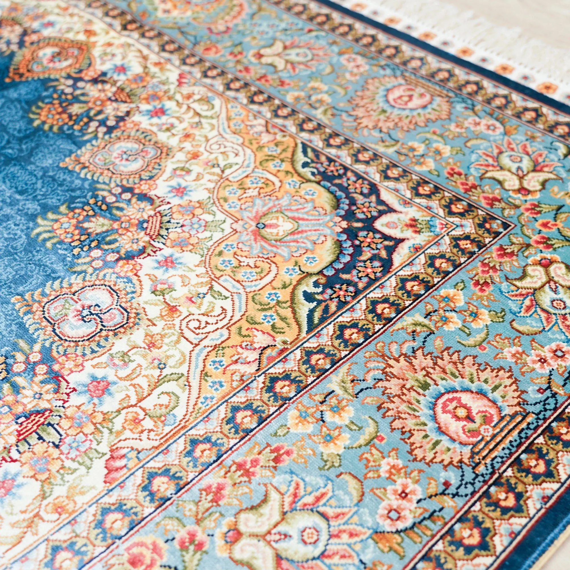 Heaven Artisan Handcrafted Silk Carpet - Blue Persian Style Area Rug for European and American Living Rooms and Bedrooms - 120x180cm Elegance and Luxury for Your Home