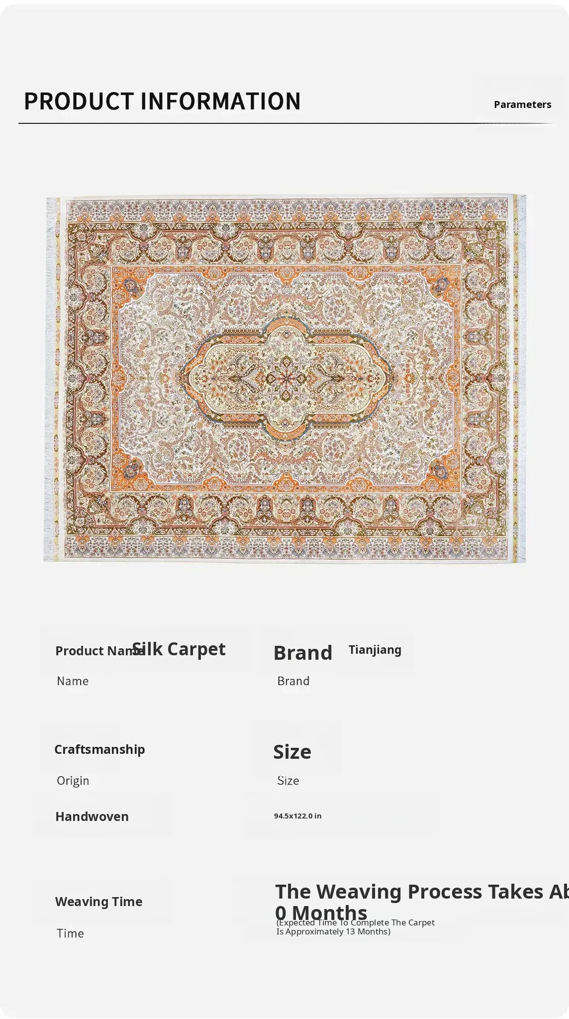 Heaven Artisan Handcrafted Silk Carpet - Luxurious American Persian Area Rug for Villa Living Room & Bedroom, Size 240x310cm - Elevate Your Home Décor with Timeless Elegance