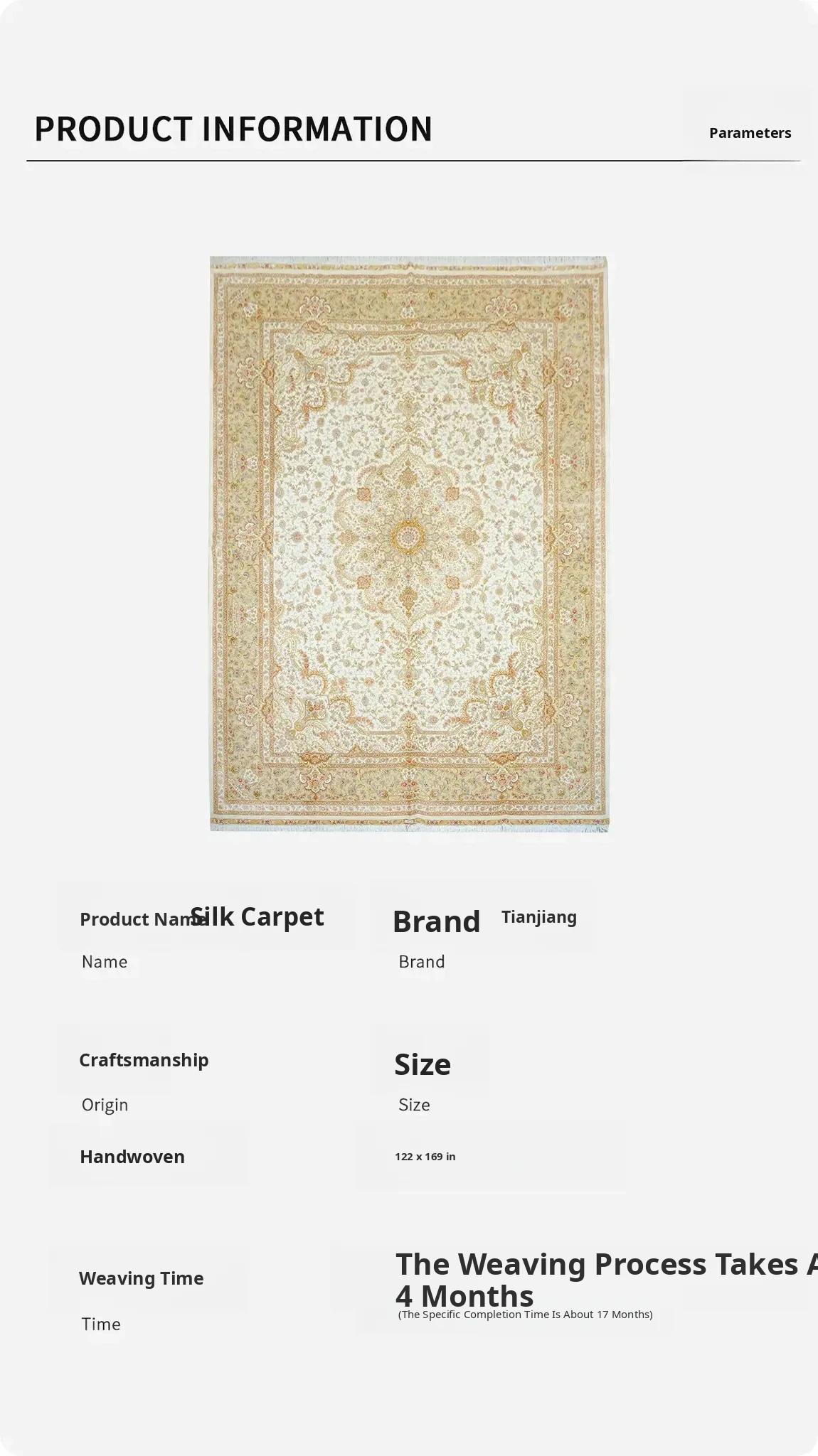 Heaven Artisan Handcrafted Solid Color Silk Carpet - Elegant European & American Style High-End Rug for Villas, 310x430cm