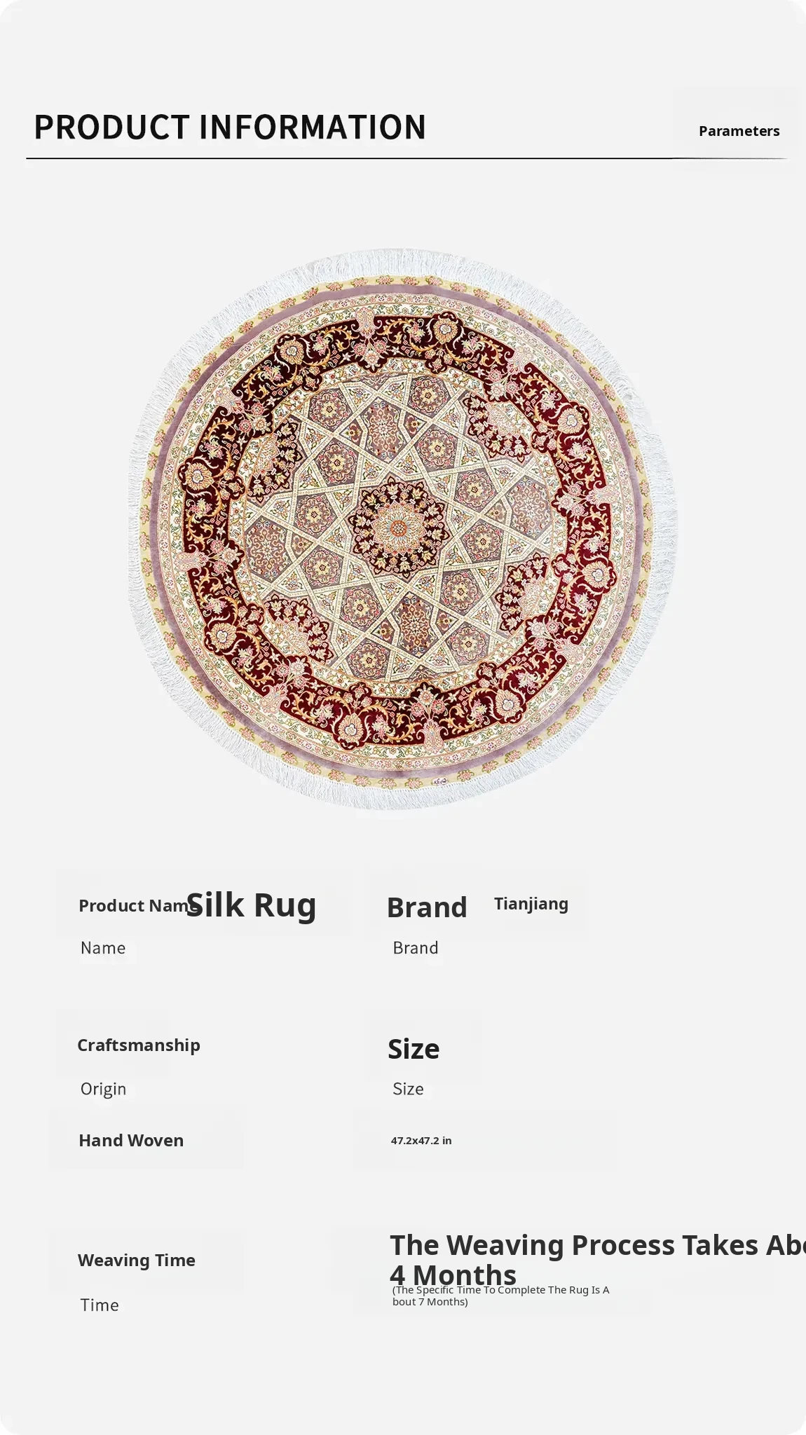 Heaven Artisan Handmade Silk Carpet - 120x120cm Piano-Grade Rug for Living Room, Durable American-Style Design, Ideal for Export and Easy to Clean