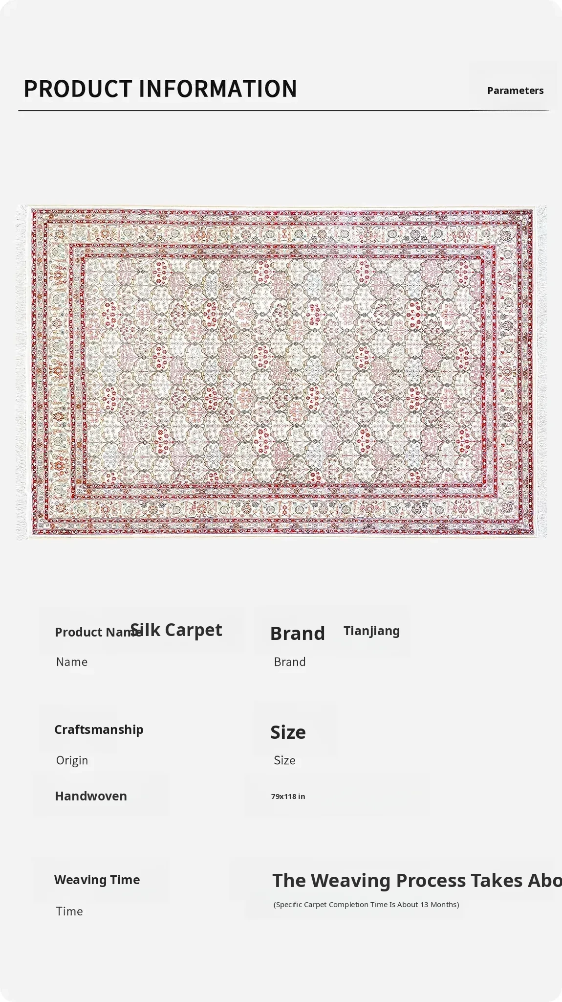 Heaven Artisan Handmade Silk Carpet - Classic European Design, Solid Color Persian Area Rug for Bedroom & Study, Luxurious Silk Blanket, 200x300cm