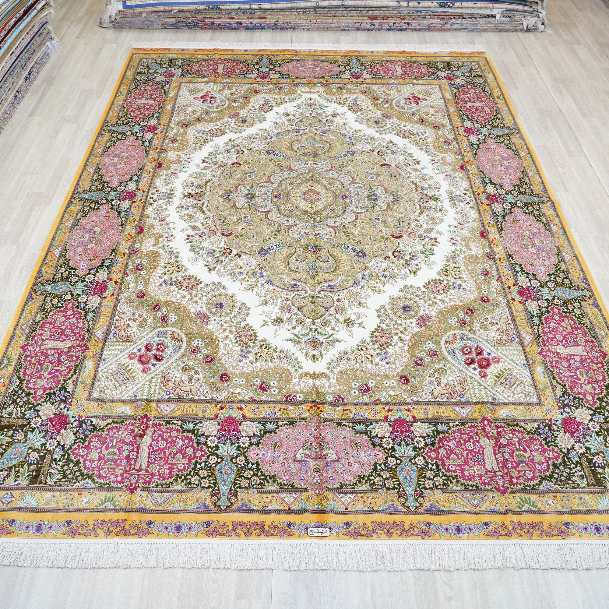Heaven Artisan Handmade Silk Carpet - Kashmiri Luxury Silk Rug for Home, Size 310x430cm, Exquisite Design for Upscale Interiors