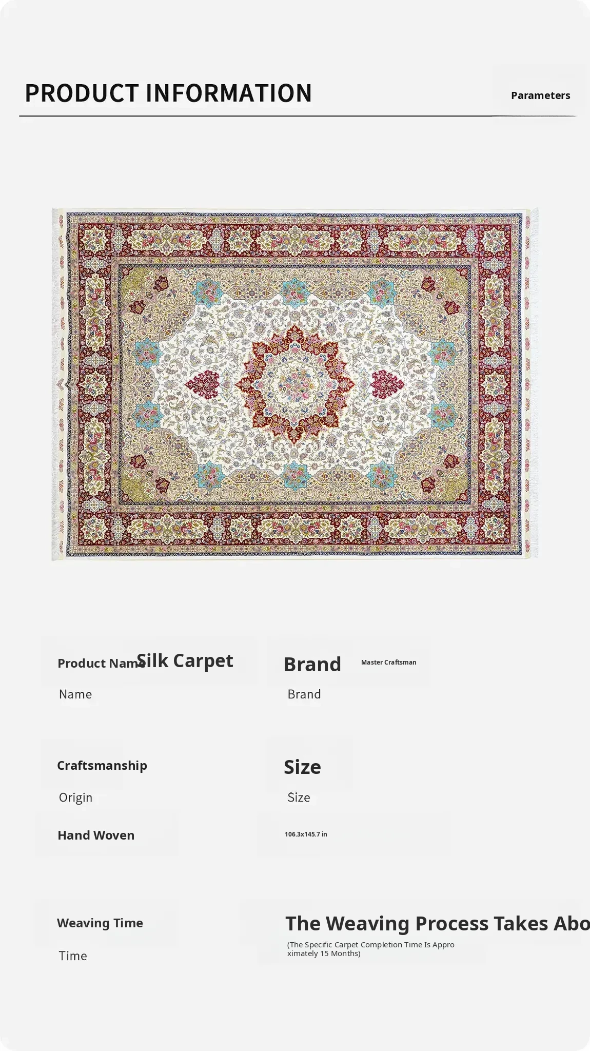 Heaven Artisan Handmade Silk Carpet - Luxurious 270x370cm Silk Rug for Bedroom and Living Room, Perfect for Villas, Exquisite Craftsmanship and Elegant Design