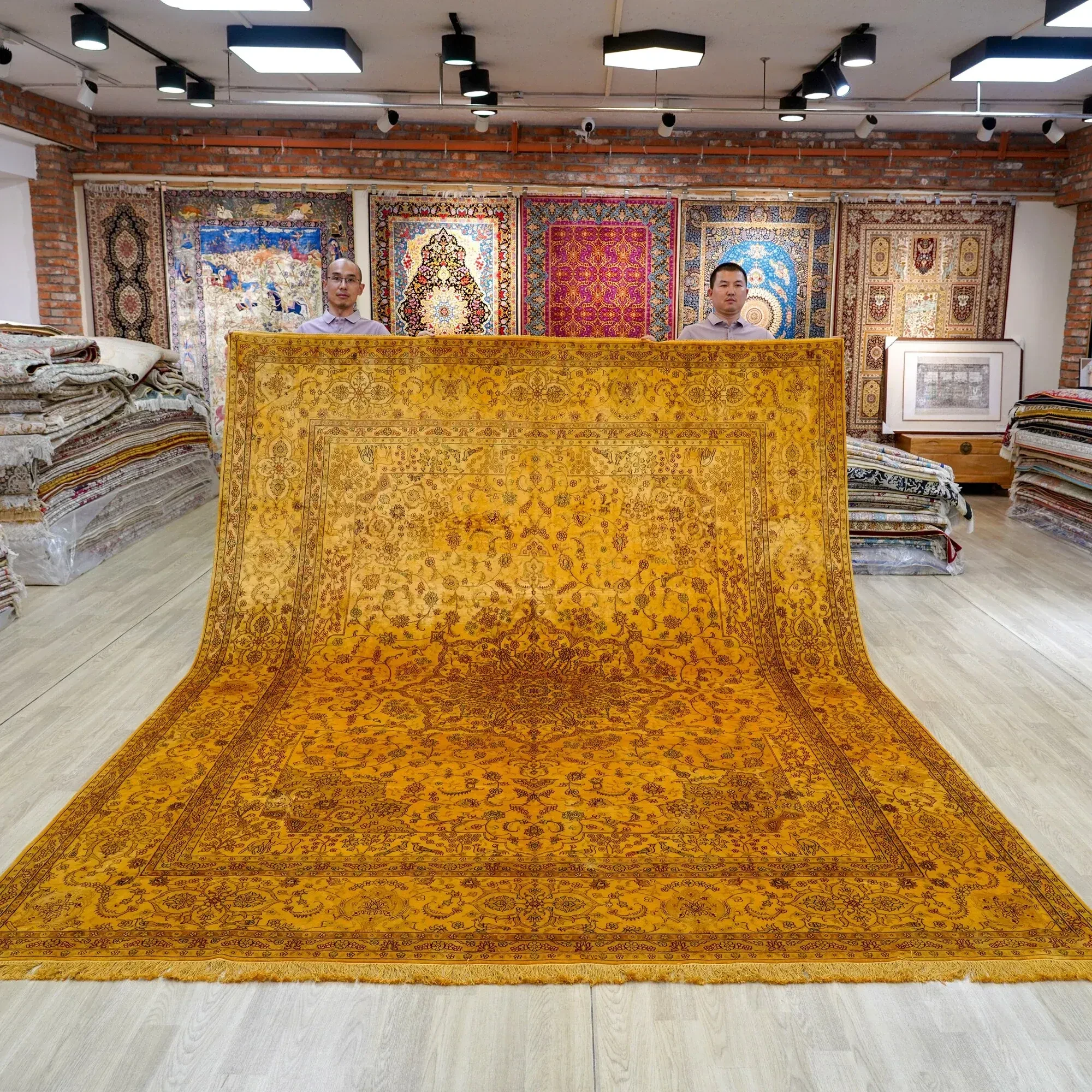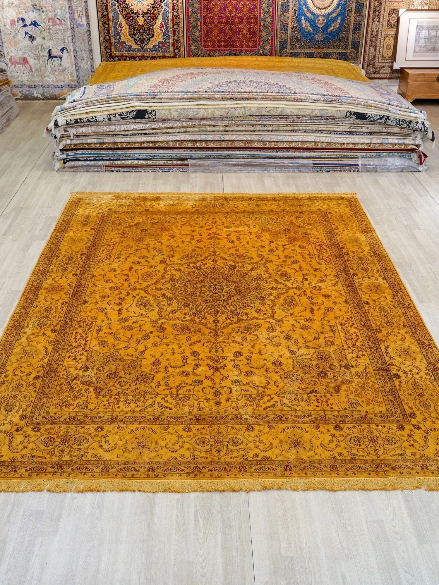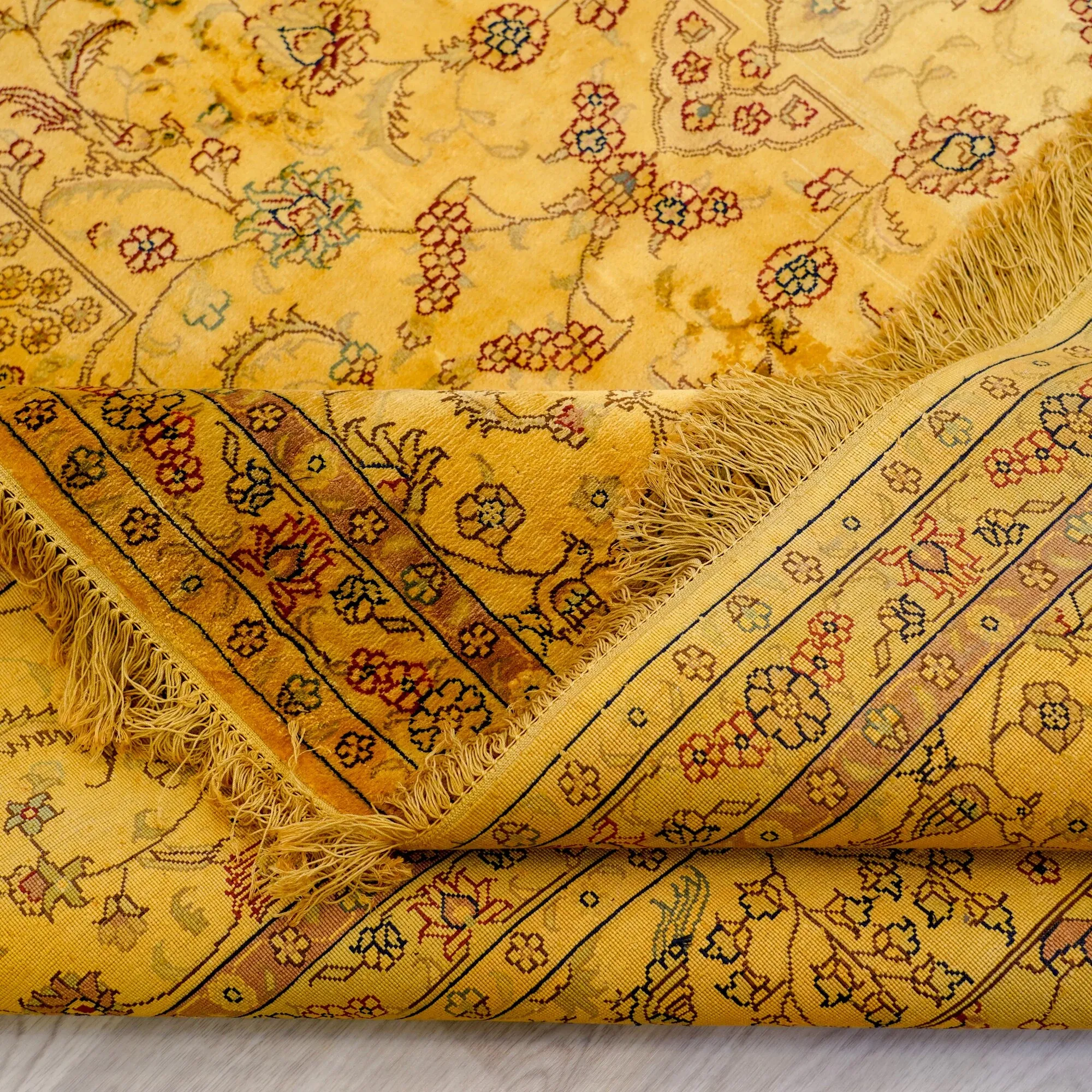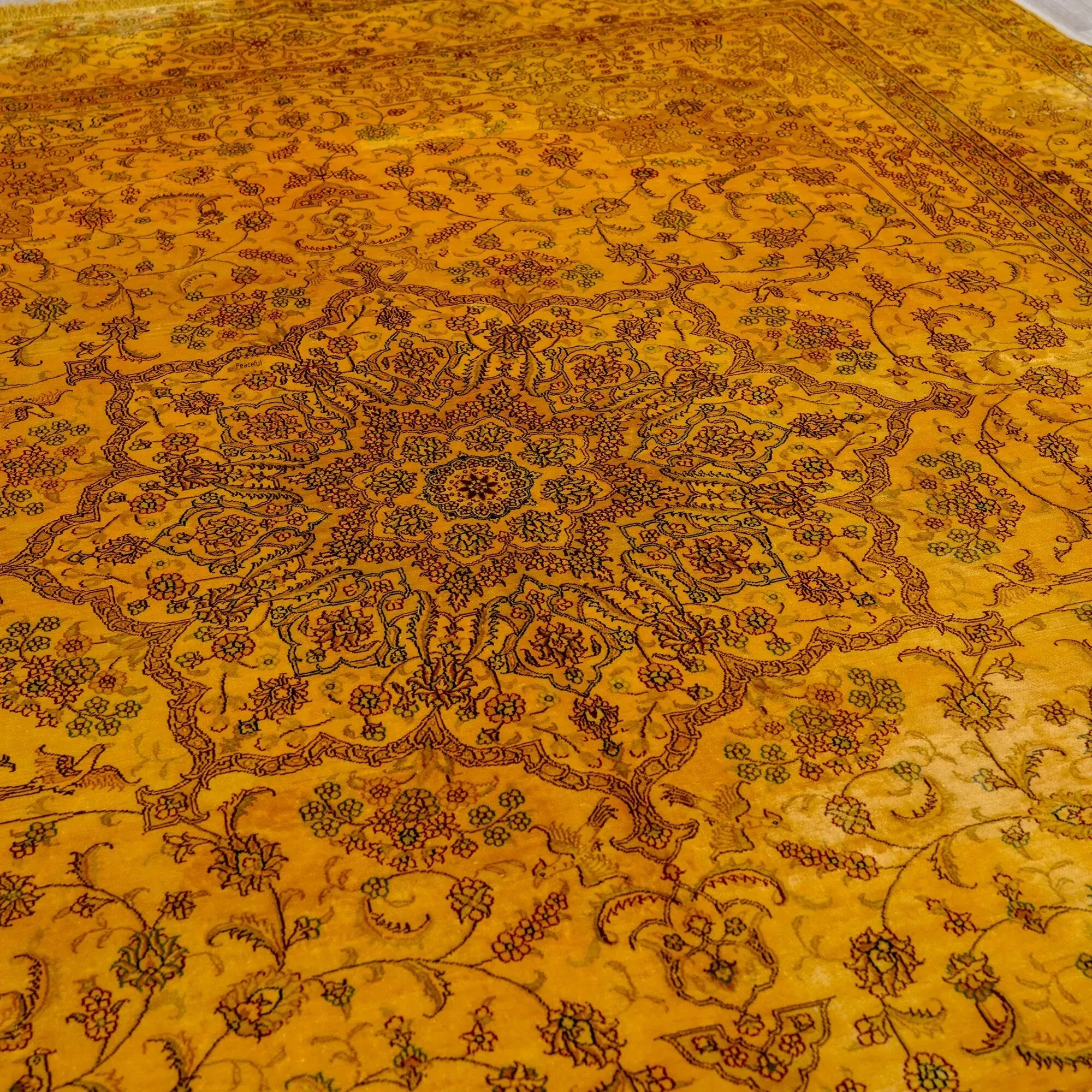 Heaven Artisan Handmade Silk Carpet - Premium Floral Area Rug for Study & Dining Room, Non-Toxic, Stain-Resistant, 270x370cm