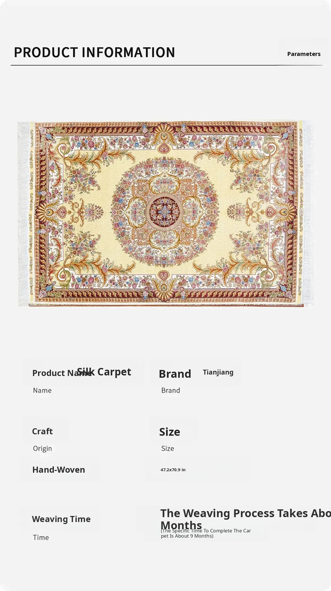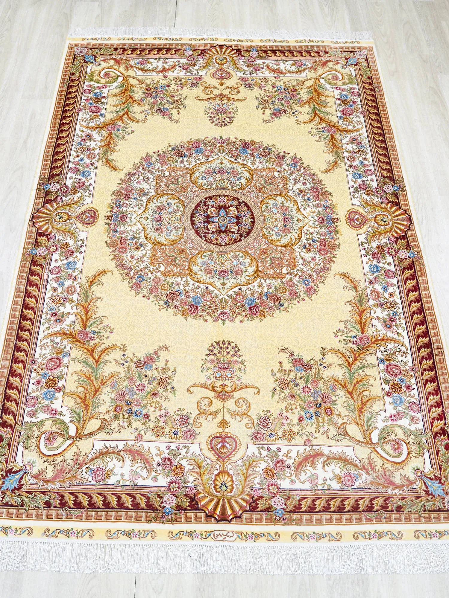 Heaven Artisan Handmade Silk Persian Carpet - Luxurious Hand-Knotted Silk Area Rug for Bedroom, Size 120x180cm