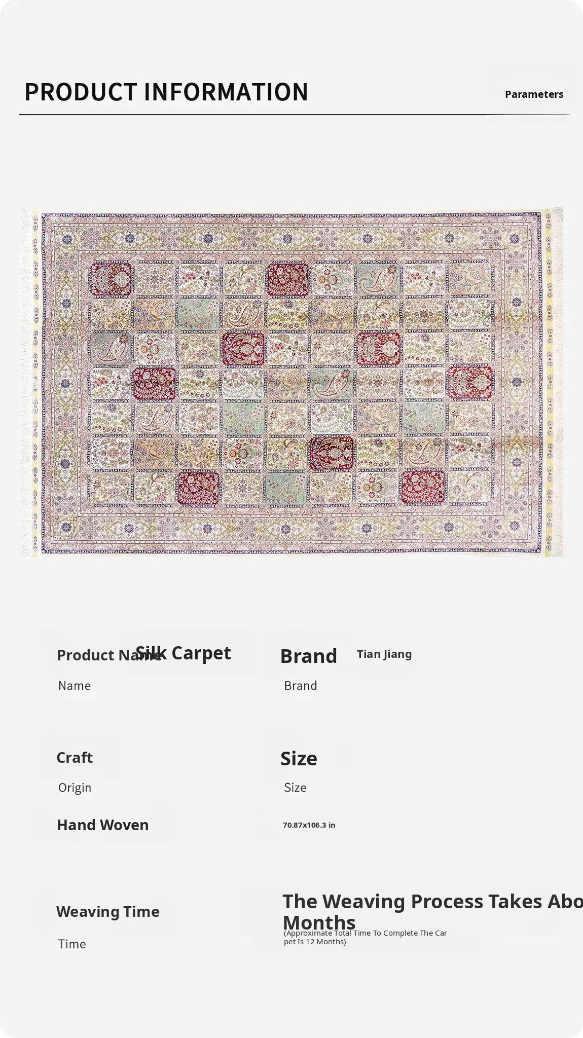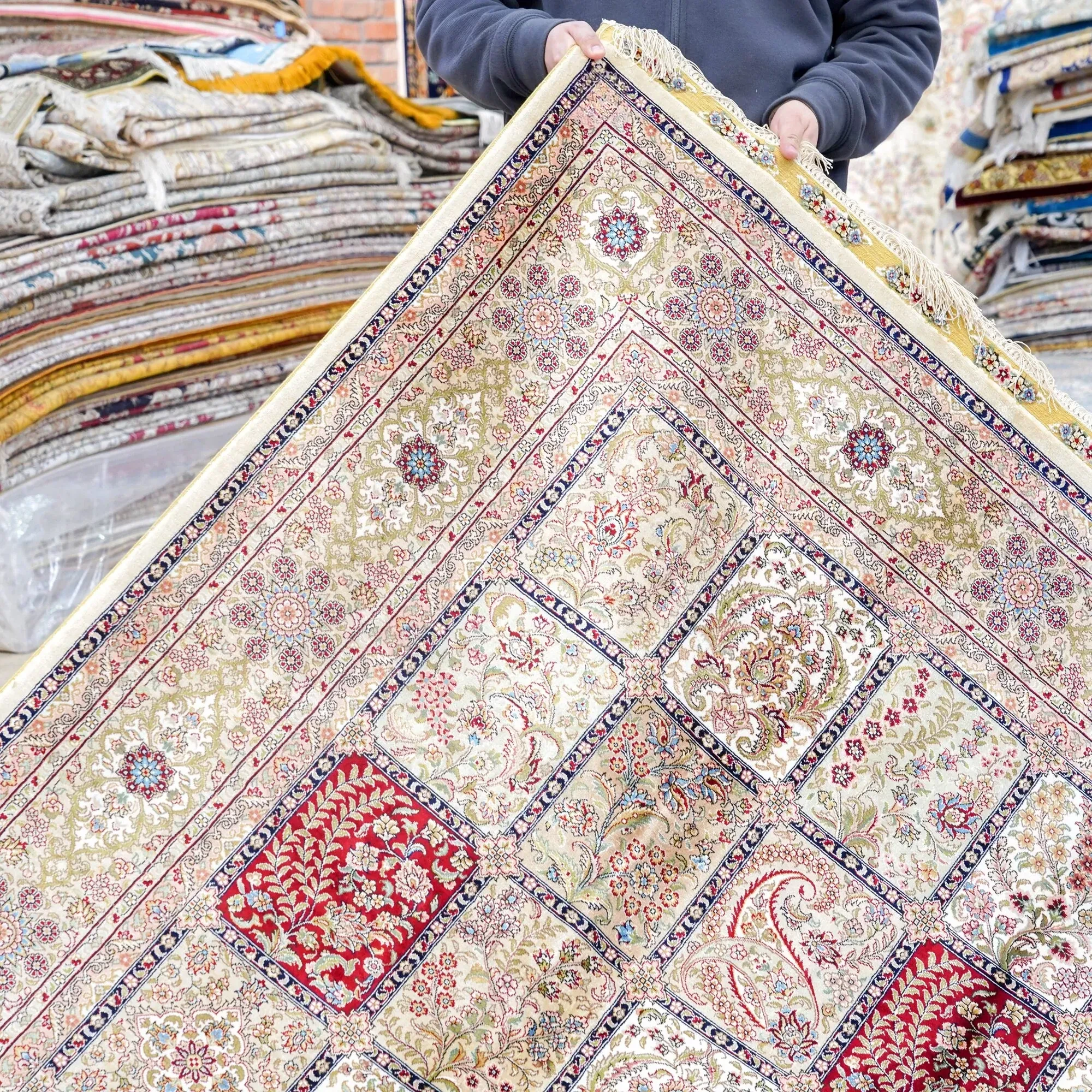 Heaven Crafts Handmade Silk Persian Carpet - European Style Plant-Dyed Area Rug for Living Room, 180x270cm - Luxurious and Eco-Friendly Home Decor