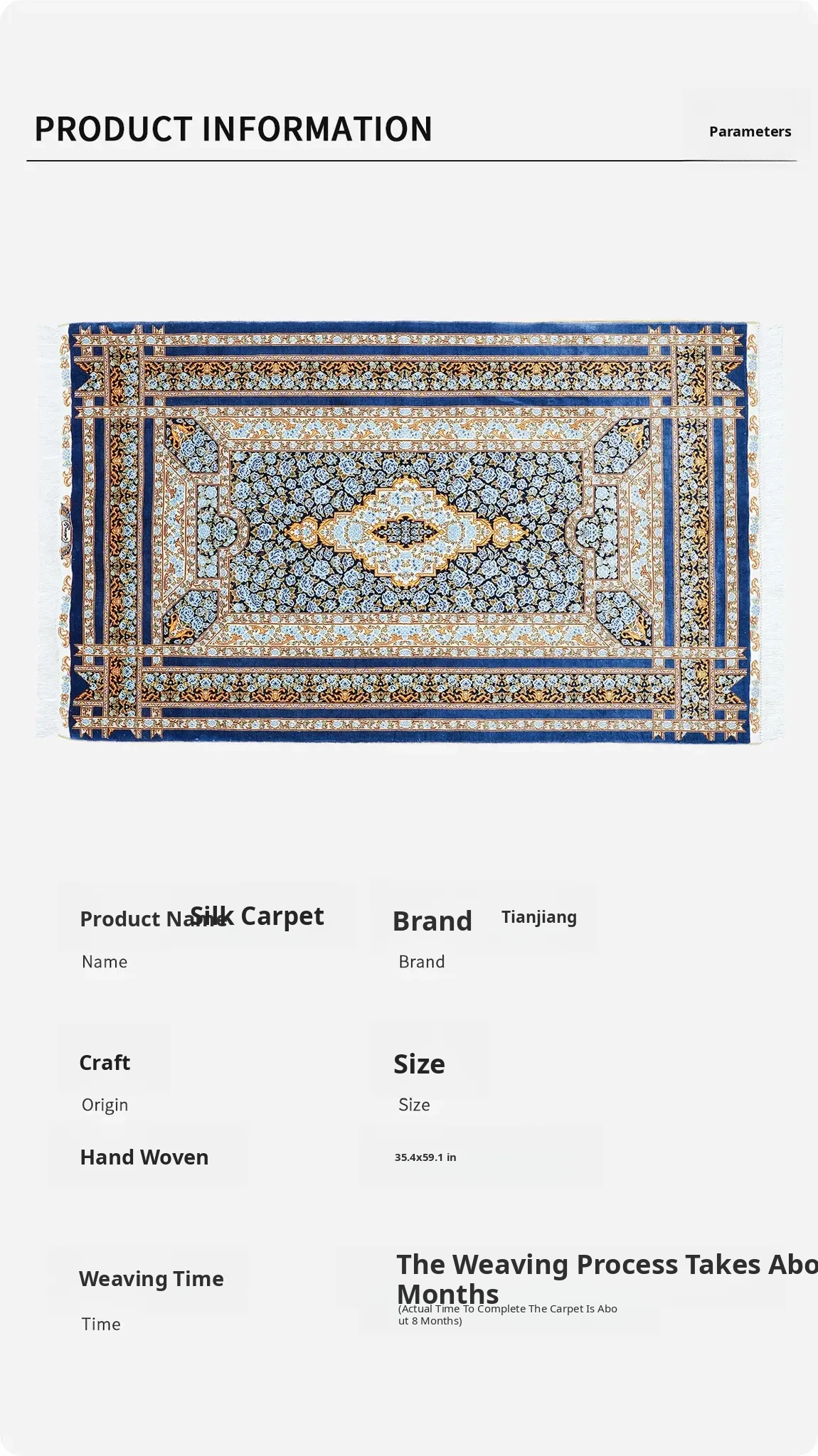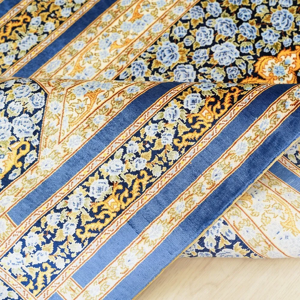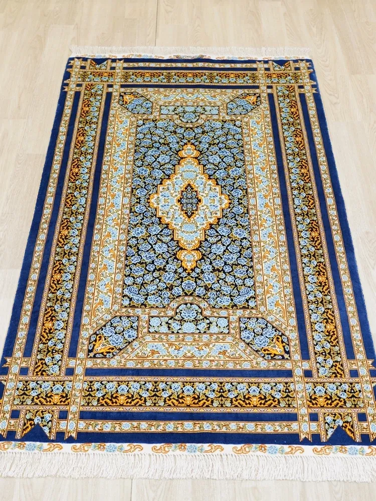 Heaven Crafts Pure Silk Carpet - Blue Elegance, Premium European & American Style Rug for Living Room & Bedroom, Non-adhesive, 90x150cm
