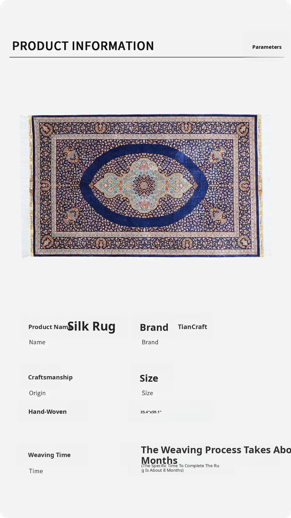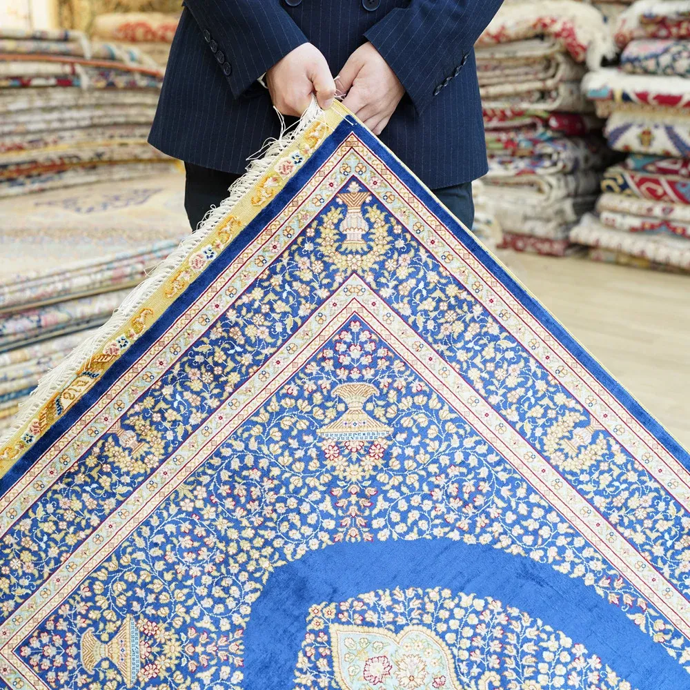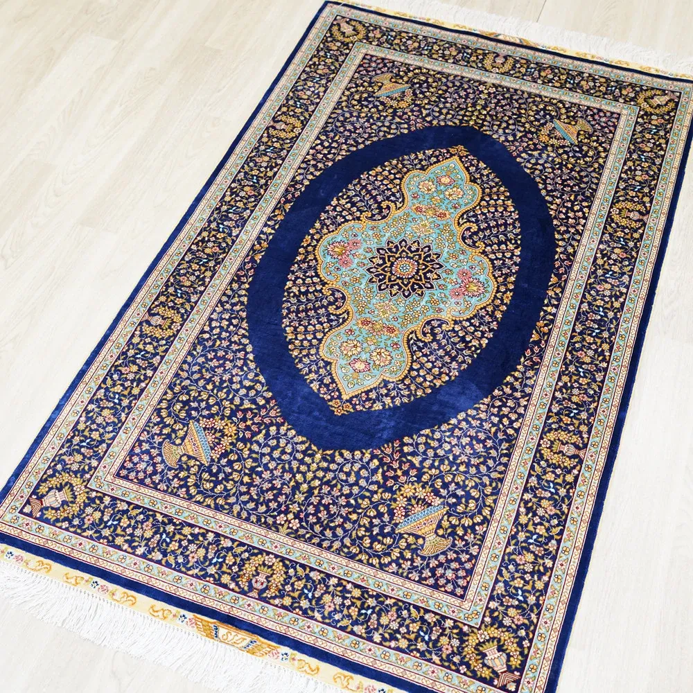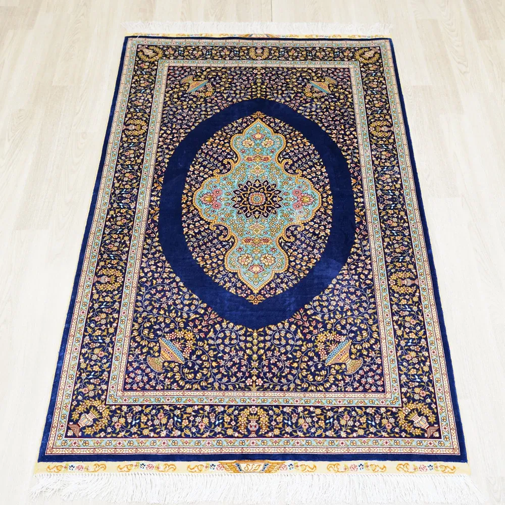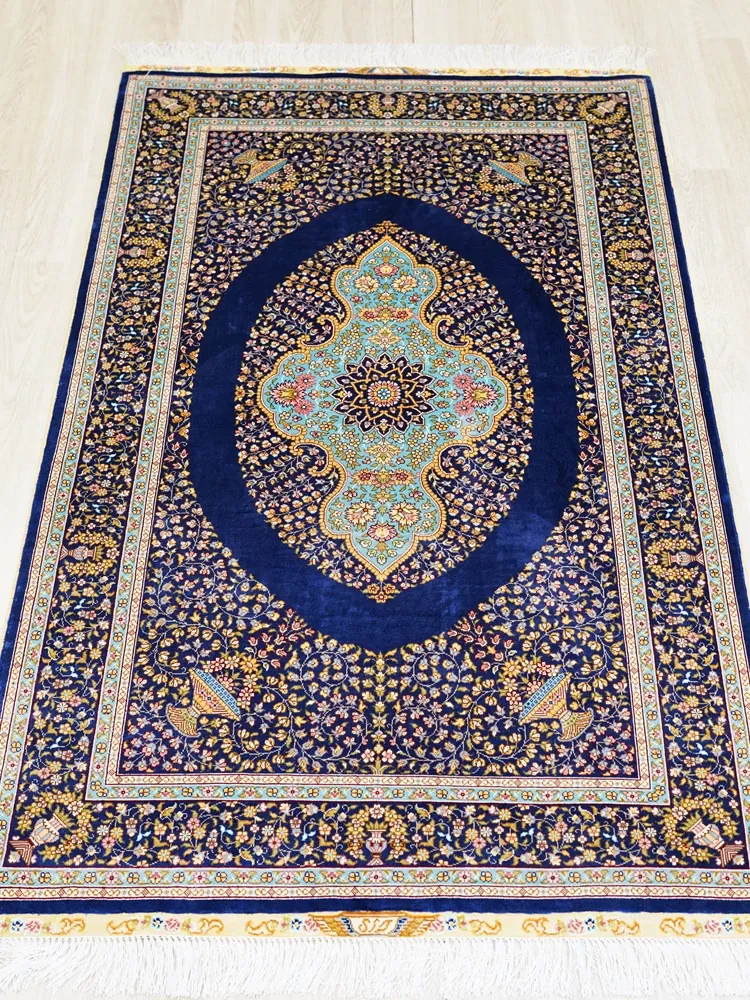 Heavenly Artisan Blue Classic Persian Silk Carpet - Premium Durable Area Rug for American Living Room and Bedroom, 90x150cm