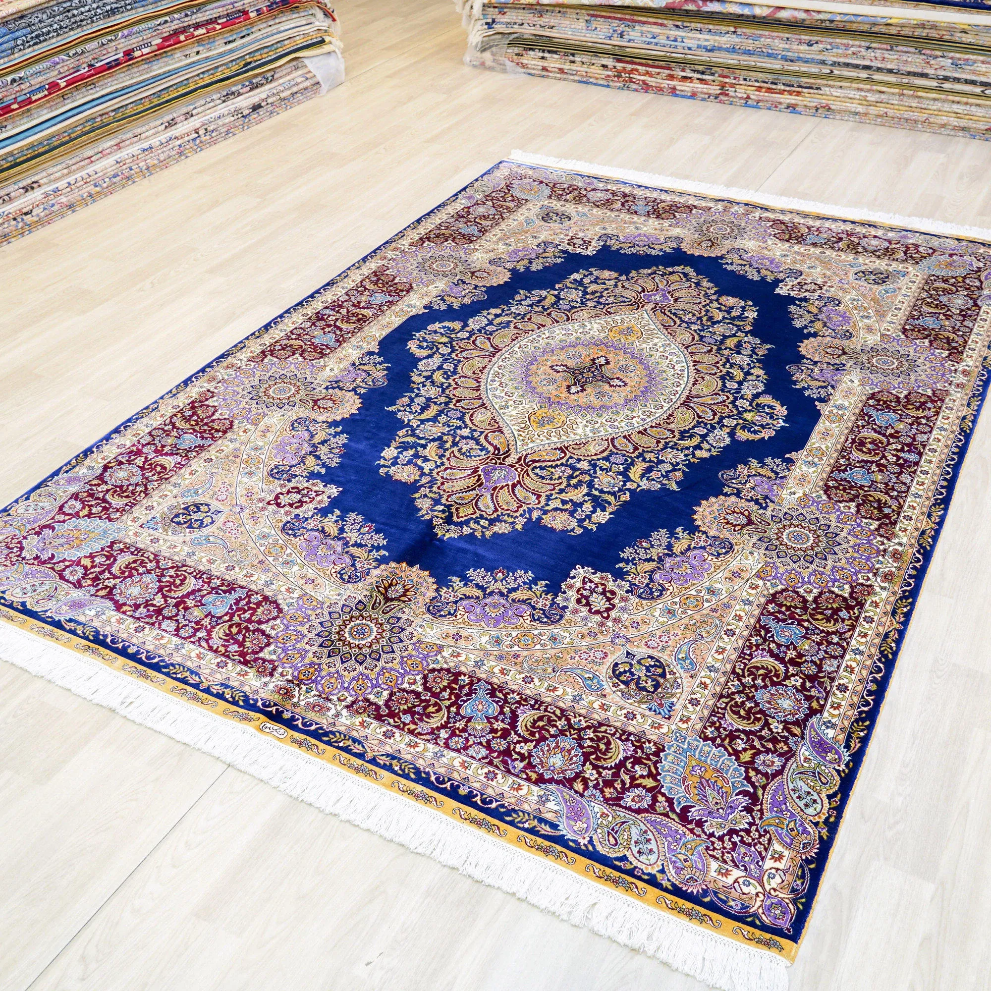 Heavenly Artisan Handcrafted Blue Silk Persian Carpet - Premium Quality 180x270cm Rug for Export to Europe and America