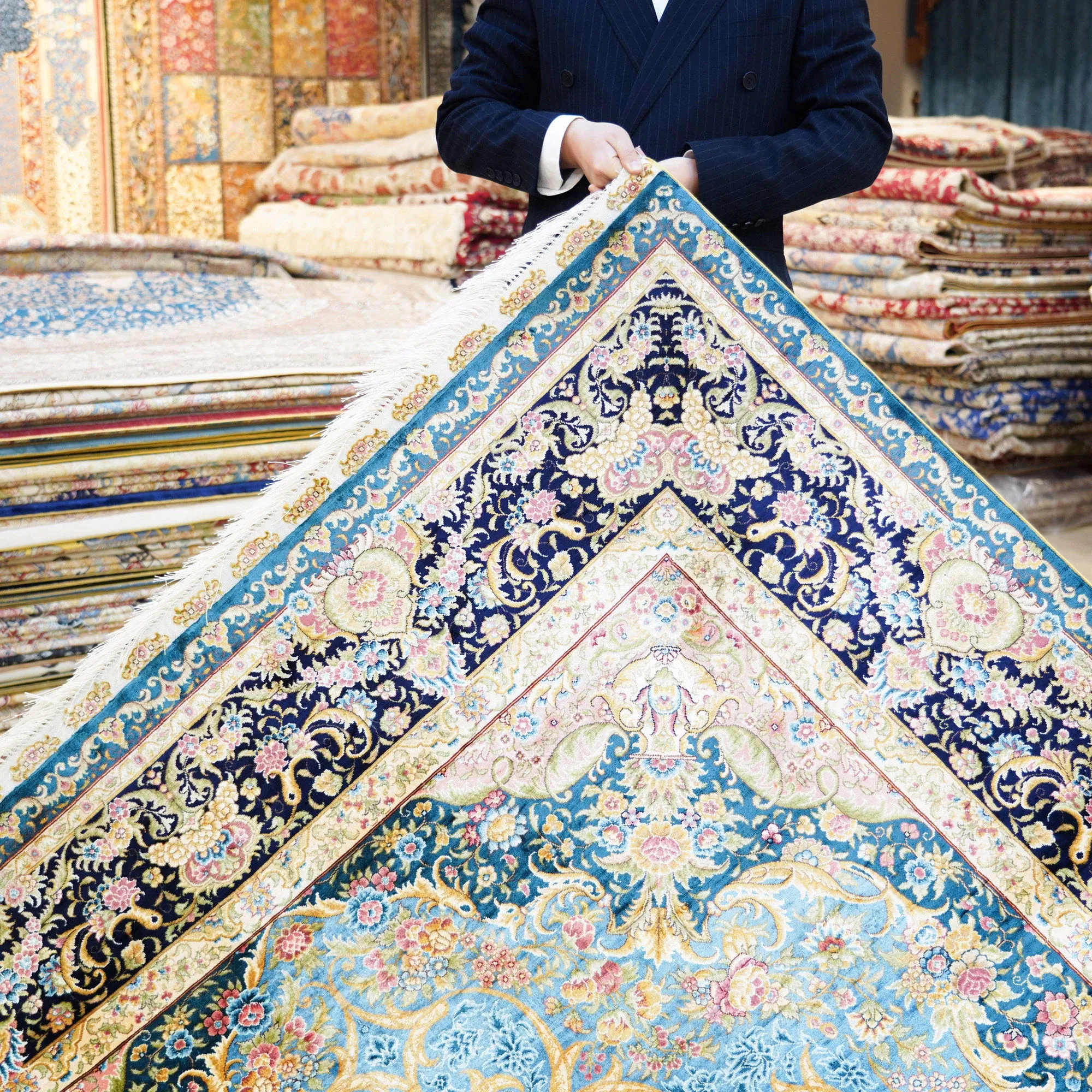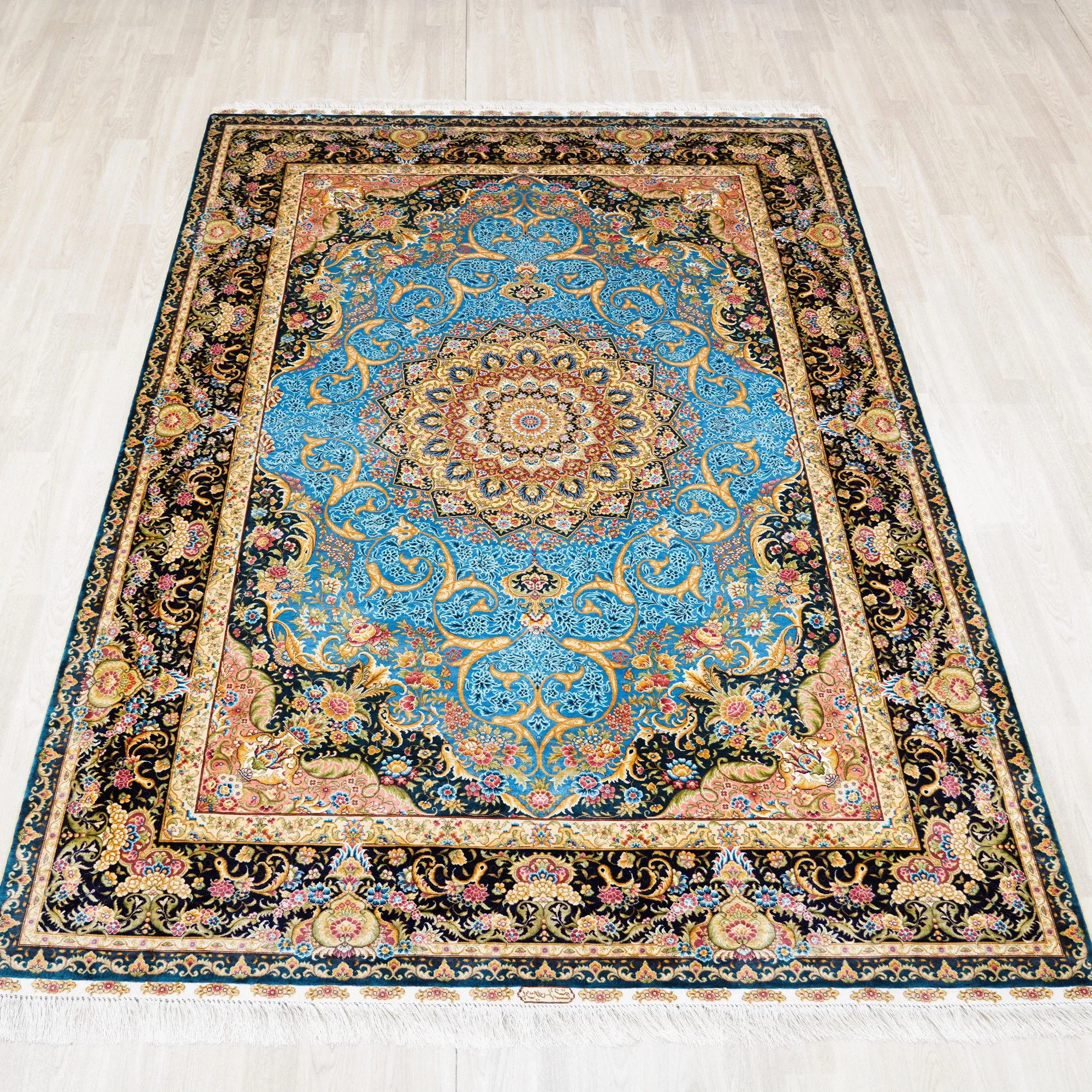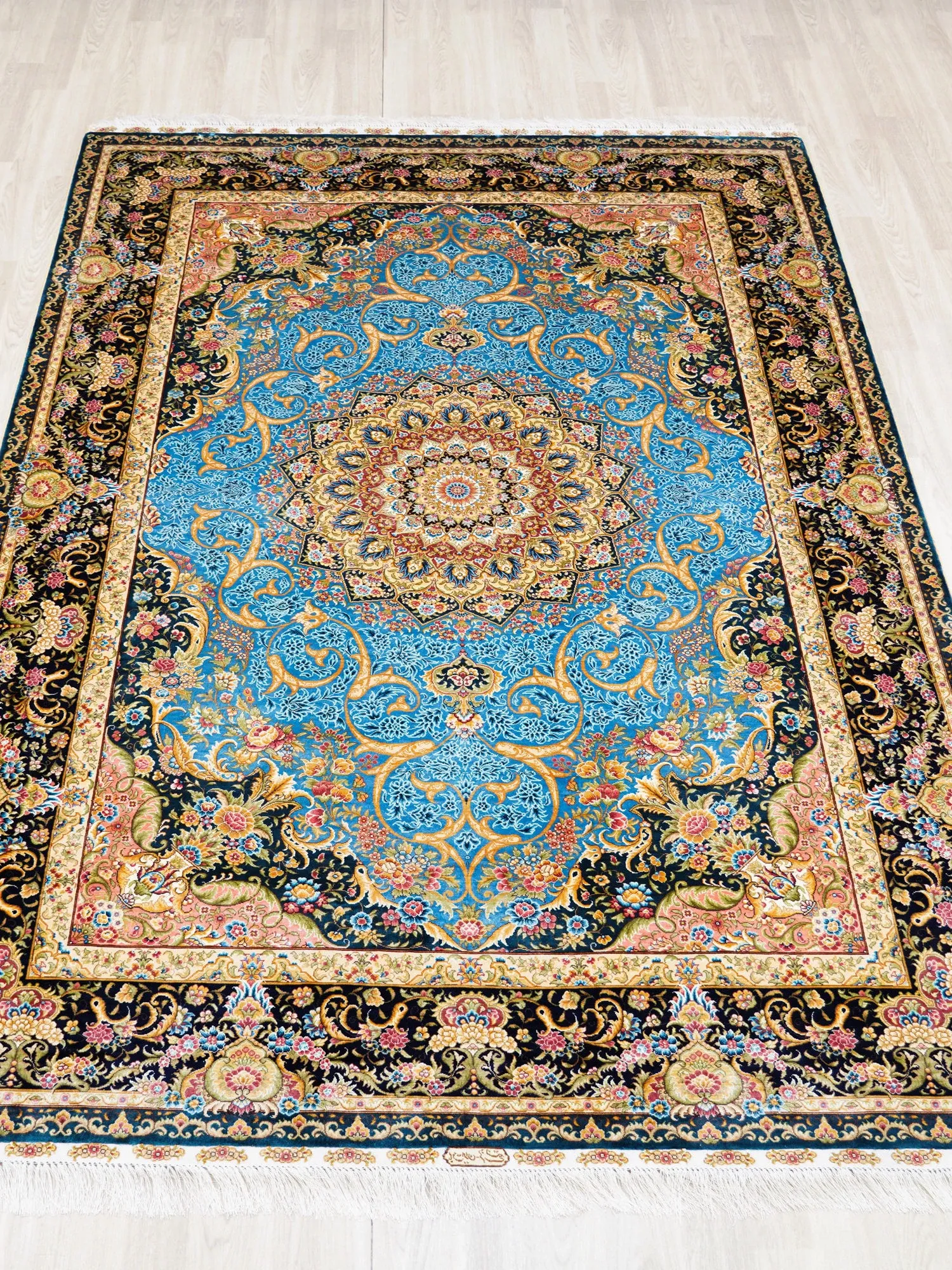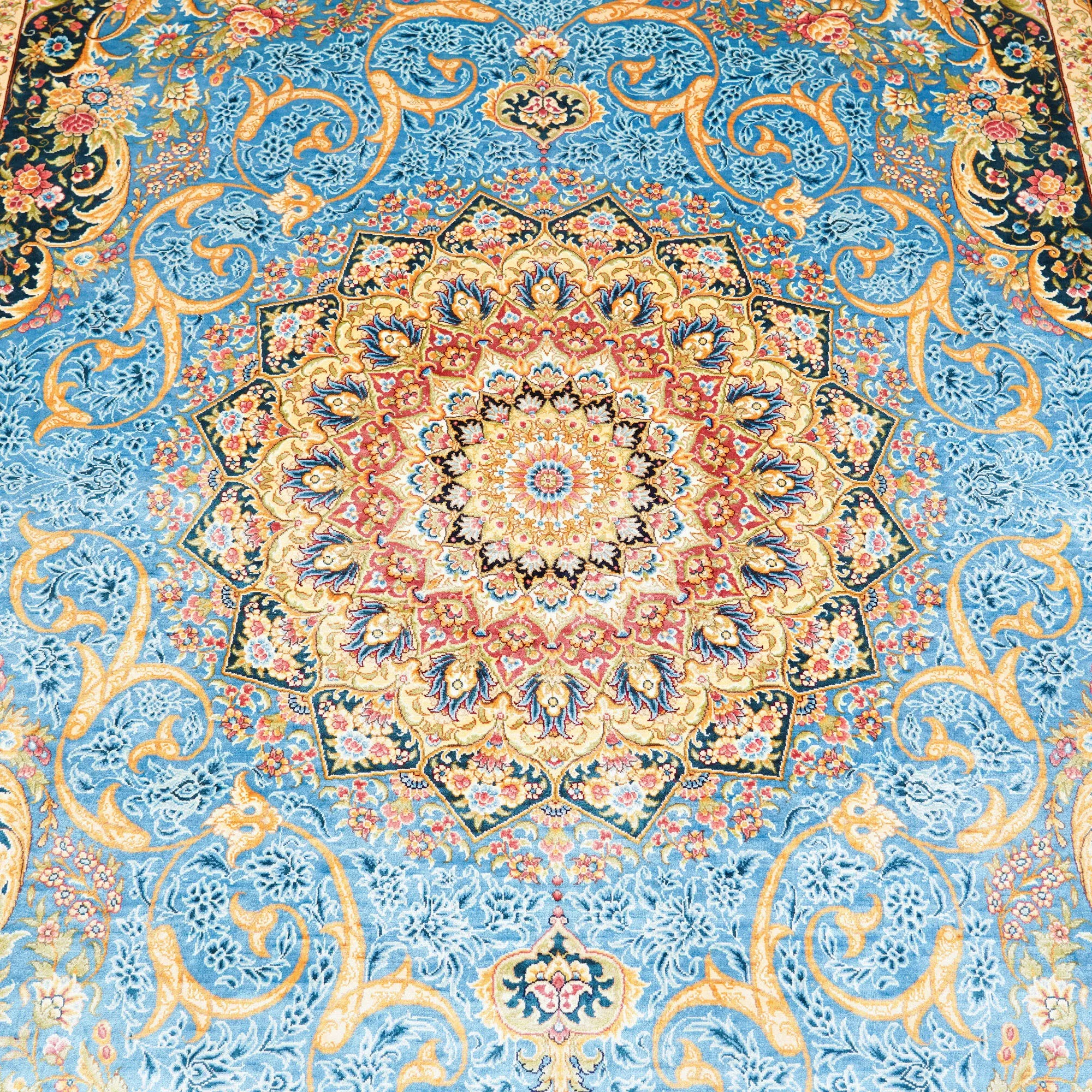 Heavenly Artisan Handcrafted Persian Carpet in Sky Blue - Exquisite Silk Area Rug for Villas, 180x270cm, Perfect for European and American Homes