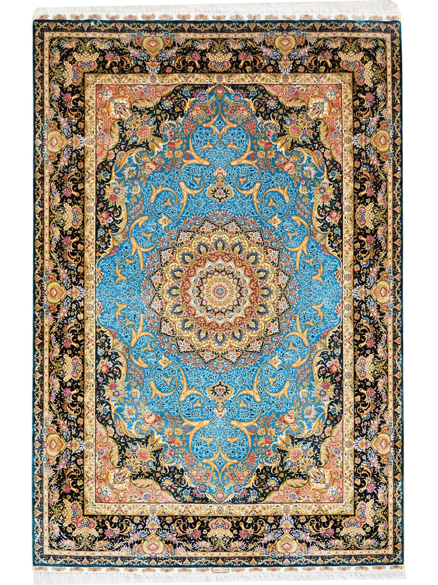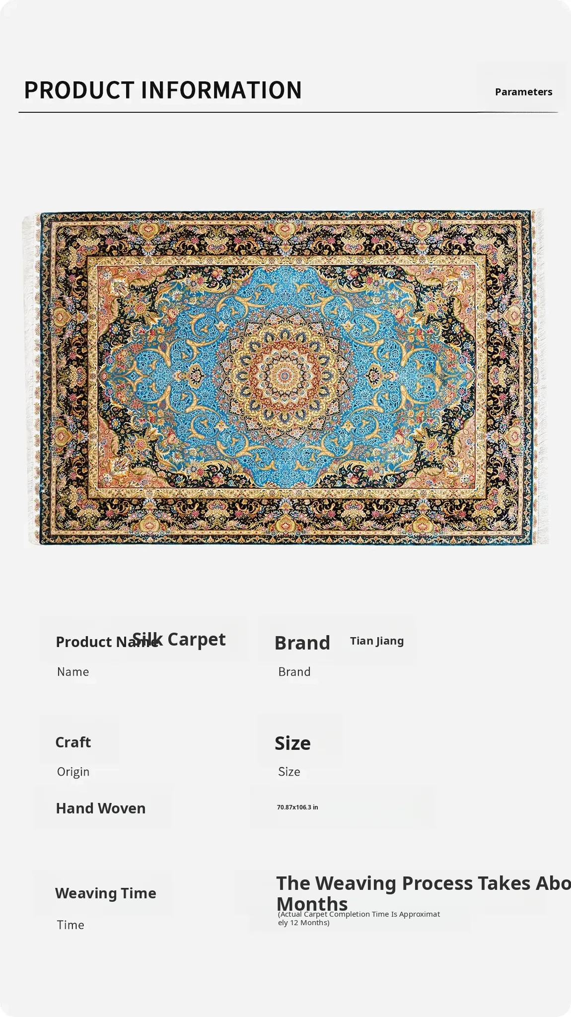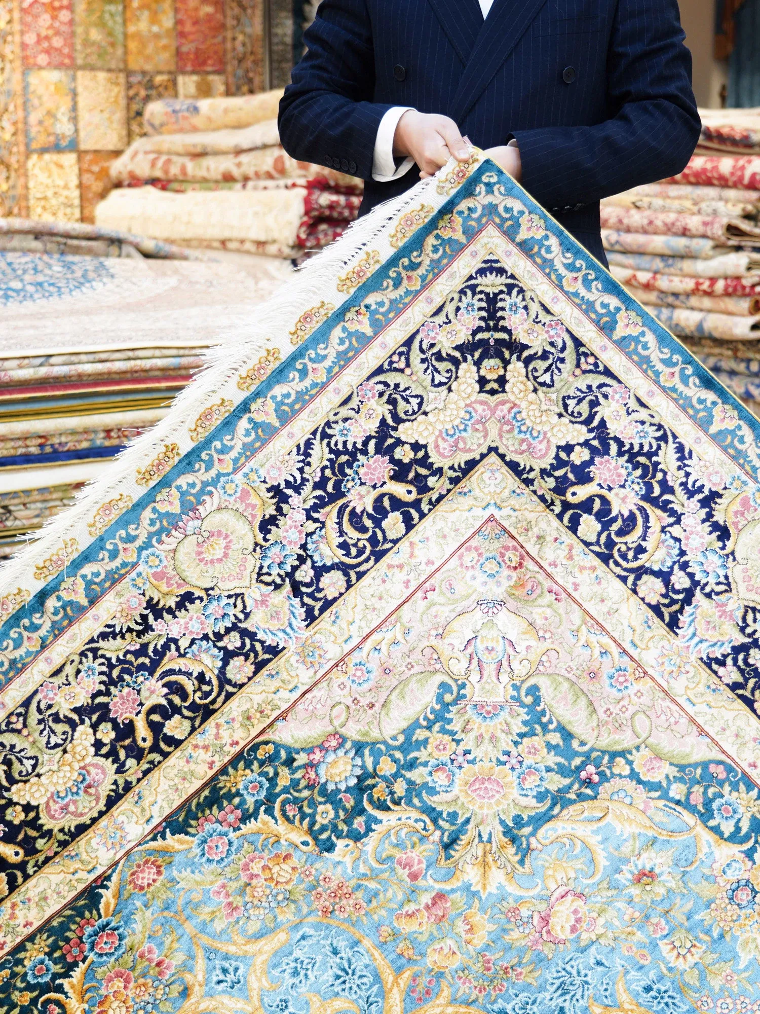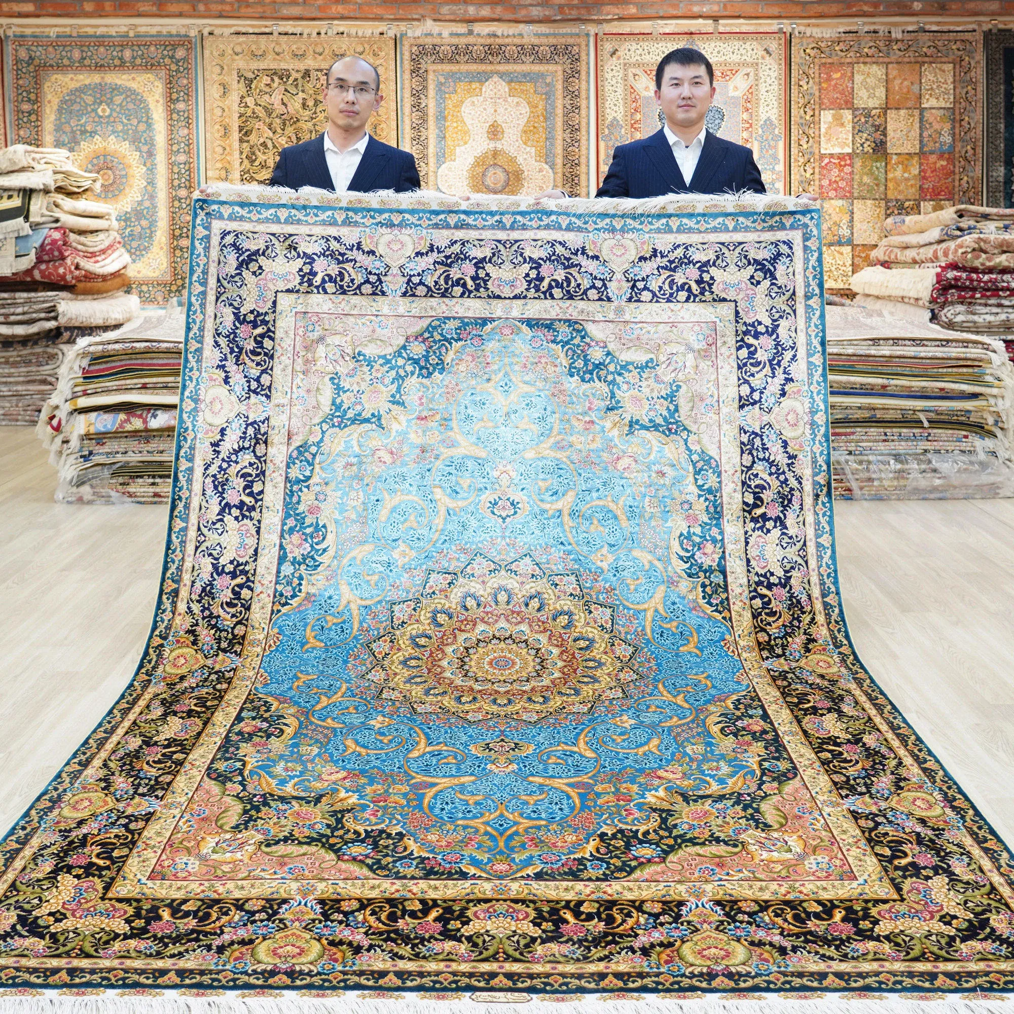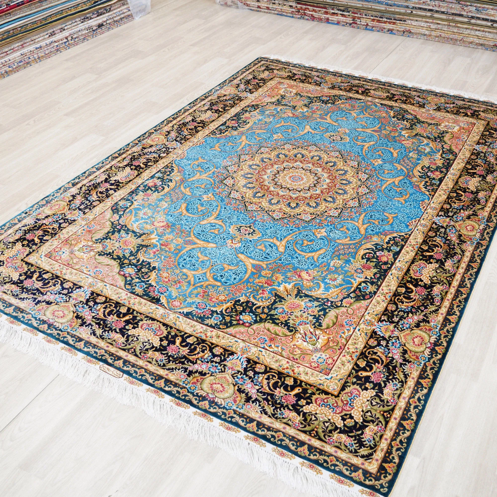 Heavenly Artisan Handcrafted Persian Carpet in Sky Blue - Exquisite Silk Area Rug for Villas, 180x270cm, Perfect for European and American Homes