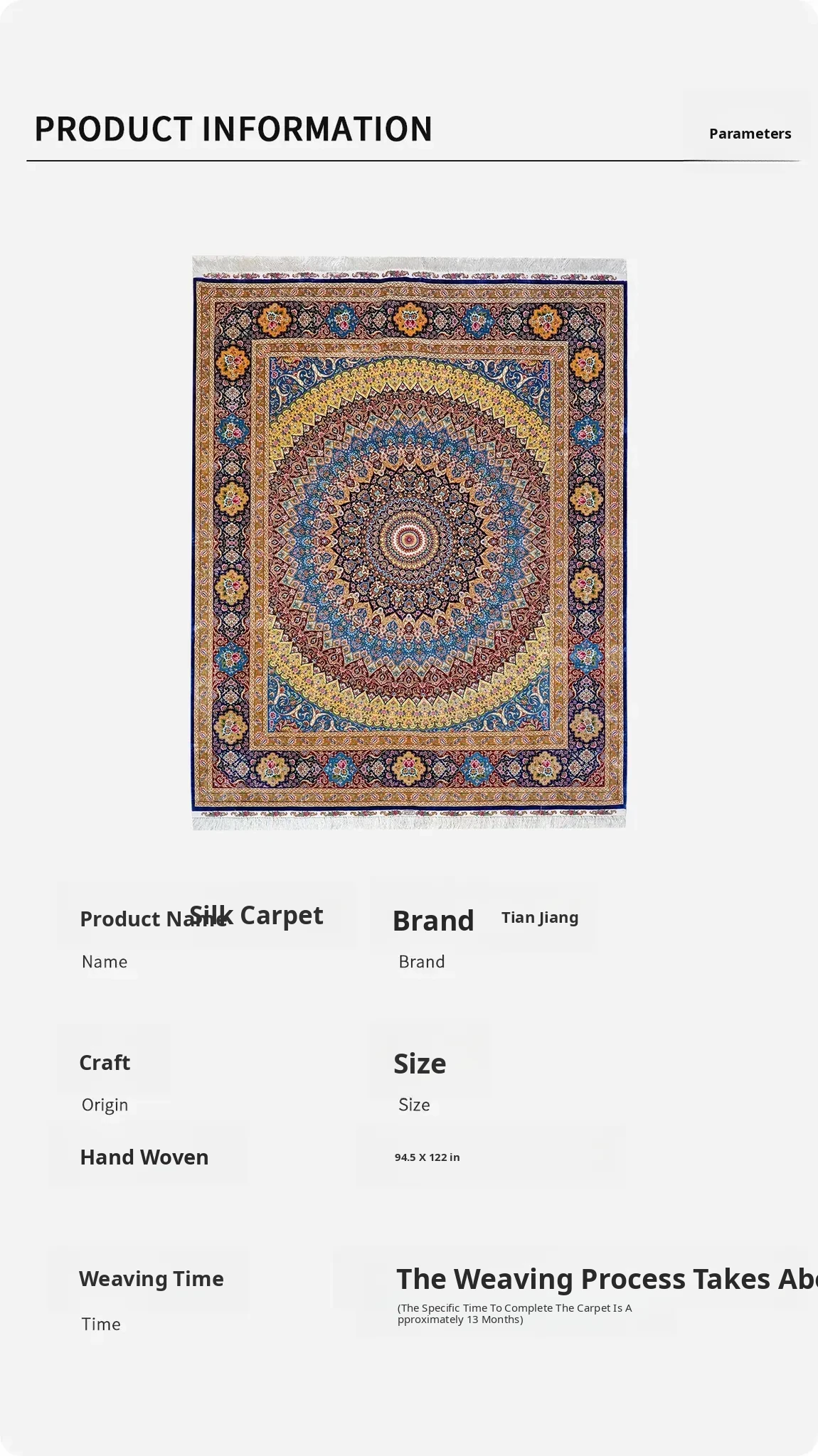Heavenly Artisan Handcrafted Silk Carpet - Classic Persian Design for Villa Living Room, Bedroom, or Study - Luxurious 240x310cm Area Rug