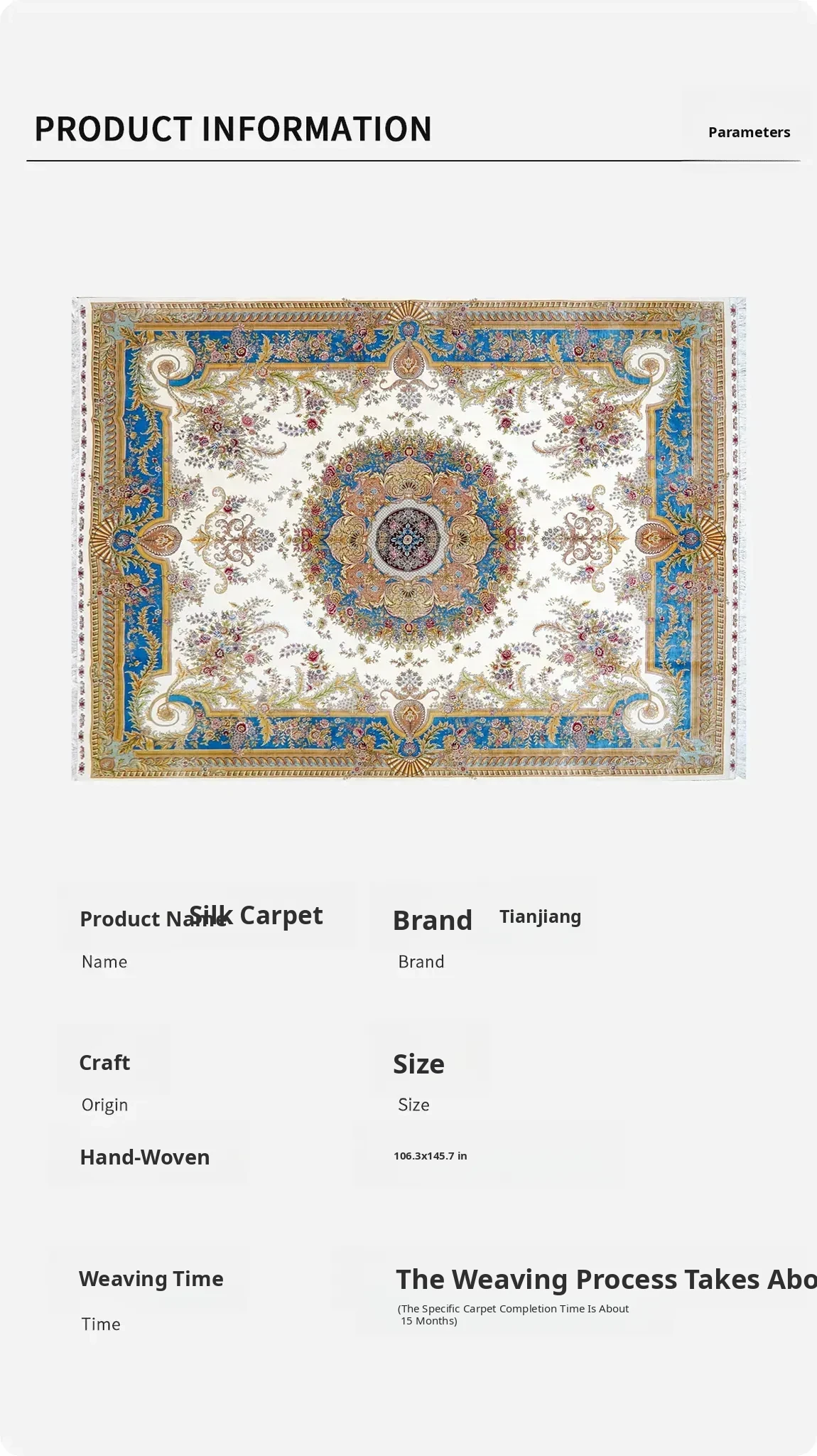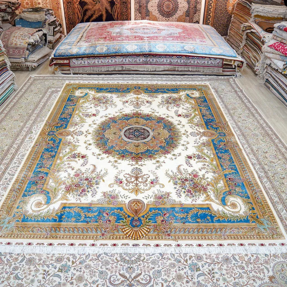Heavenly Artisan Handcrafted Silk Carpet for Living Room and Bedroom - French Style Luxury Silk Rug for Villa, Size 270x370cm