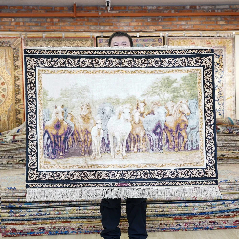 Heavenly Artisan Handcrafted Silk Carpet - Luxury Persian Area Rug for Villas, Perfect for Living Rooms and Bedrooms - Size: 90x122cm