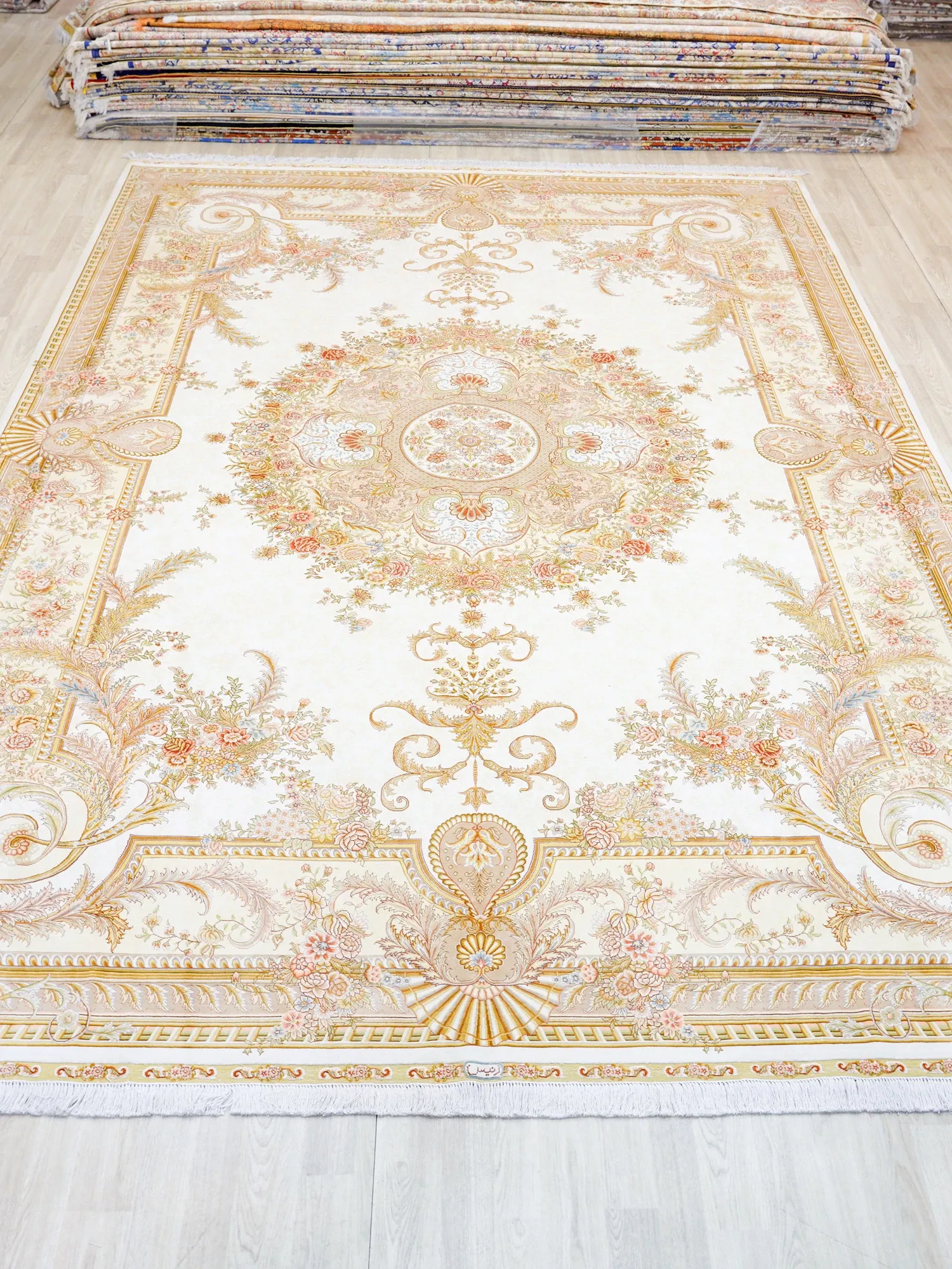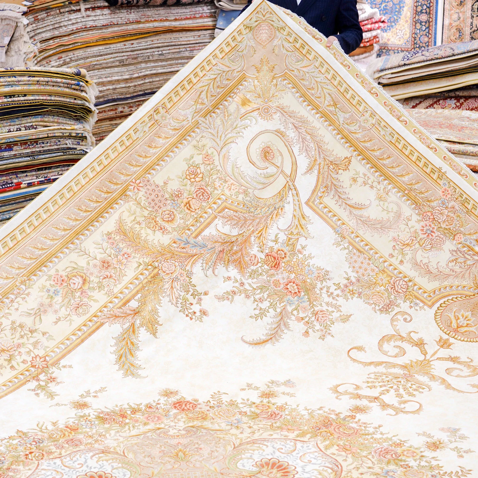 Heavenly Artisan Handcrafted Silk Carpet - Turkish Handwoven Luxury Rug for Villas, Size: 310x430cm - Elevate Your Space with Exquisite Craftsmanship!