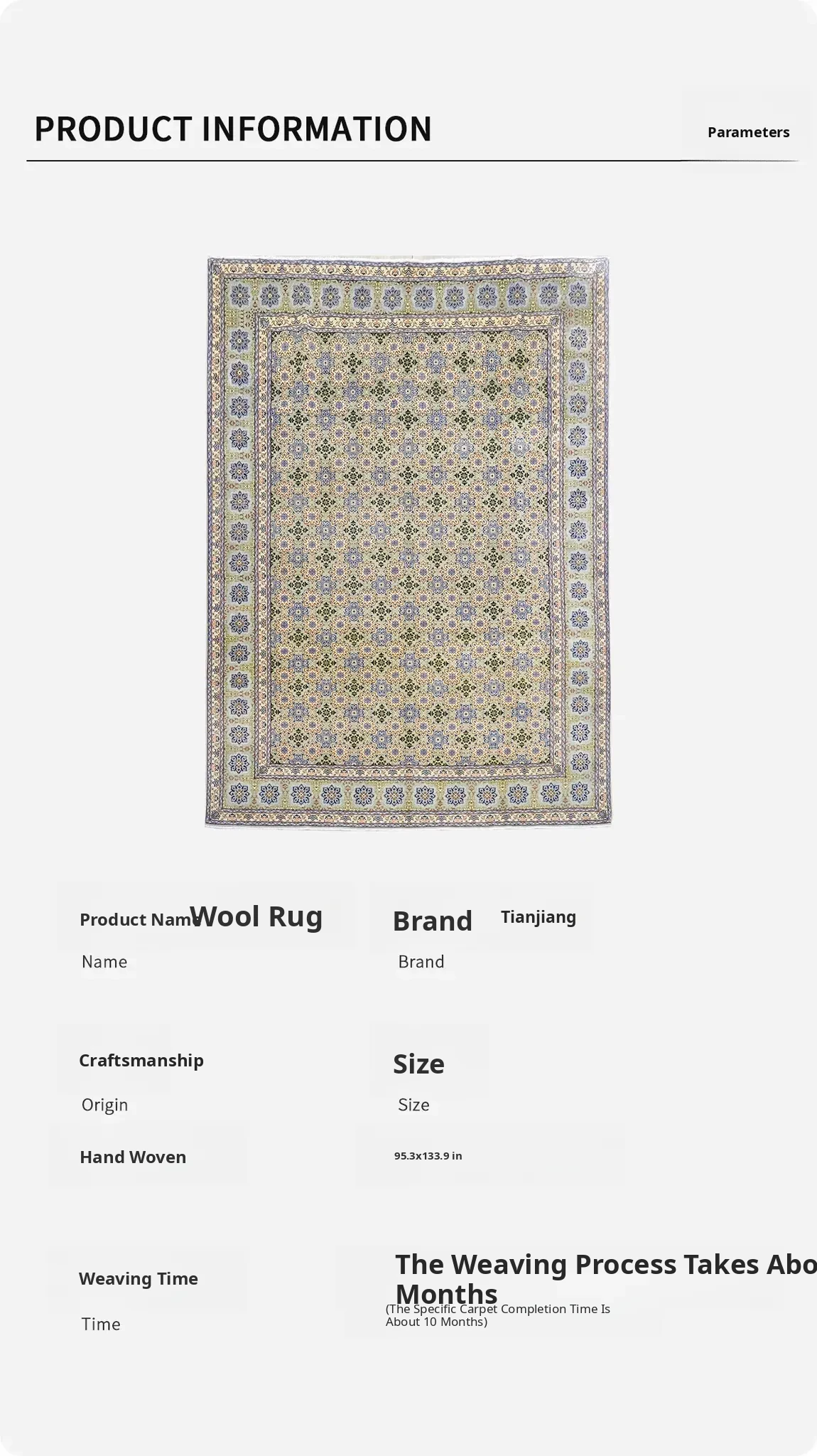 Heavenly Artisan Handcrafted Wool Carpet - Formaldehyde-Free, Stain-Resistant Persian Elegance for Living Room and Bedroom, 242x340cm