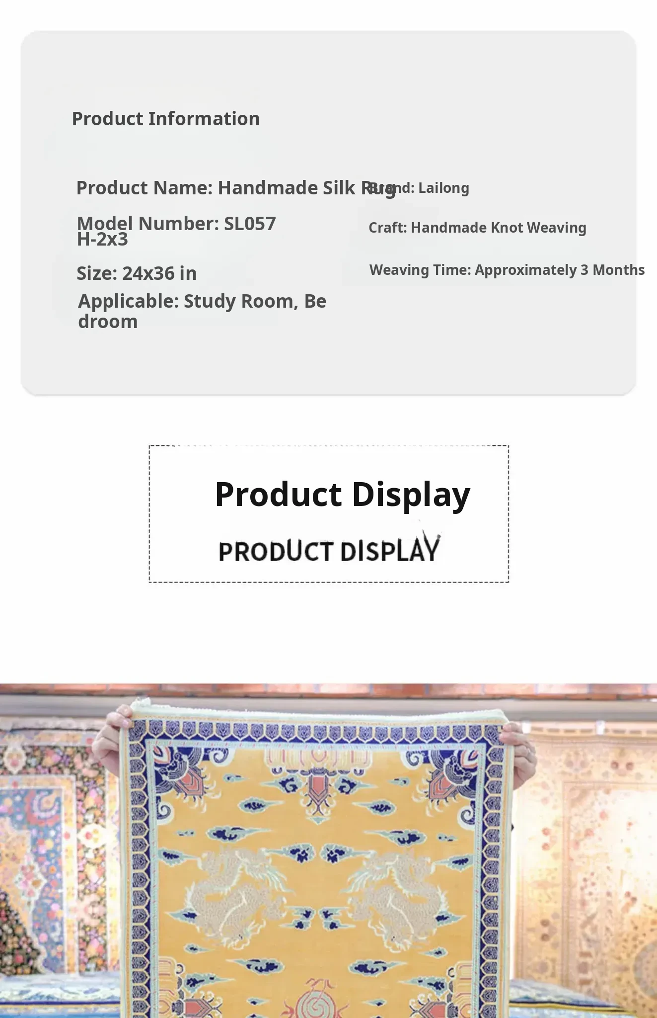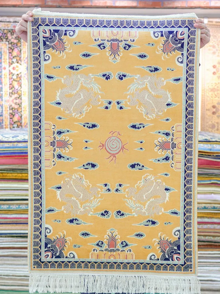 Heavenly Artisan Hand-Knotted Silk Carpet 60x90cm – Luxurious Chinese Style Area Rug for Your Study or Living Room