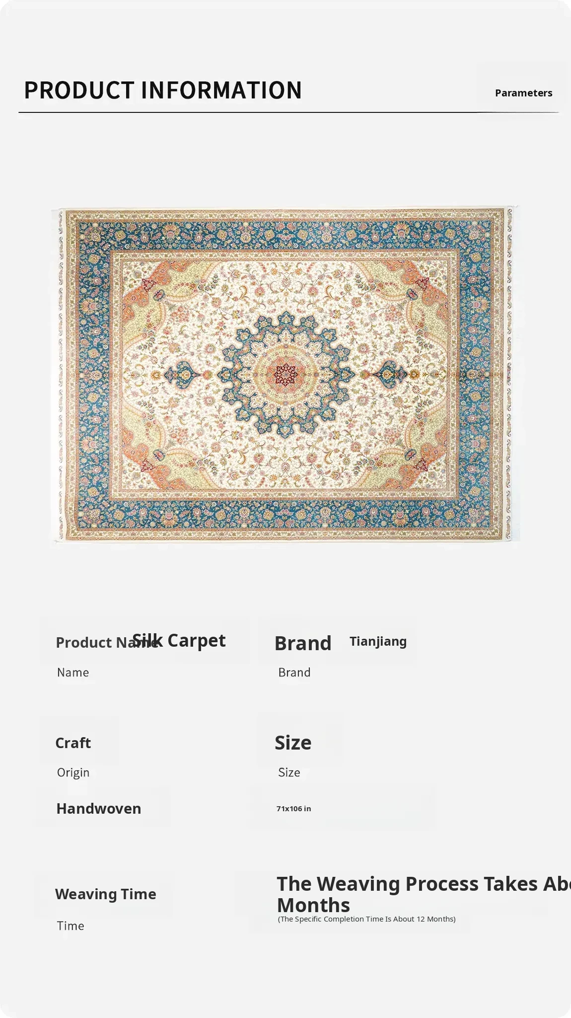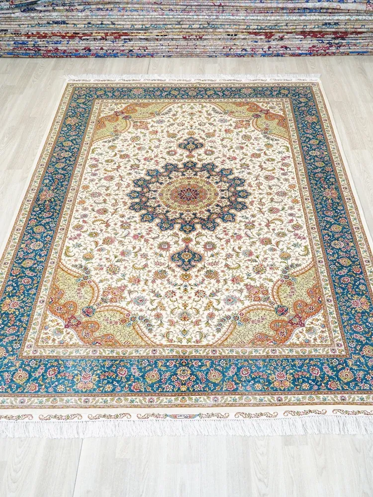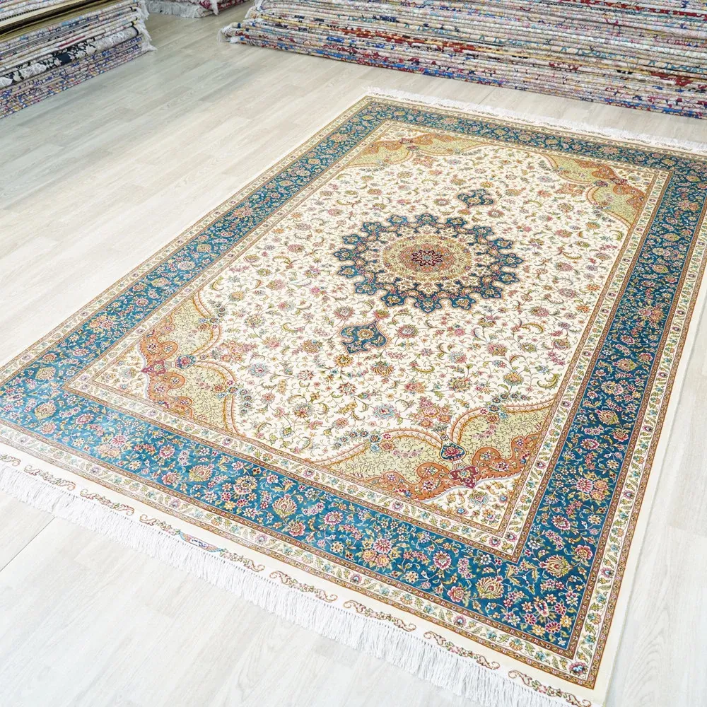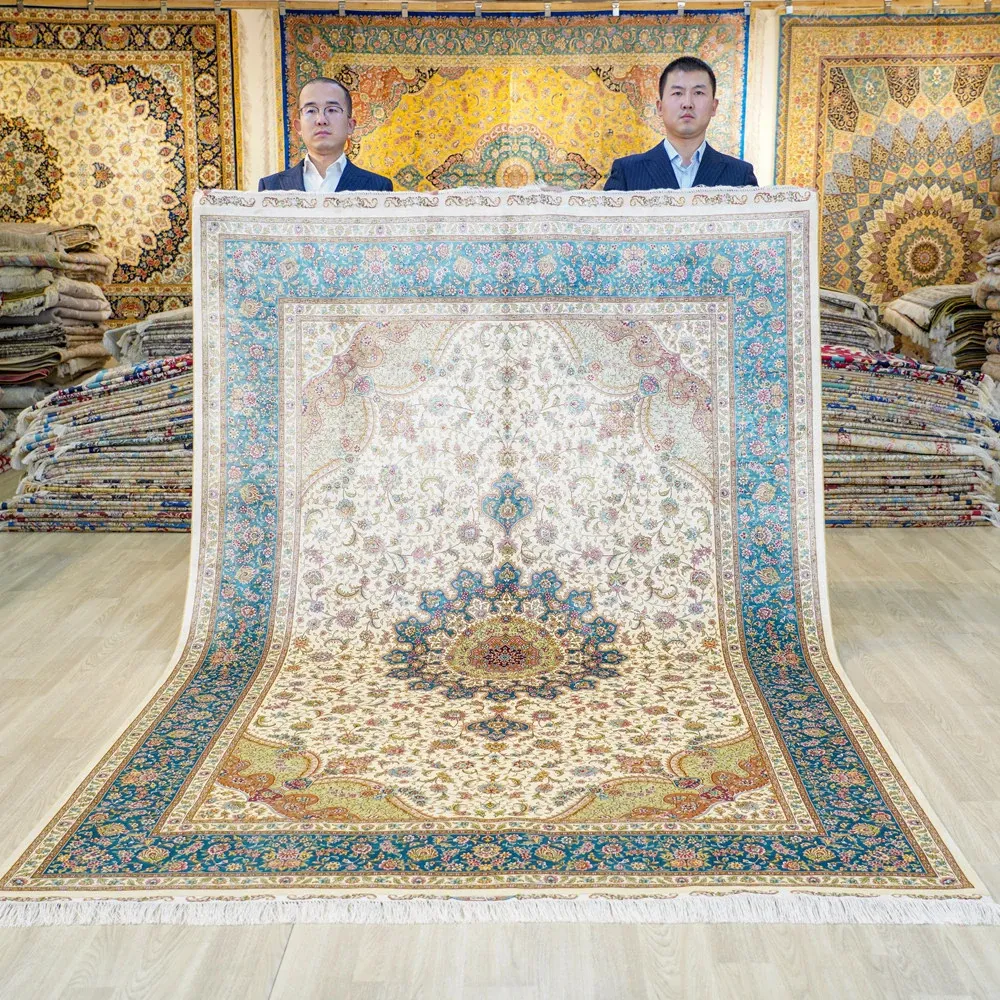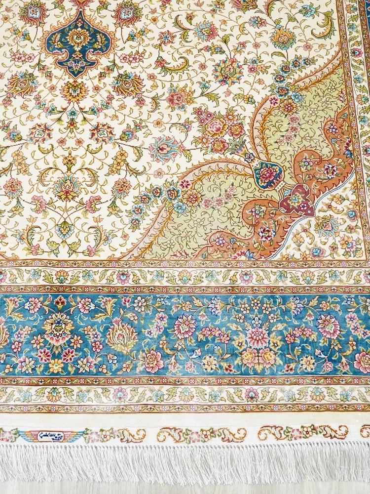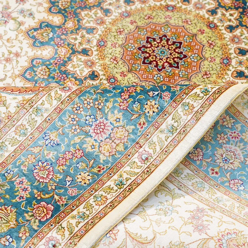 Heavenly Artisan Handmade Silk Area Rug - American Country Style Handwoven Carpet, Imported Nordic Design for Bedroom, 180x270cm