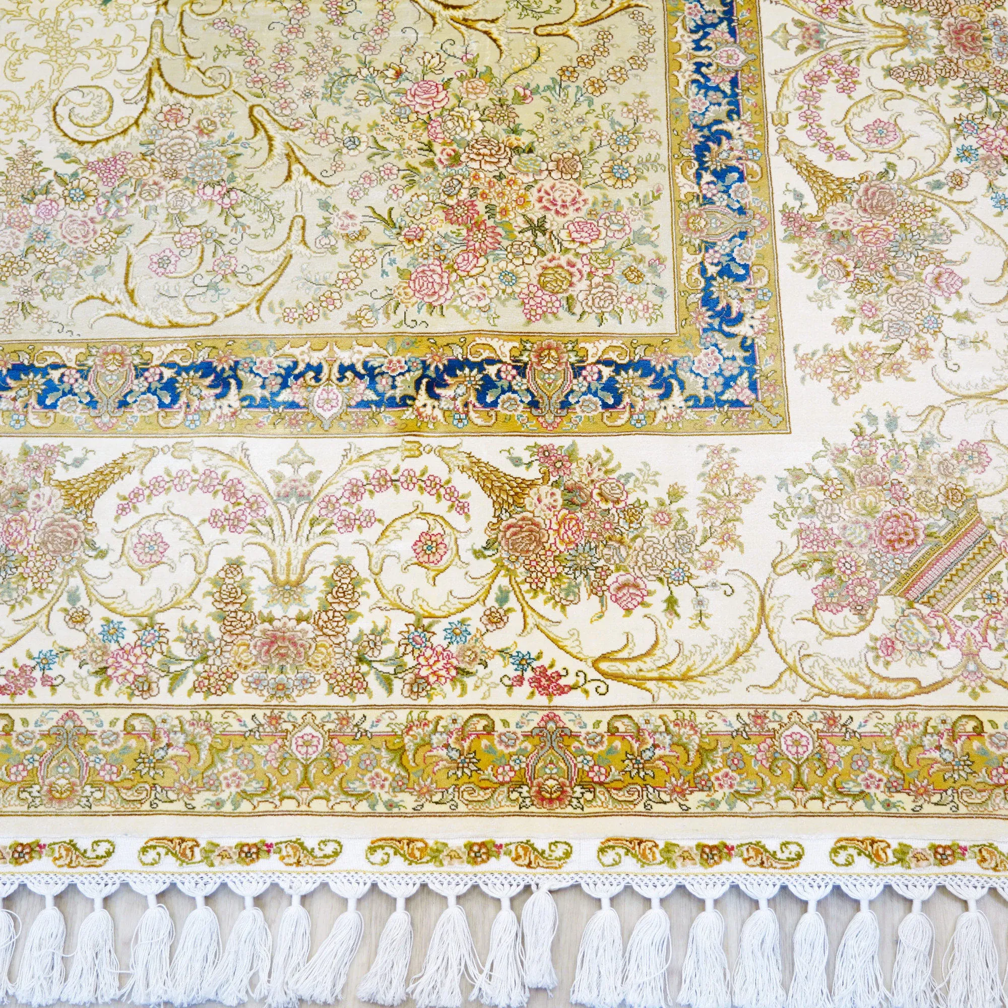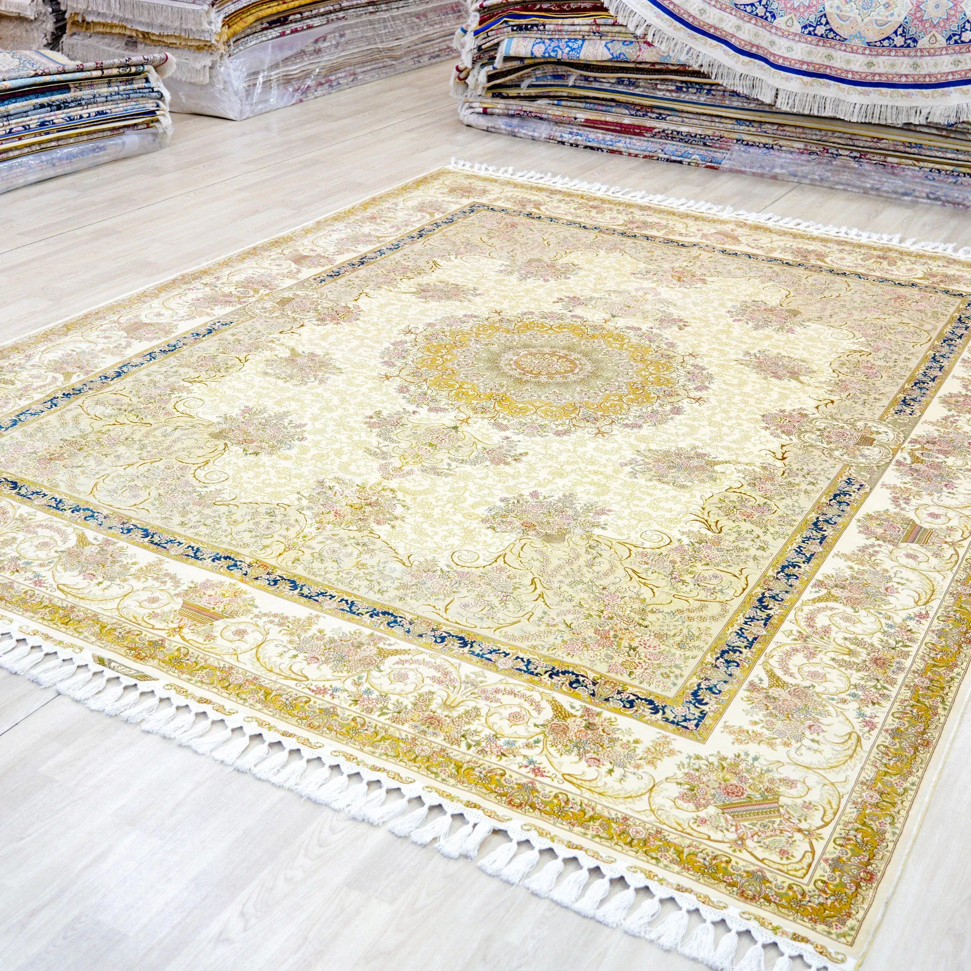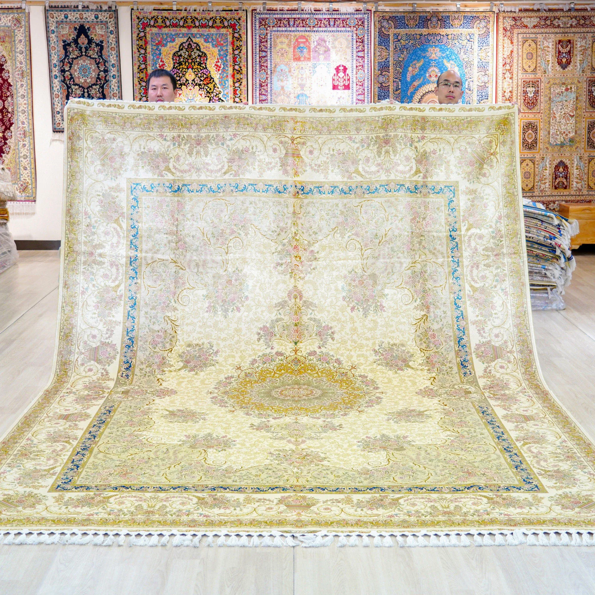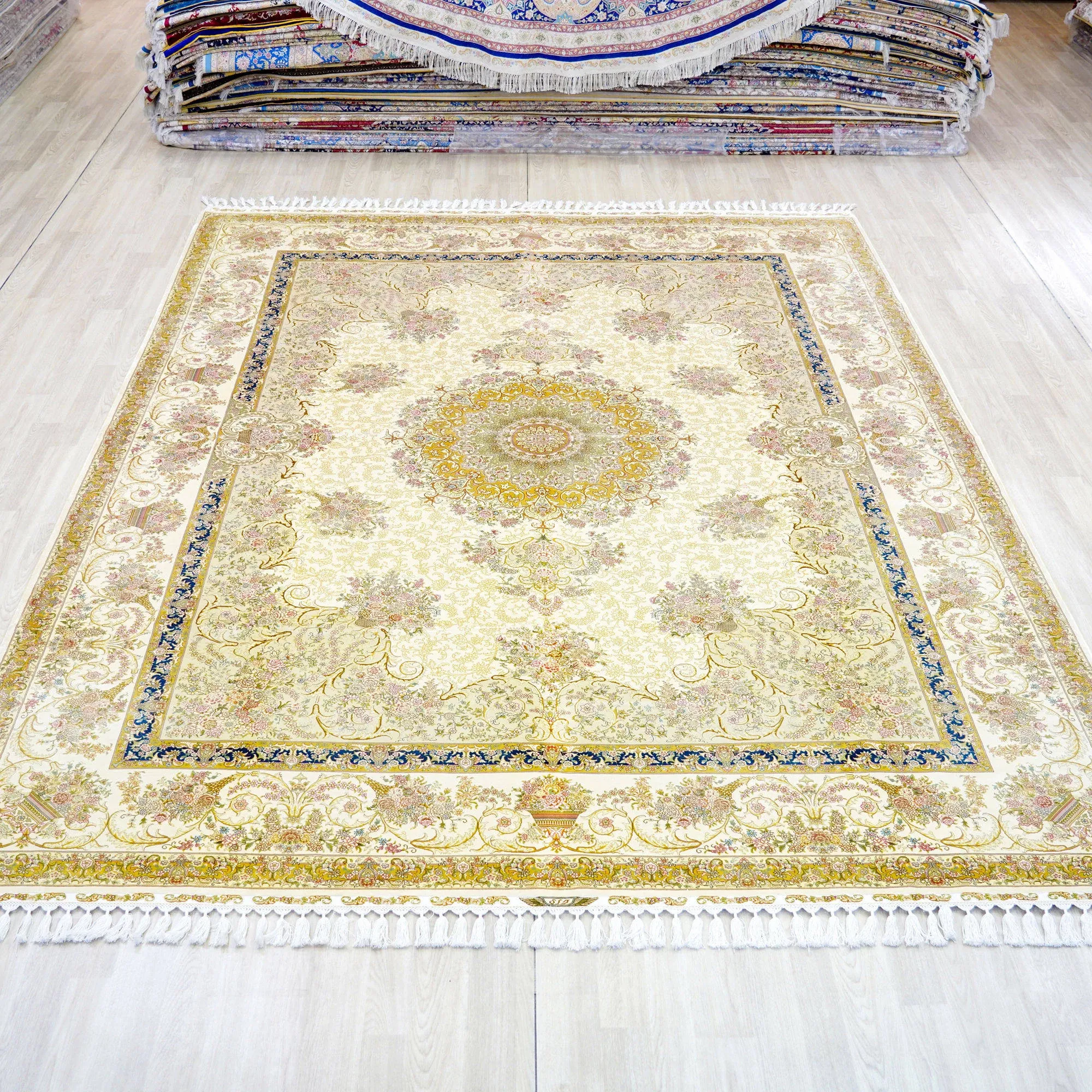 Heavenly Artisan Handmade Silk Carpet - Beige European Style Luxury Area Rug for Living Room and Bedroom, Size 270x370cm
