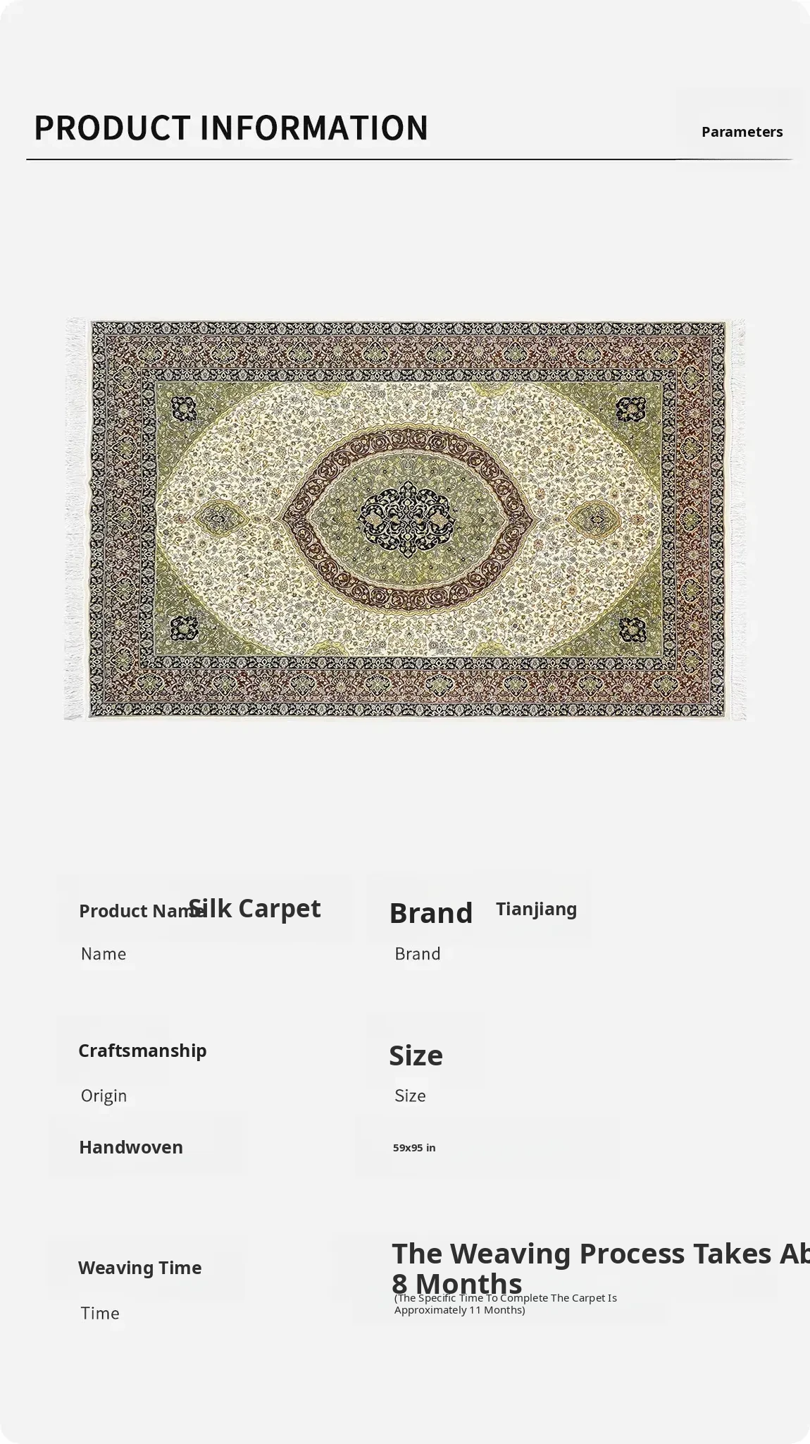 Heavenly Artisan Handmade Silk Carpet - Classic Persian Design Area Rug for Villa Living Room & Bedroom, Size 150x240cm - Elevate Your Space with Luxurious Elegance