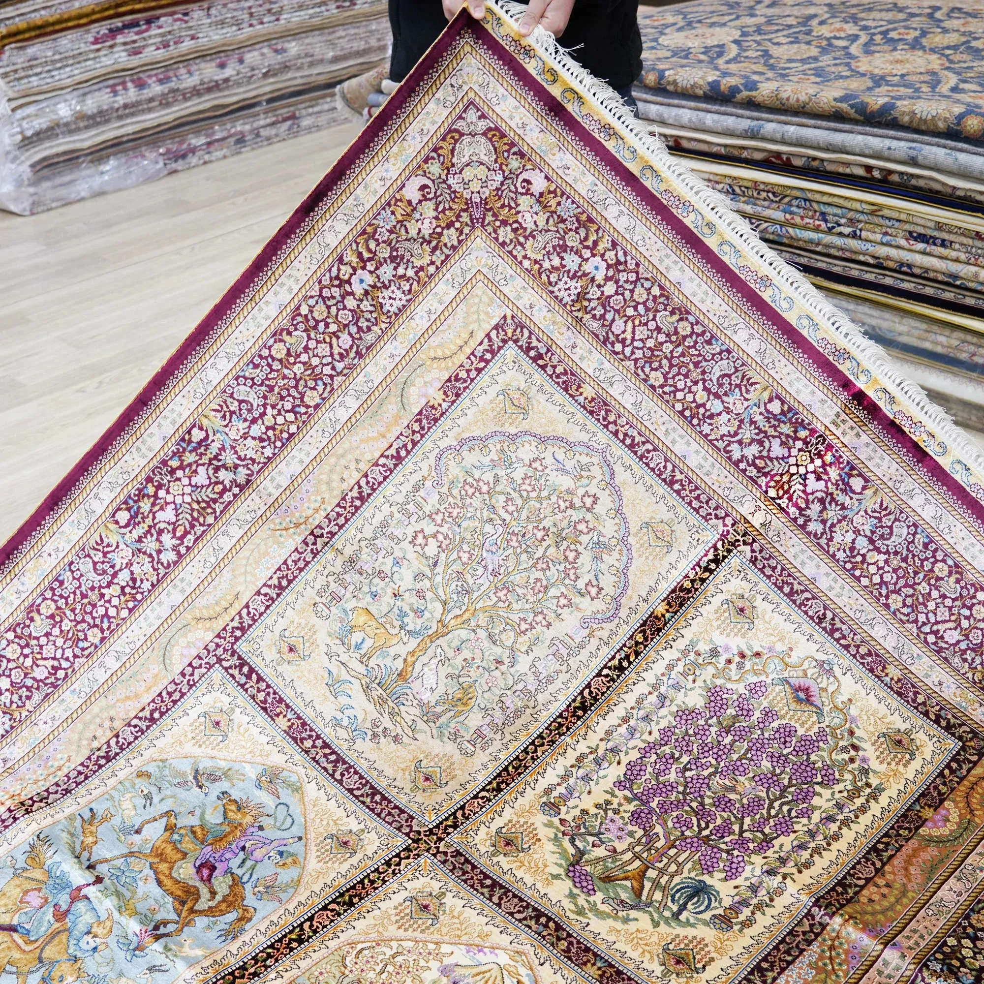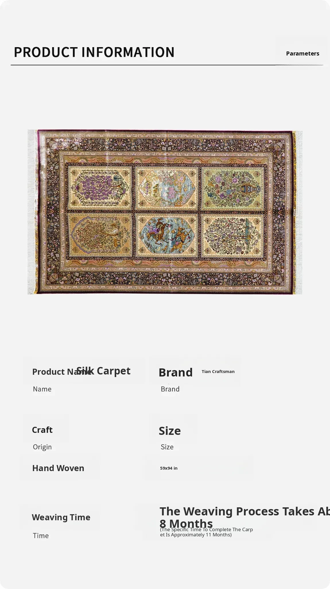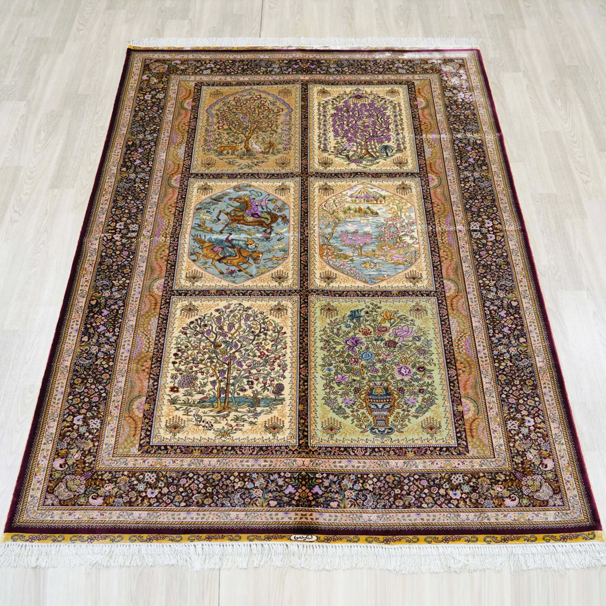 Heavenly Artisan Handmade Silk Carpet - Garden Design Area Rug for Villa Living Room & Bedroom, 150x240cm - Elevate Your Space with Luxurious Elegance!