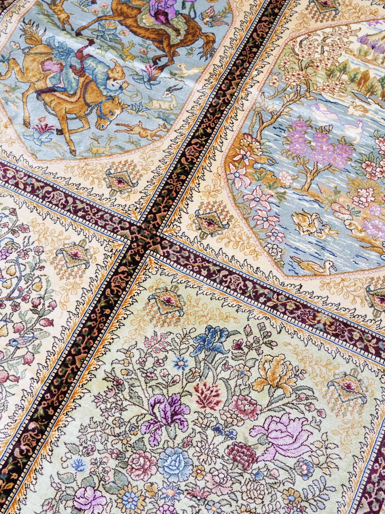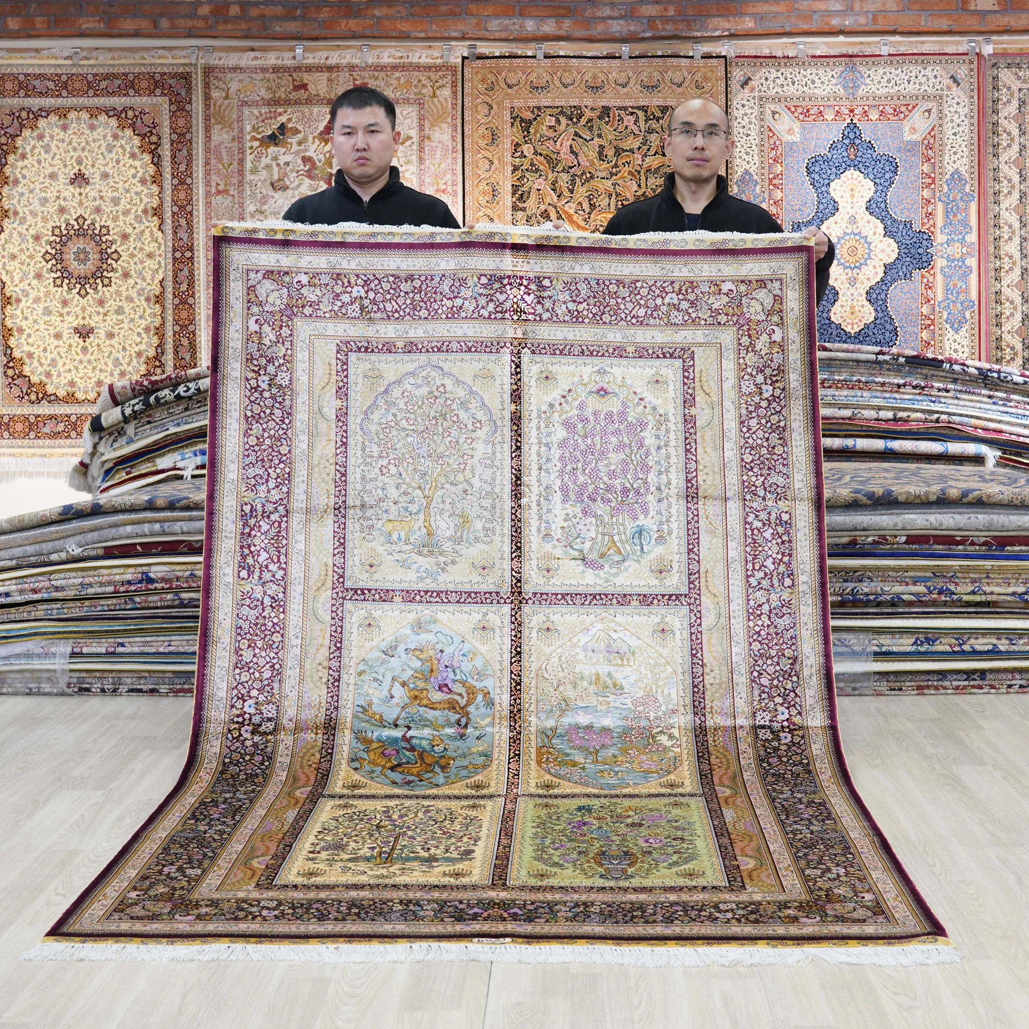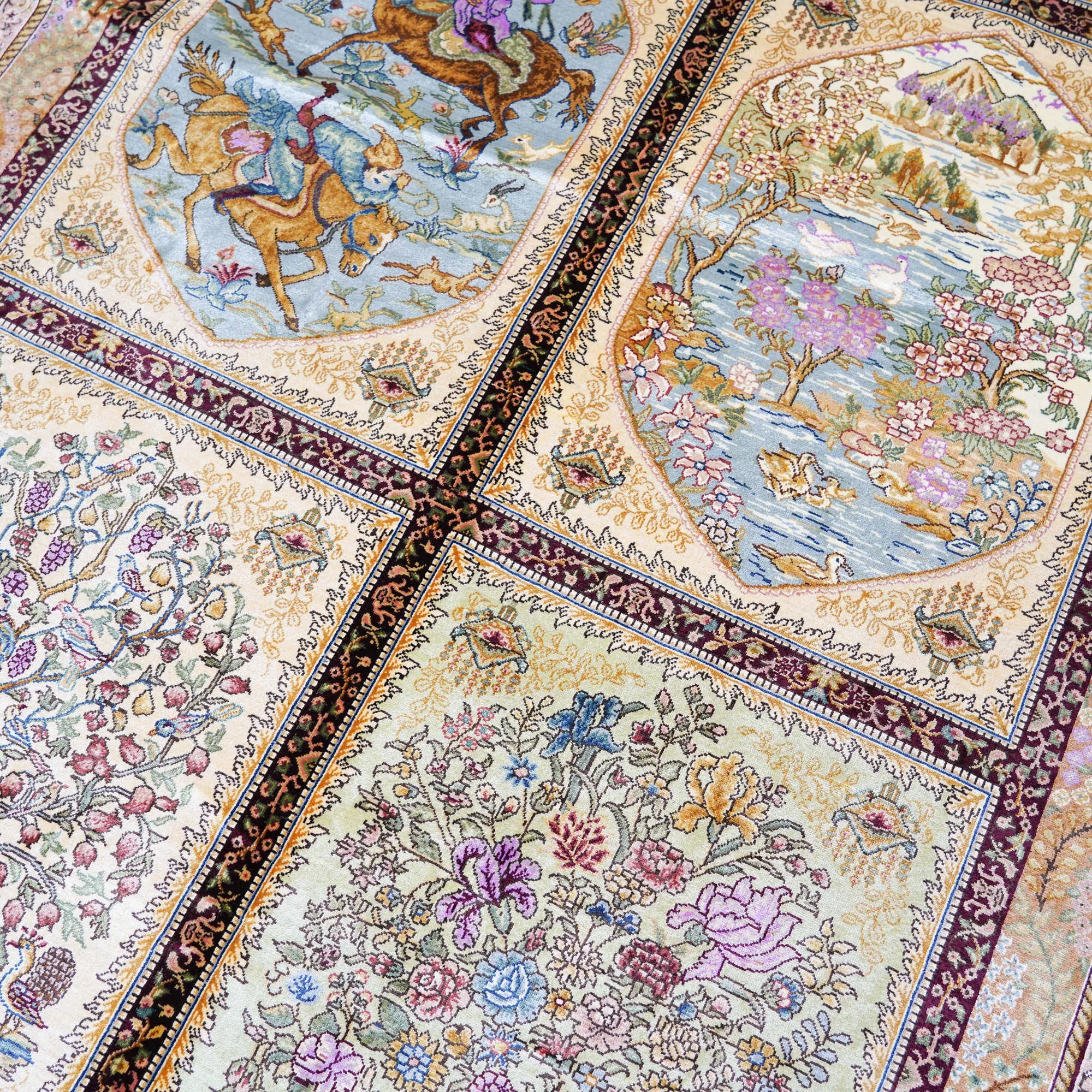 Heavenly Artisan Handmade Silk Carpet - Garden Design Area Rug for Villa Living Room & Bedroom, 150x240cm - Elevate Your Space with Luxurious Elegance!