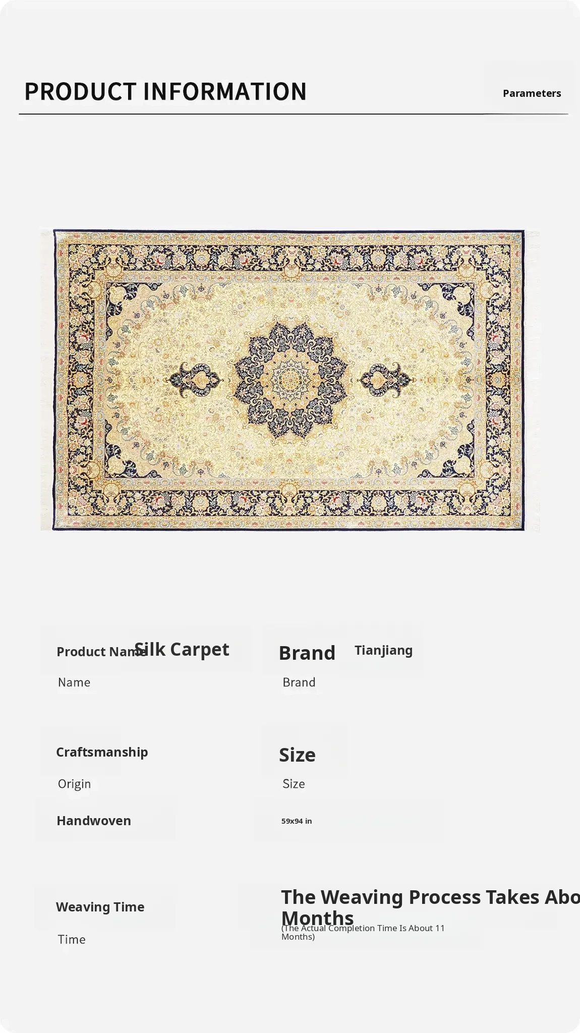 Heavenly Artisan Handmade Silk Carpet - Luxurious American Villa Area Rug for Living Room & Bedroom, High-End Home Decor, Size 150x240cm