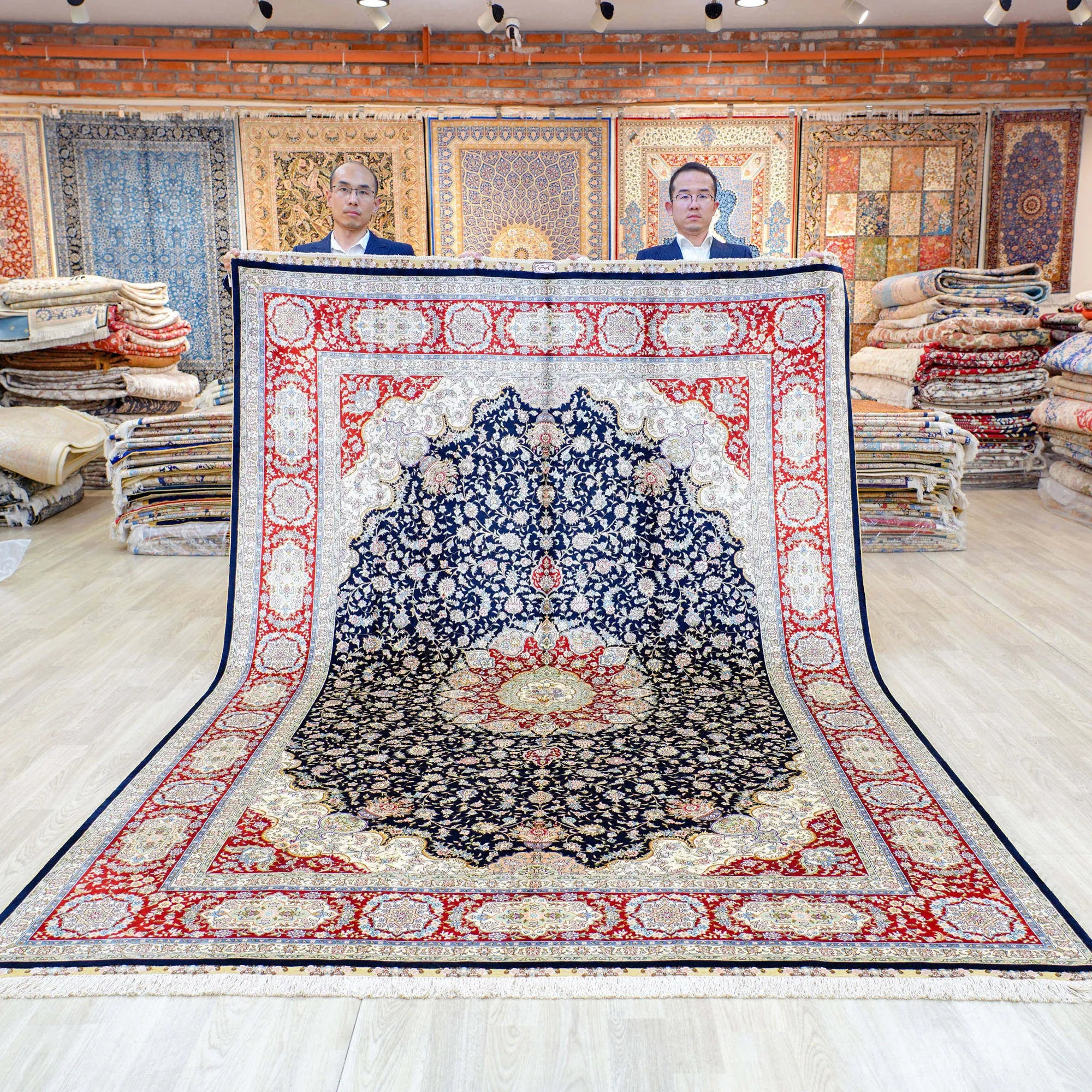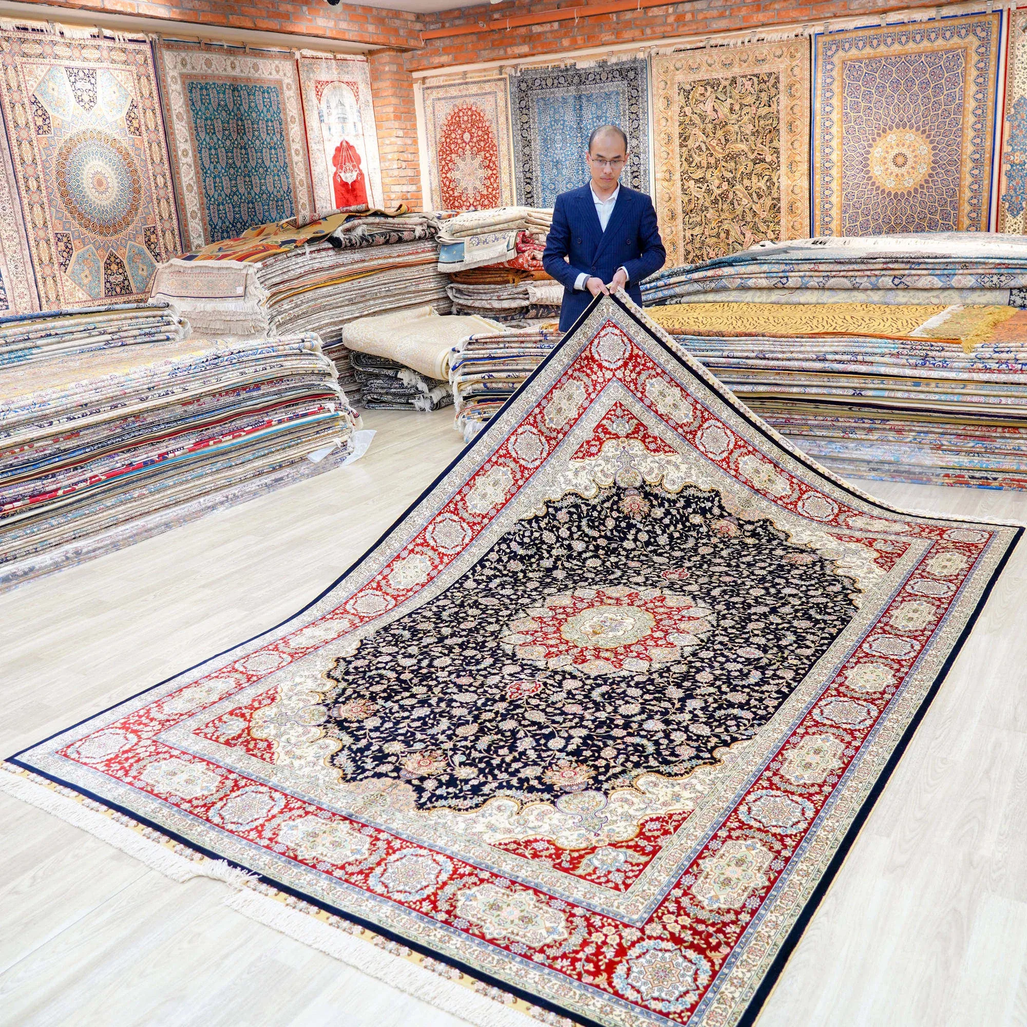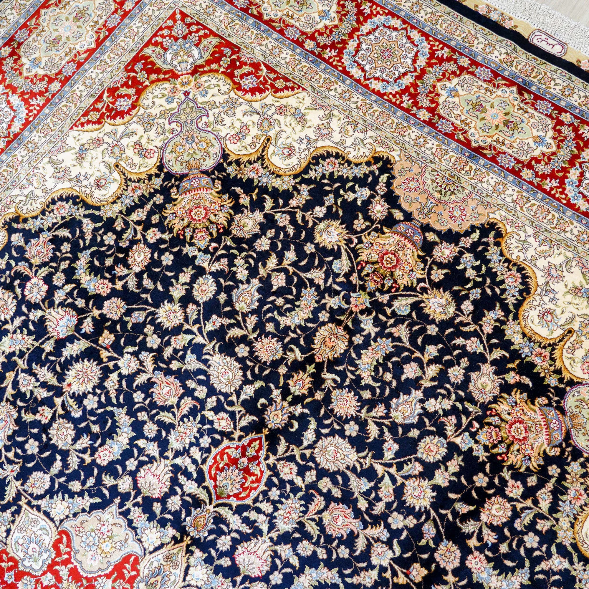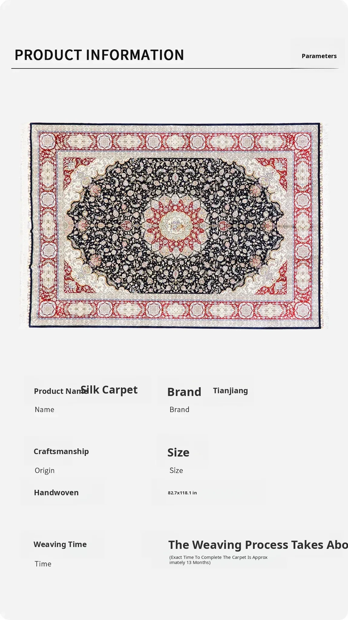 Heavenly Artisan Handmade Silk Carpet - Luxurious Blue Area Rug for Villa Living Room and Bedroom - Perfect for Bedside, 210x300cm