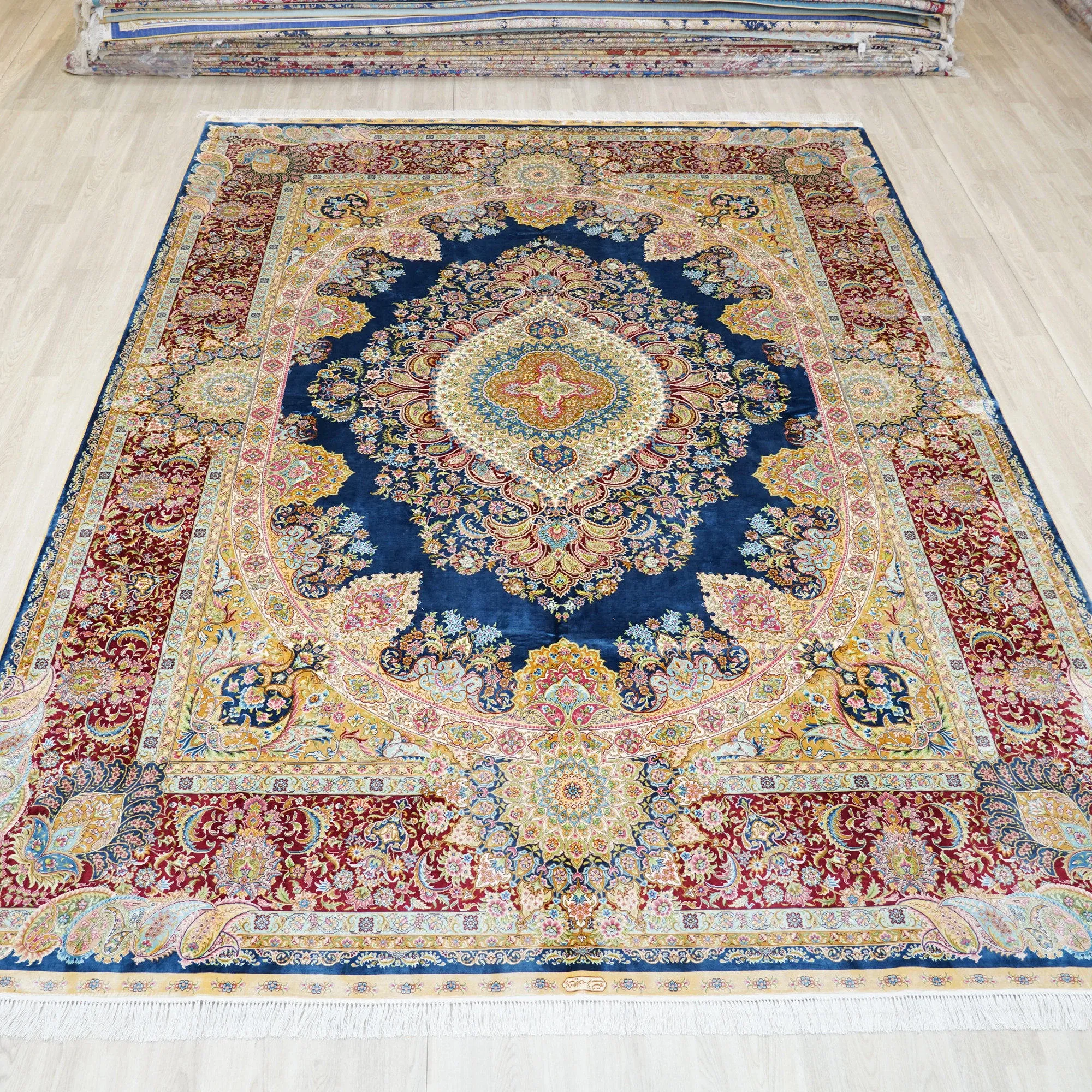 Heavenly Artisan Handmade Silk Carpet - Luxurious Persian Design for Villa Living Room & Bedroom, 270x370cm