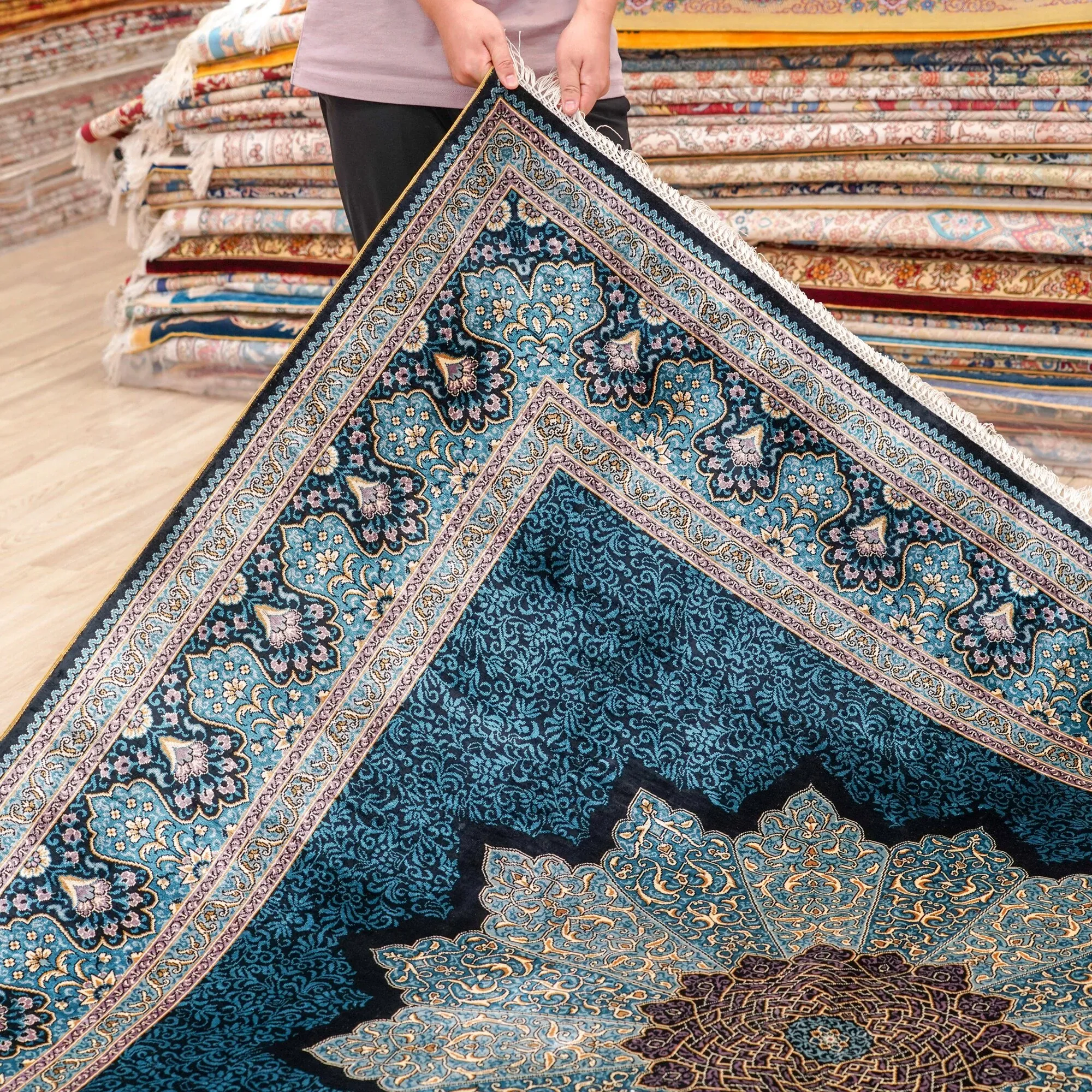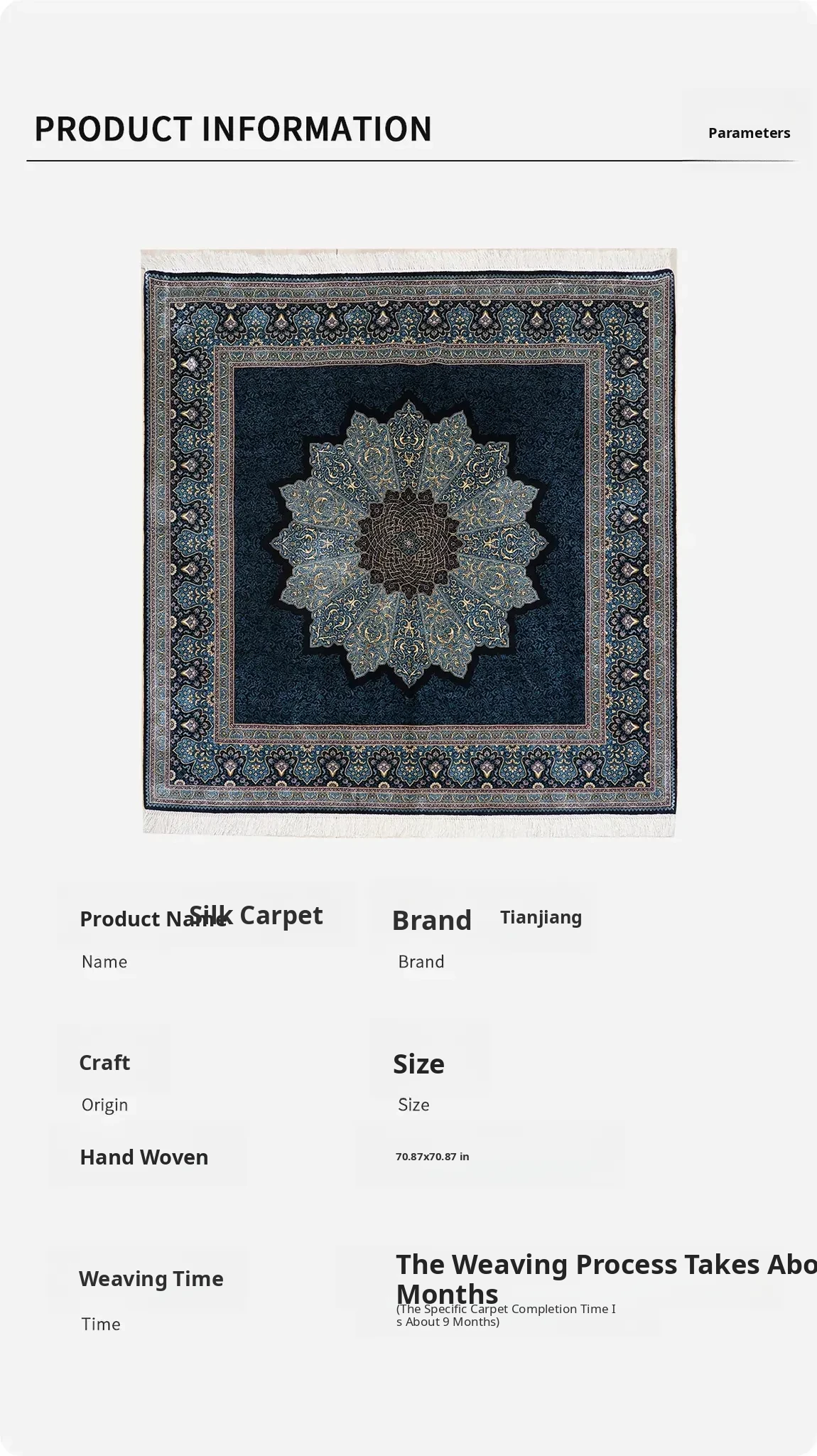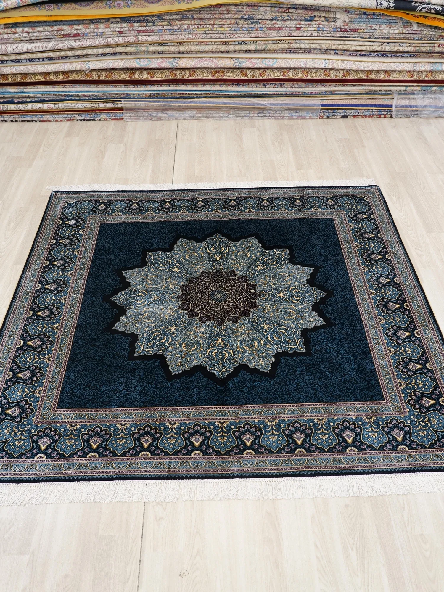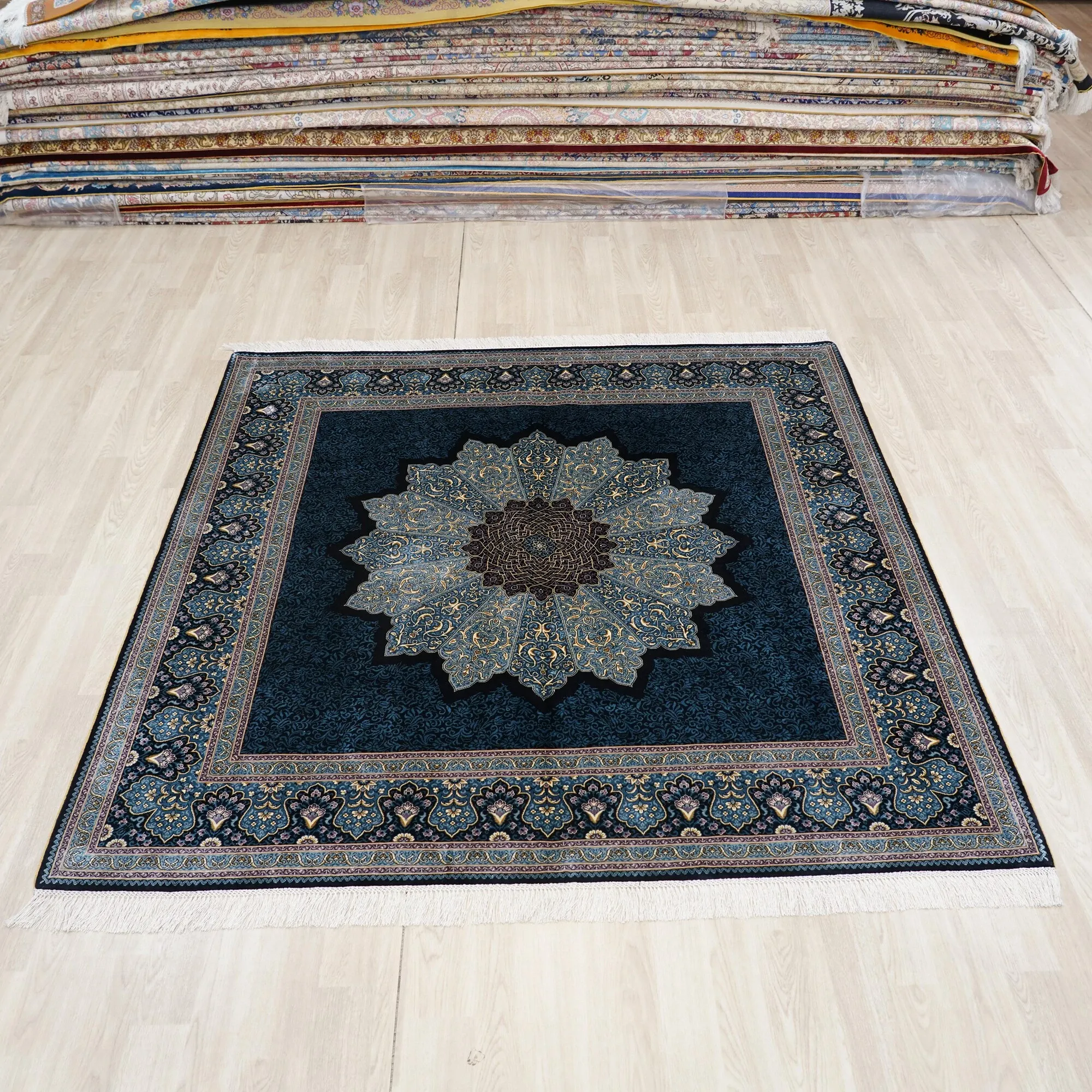 Heavenly Artisan Handmade Silk Carpet - Luxurious Square Area Rug for Bedroom & Study, Adhesive-Free, 180x180cm