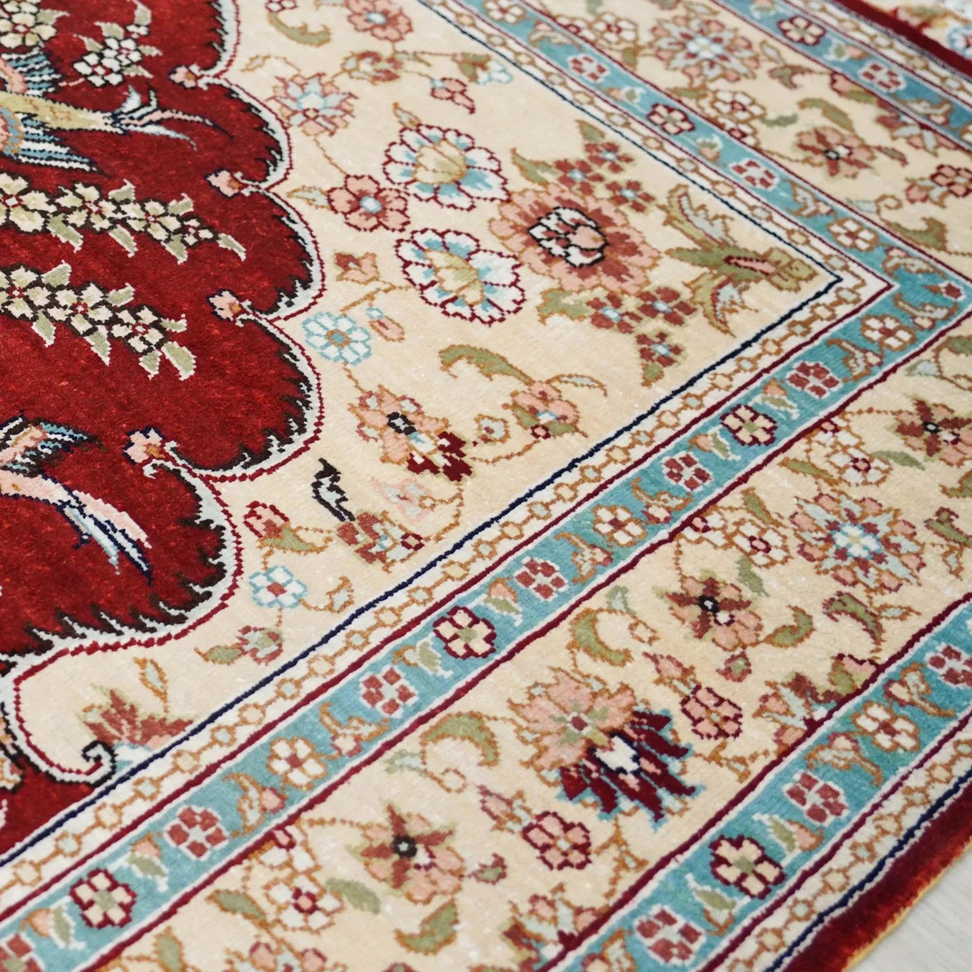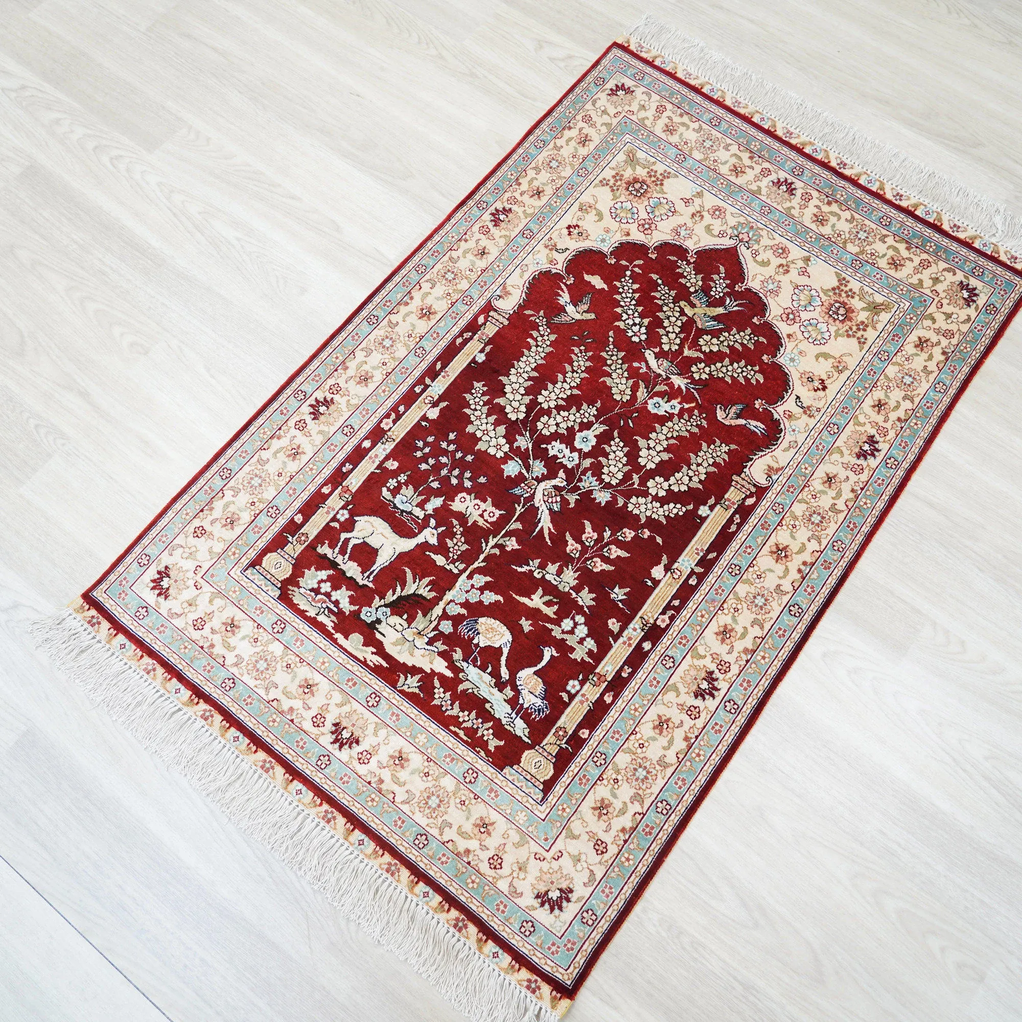 Heavenly Artisan Handmade Silk Carpet - Persian Villa Rug, Classic European Design, 76x120cm - Elevate Your Space with Luxurious Elegance!