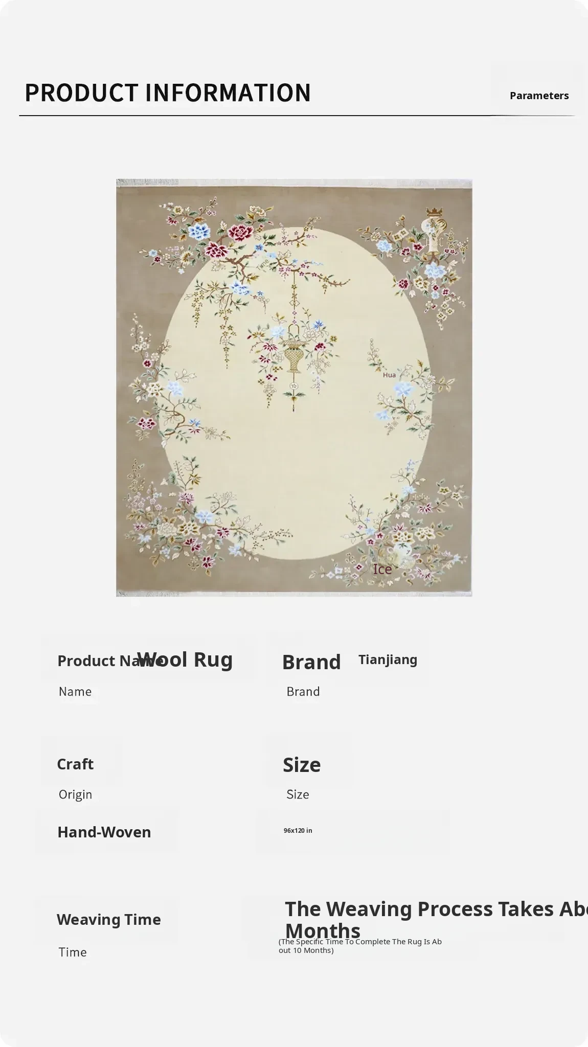 Heavenly Artisan Handmade Wool Carpet - Luxurious Eco-Friendly Chinese Style Area Rug for Villa Living Room and Bedroom, Size 244x305cm