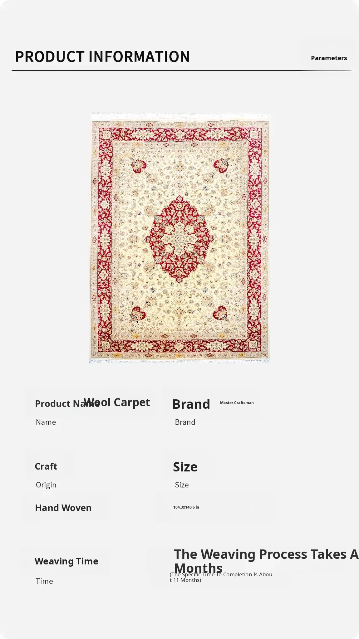 Heavenly Artisan Imported Handmade Wool Carpet - Luxurious Persian Area Rug for Living Room and Bedroom, Perfect for High-End Villas, Size: 265x358cm