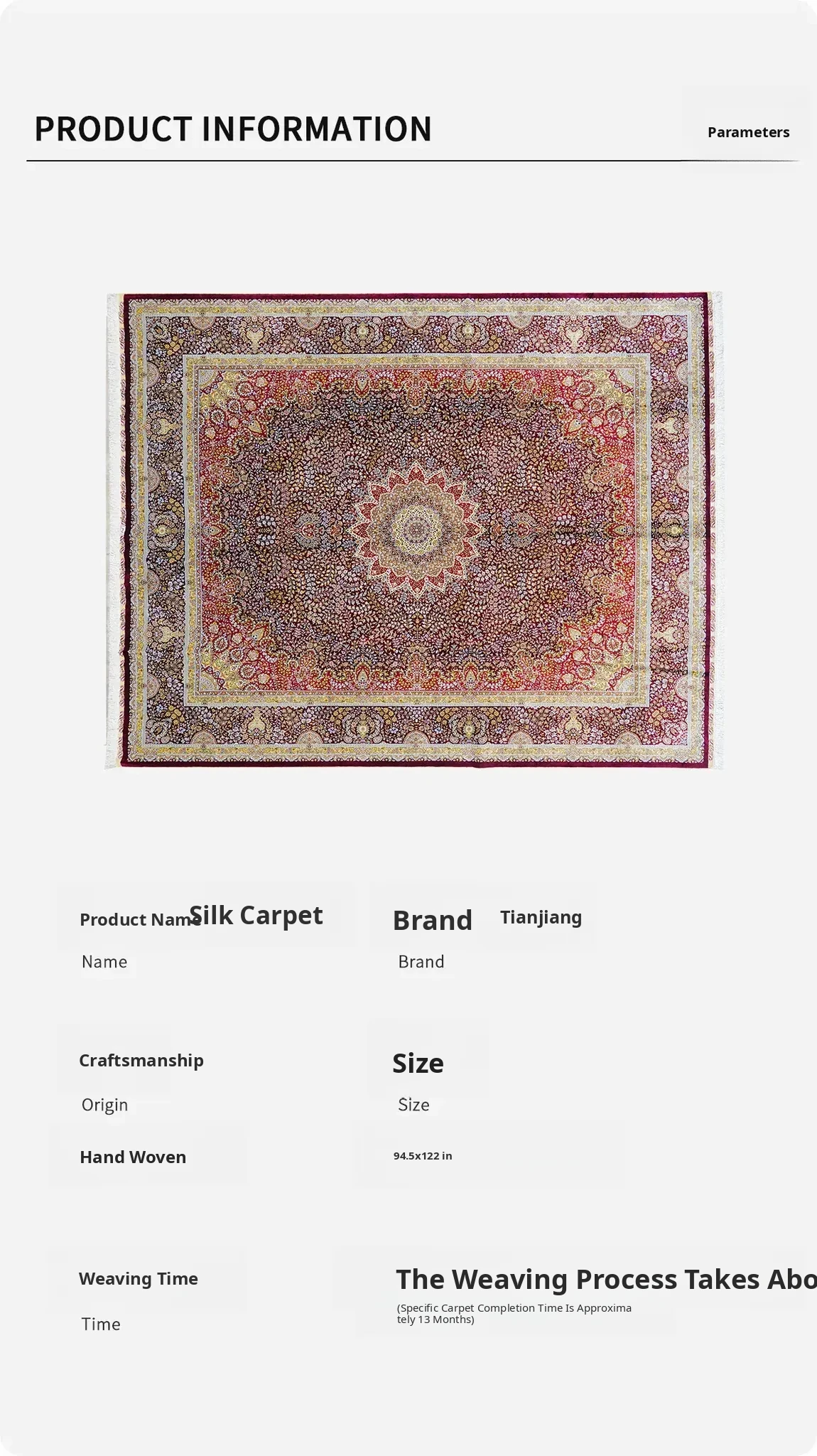 Heavenly Crafts Handcrafted Silk Area Rug - Traditional Art Carpet for Villa Living Room and Bedroom, 240x310cm