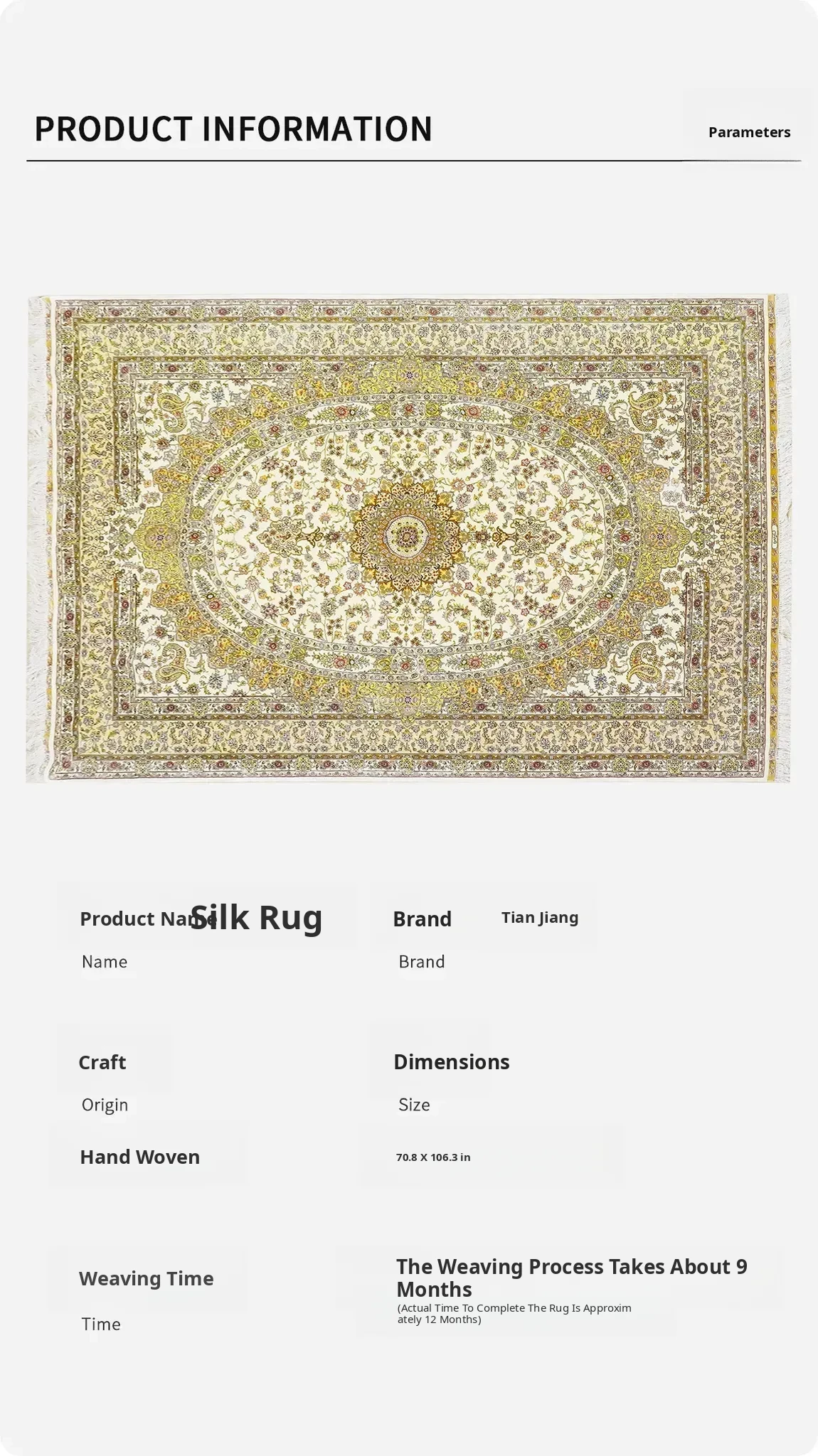 Heavenly Crafts Handmade Silk Persian Carpet - Luxurious Villa Rug for Living Room - Classic Iranian Design - Dimensions: 180x270cm