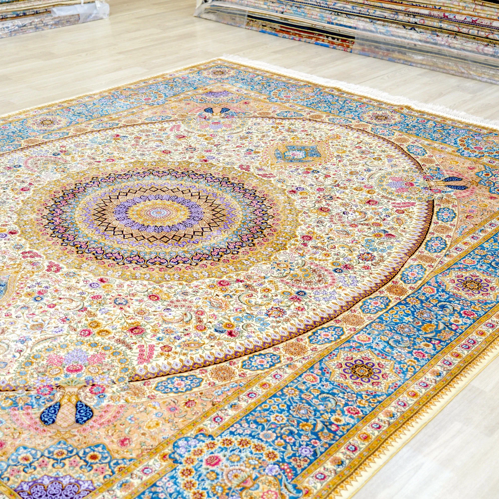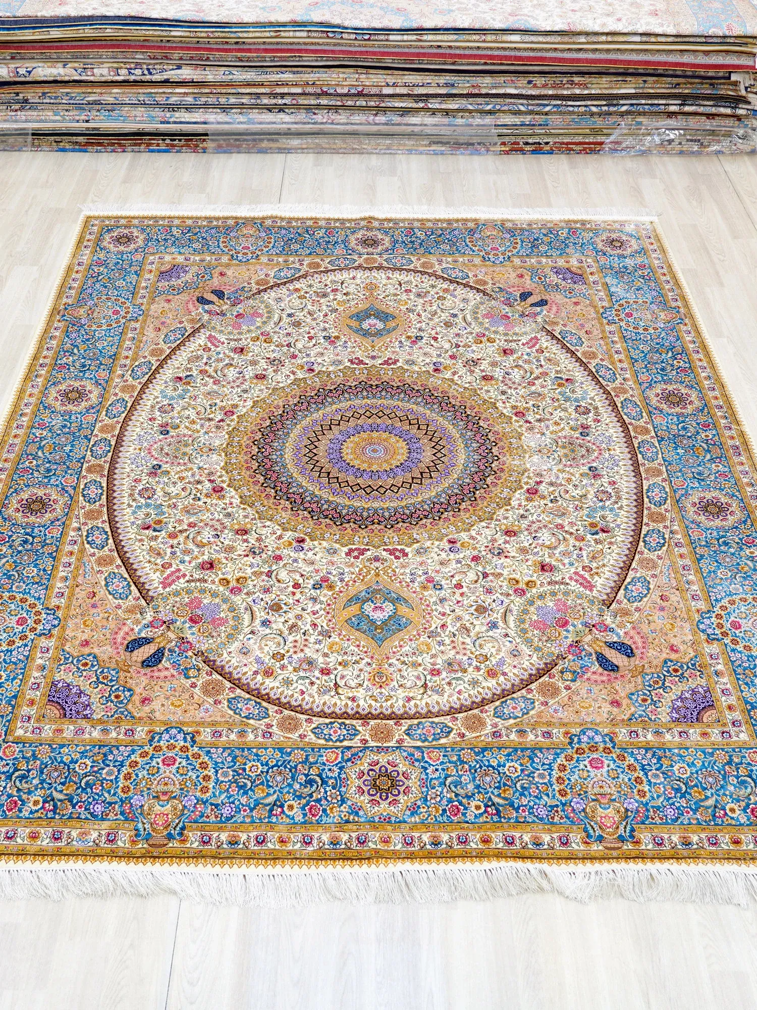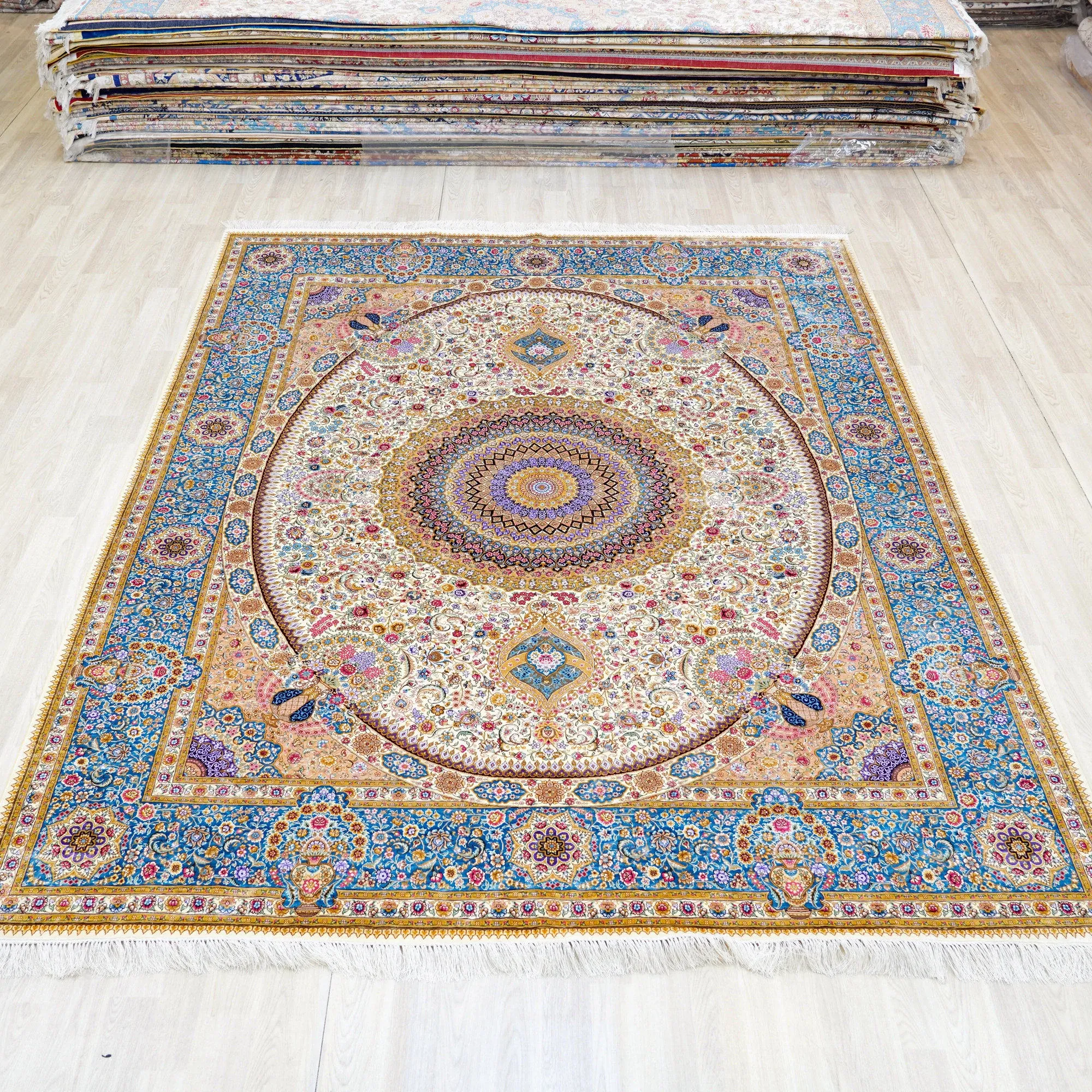 Heavenly Crafts Handwoven Persian Silk Carpet for Villa - Luxury Area Rug for Living Room, Bedroom, and Study, Size 244x305cm