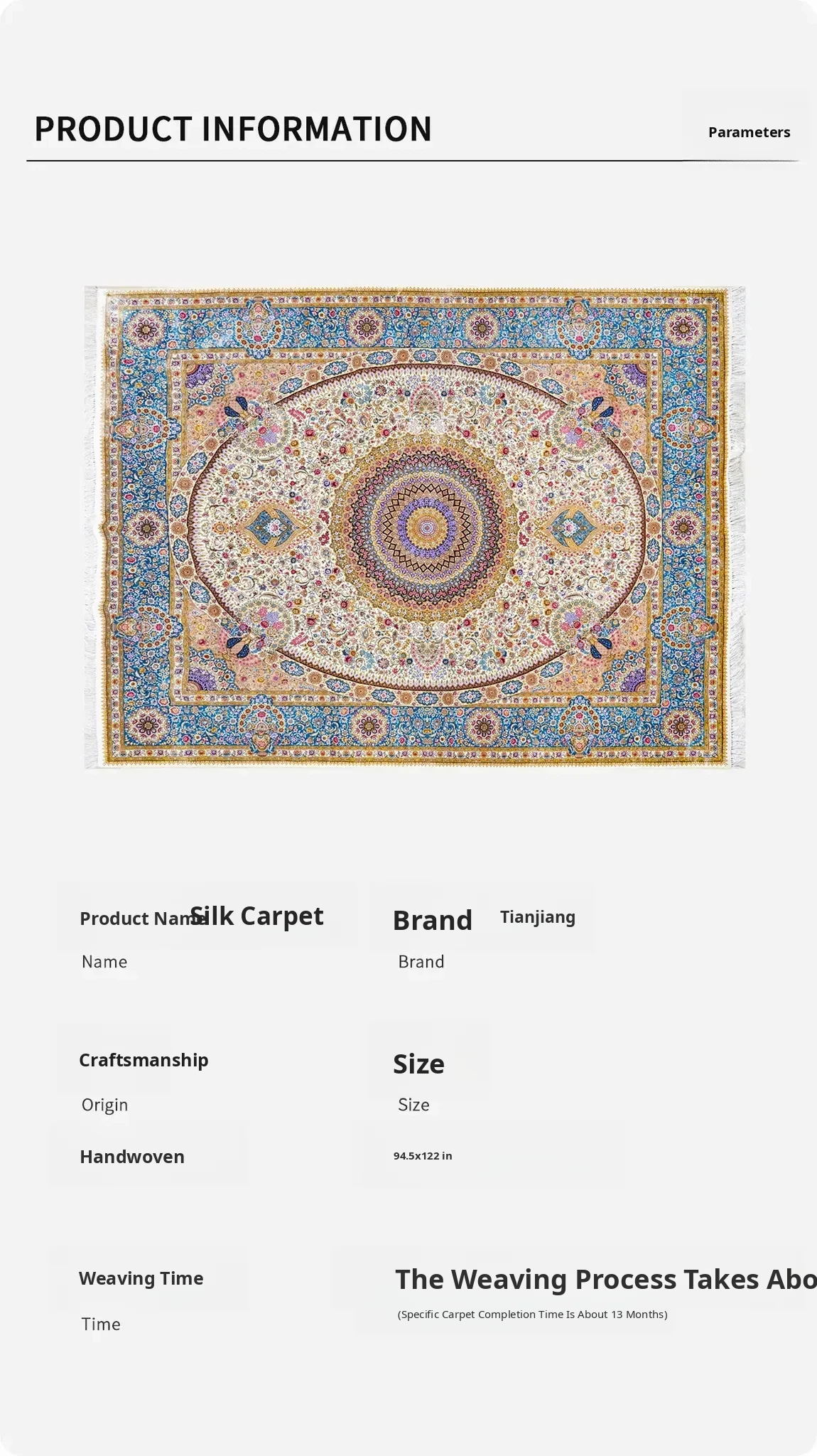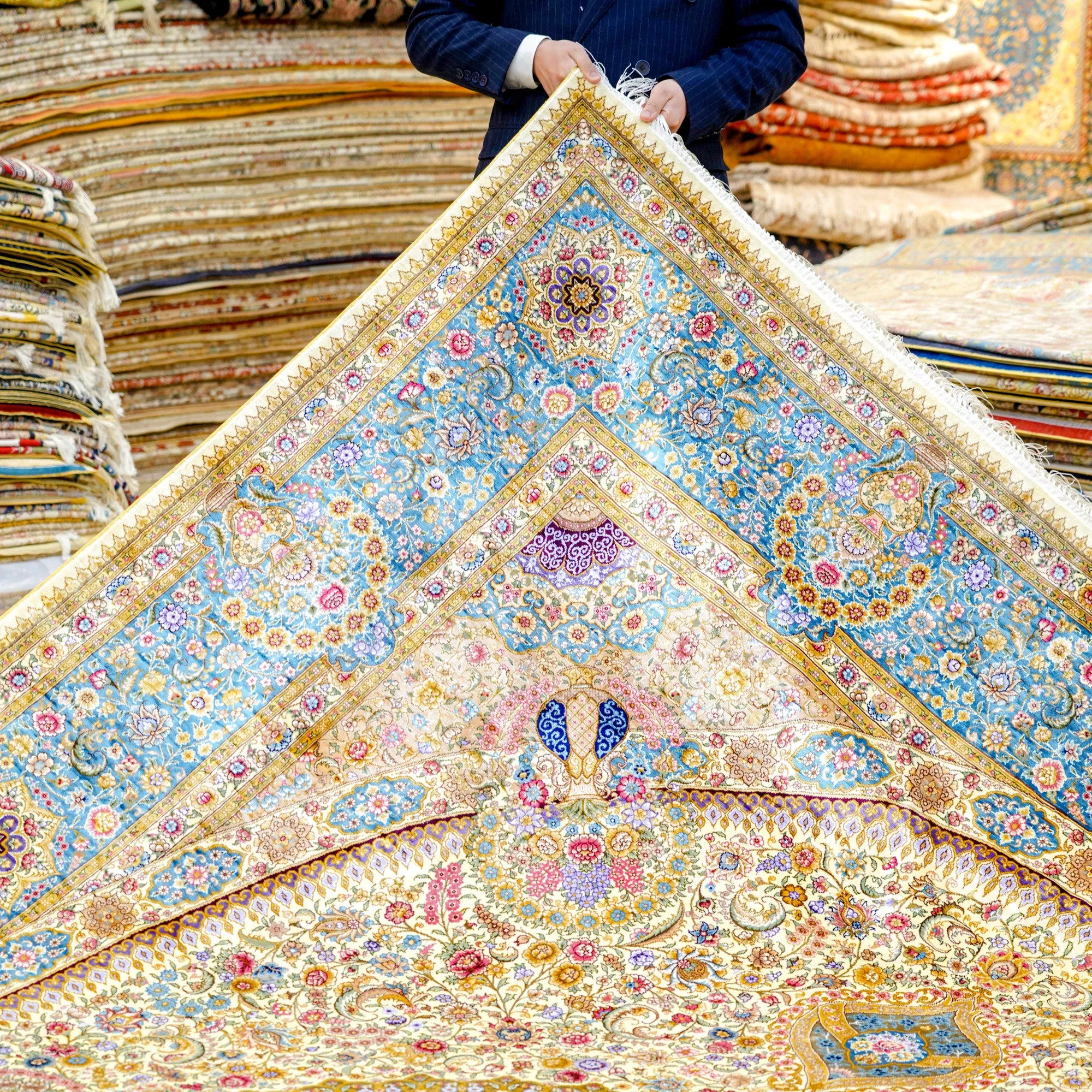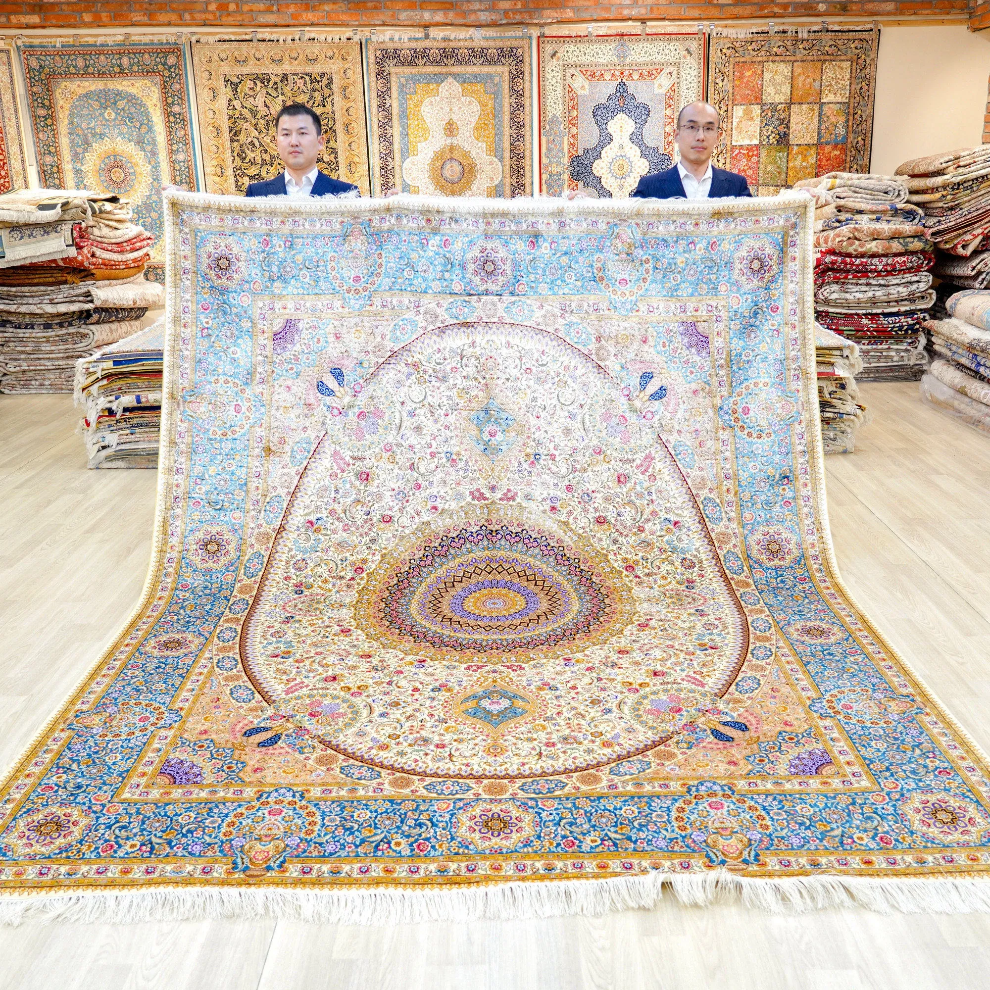 Heavenly Crafts Handwoven Persian Silk Carpet for Villa - Luxury Area Rug for Living Room, Bedroom, and Study, Size 244x305cm